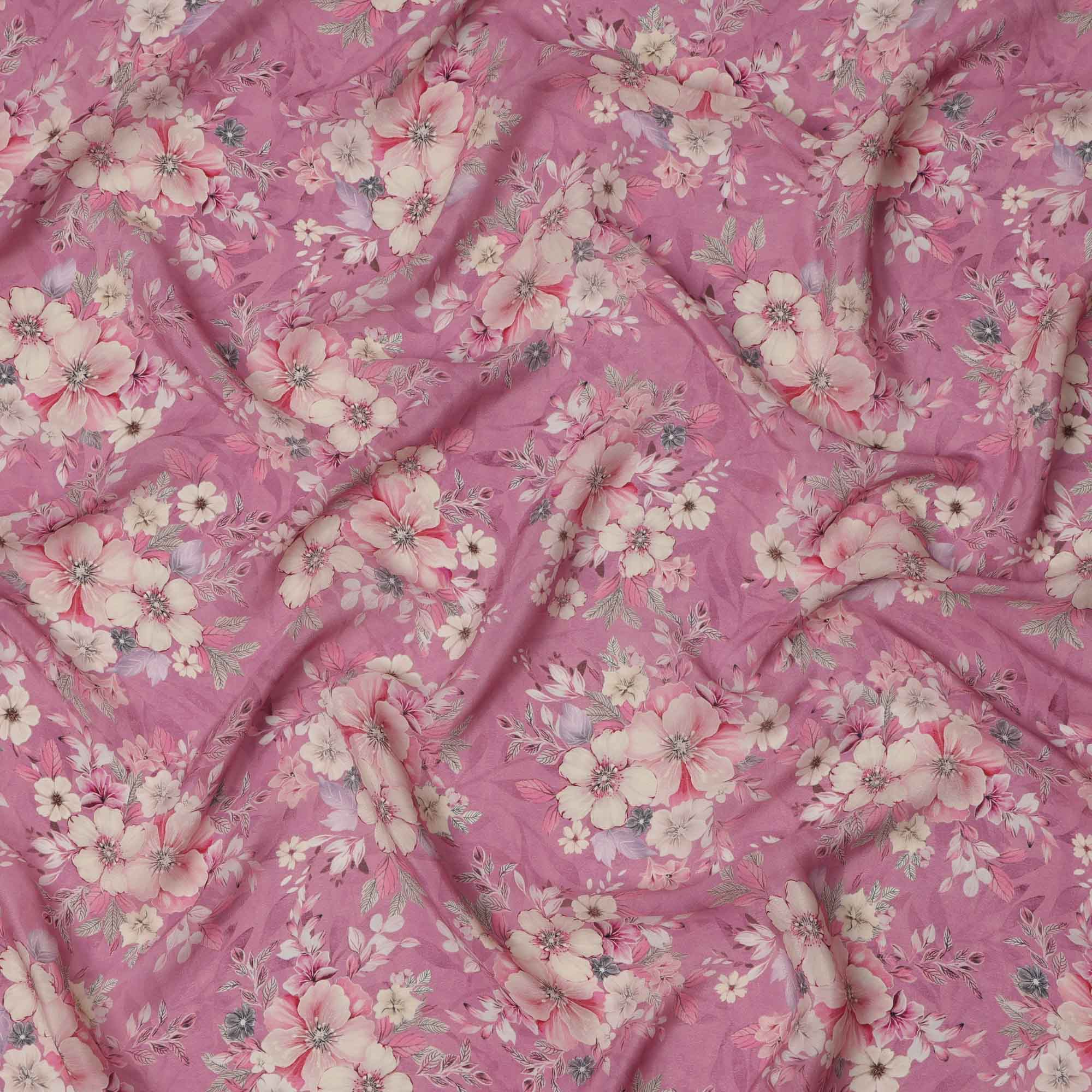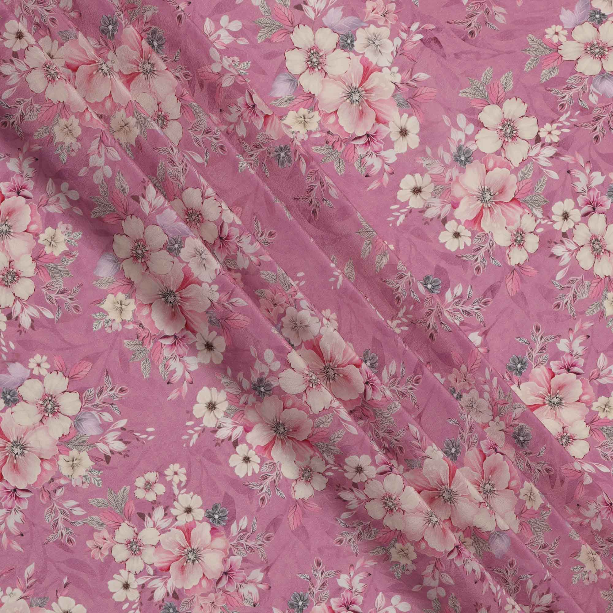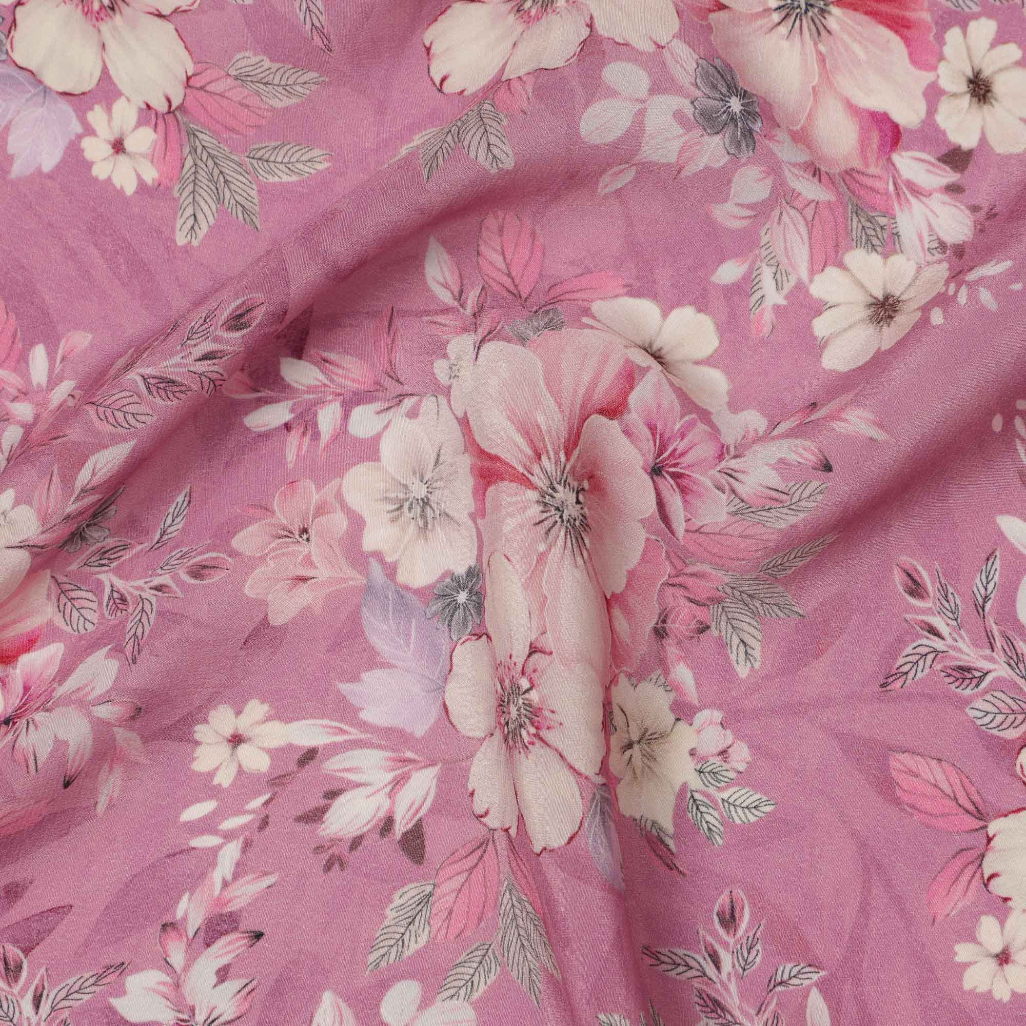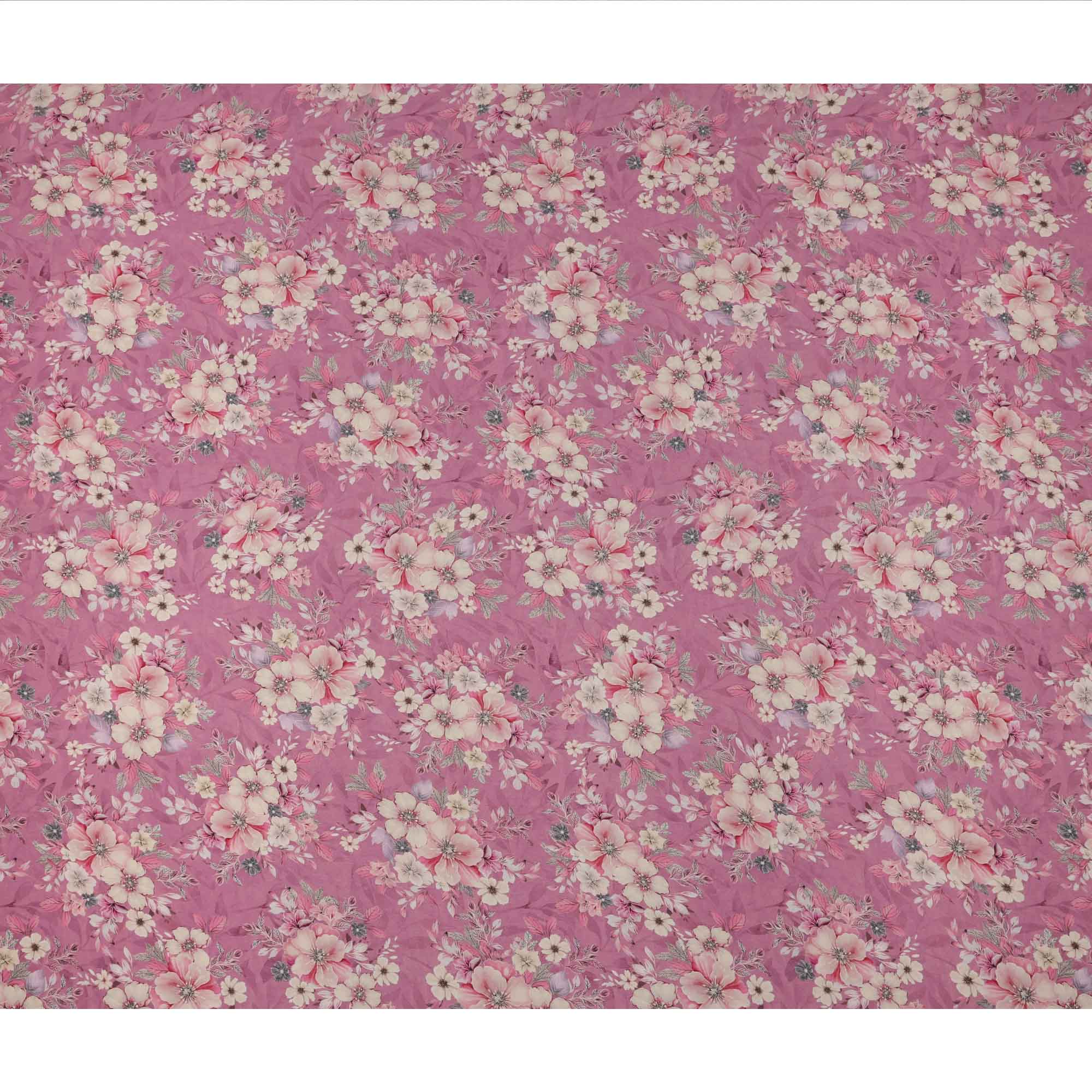 قماش كريب فيسكوز مطبوع عليه زهور وردية، بنقشة زهور الباستيل، عرض 110 سم، صنع في الهند - D23431