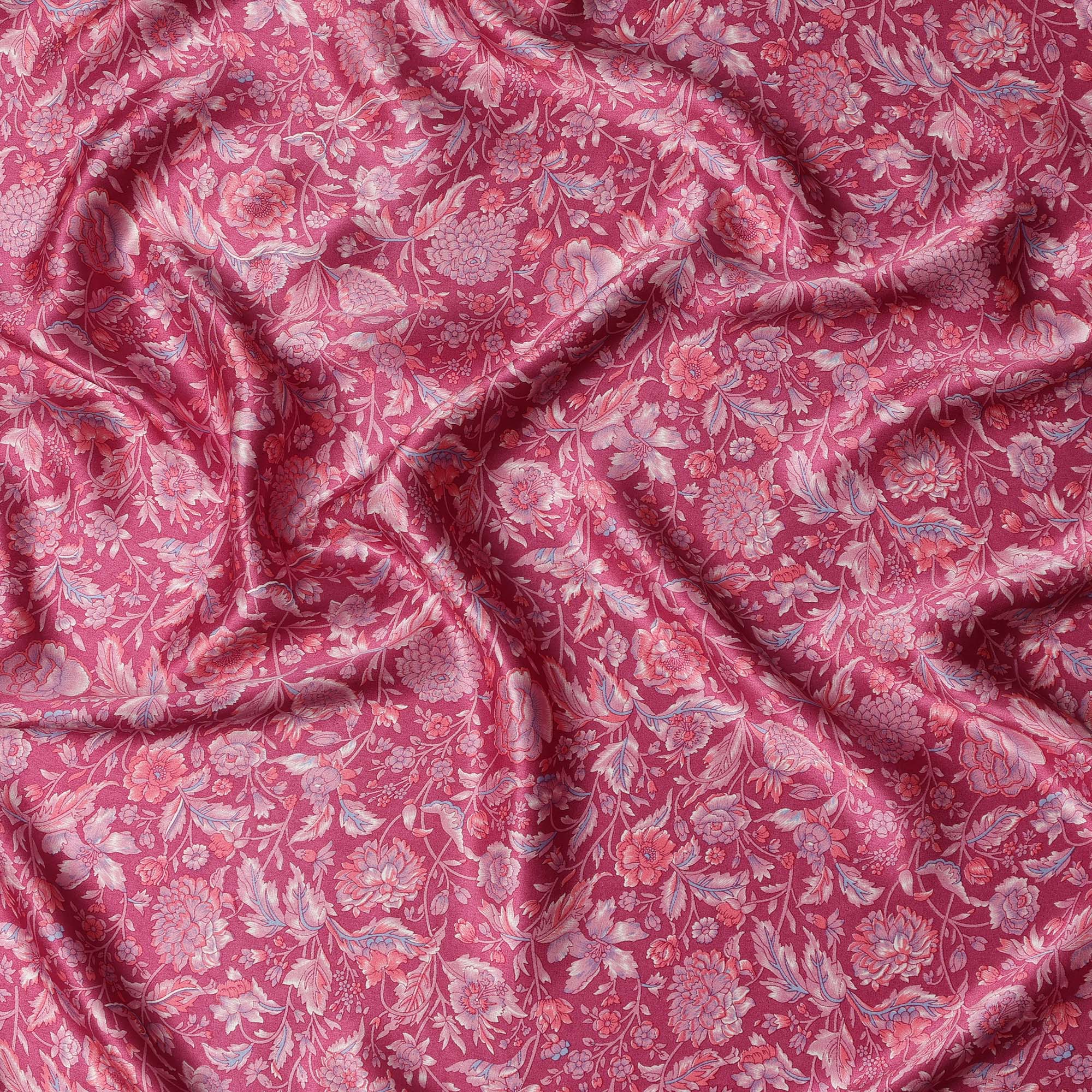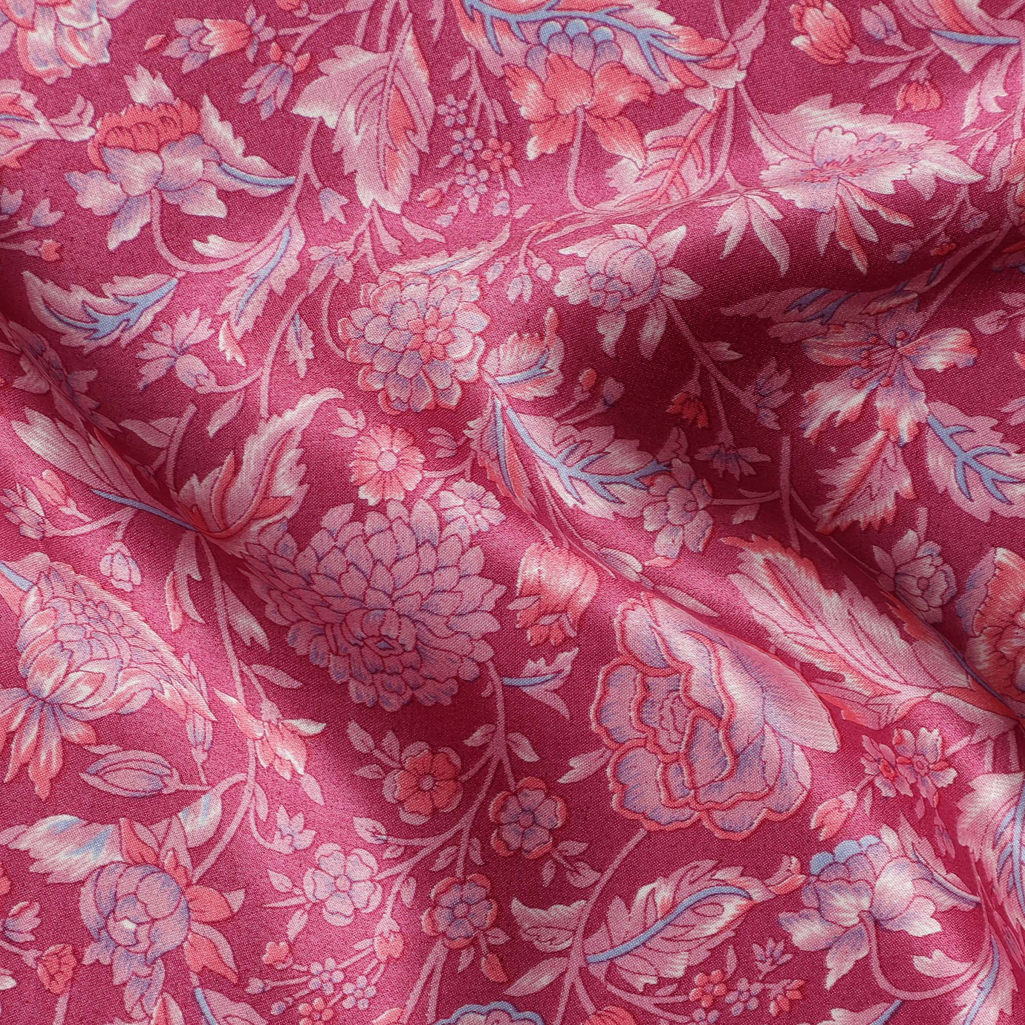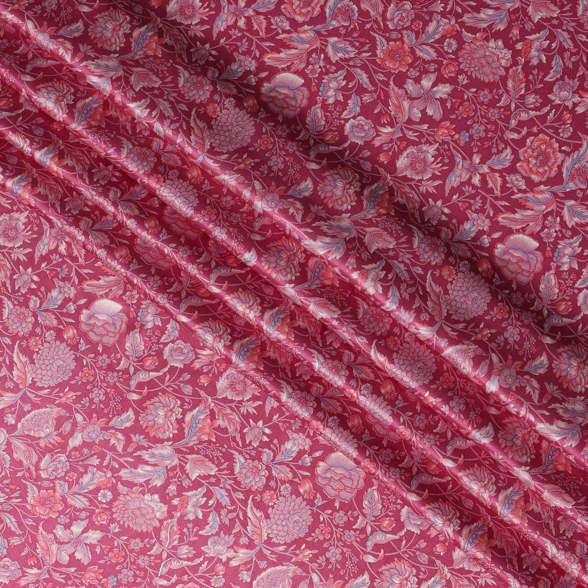 قماش حرير ساتان بنقشة زهور وردية اللون مع نسج جاكار رقيق، عرض 110 سم، صنع في الهند - D23257