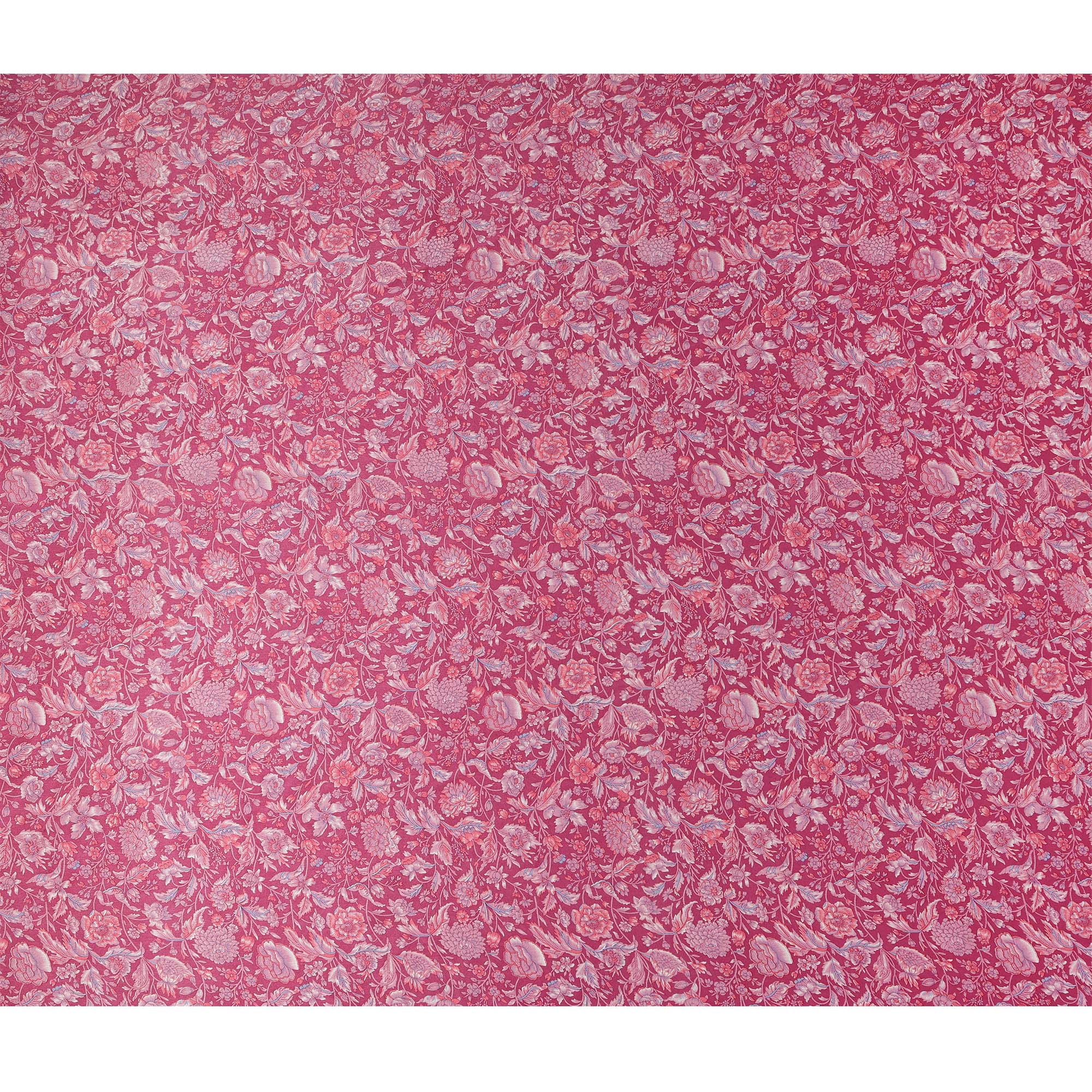 قماش ساتان حريري باللون الوردي مع زخارف نباتية ناعمة بألوان الباستيل.