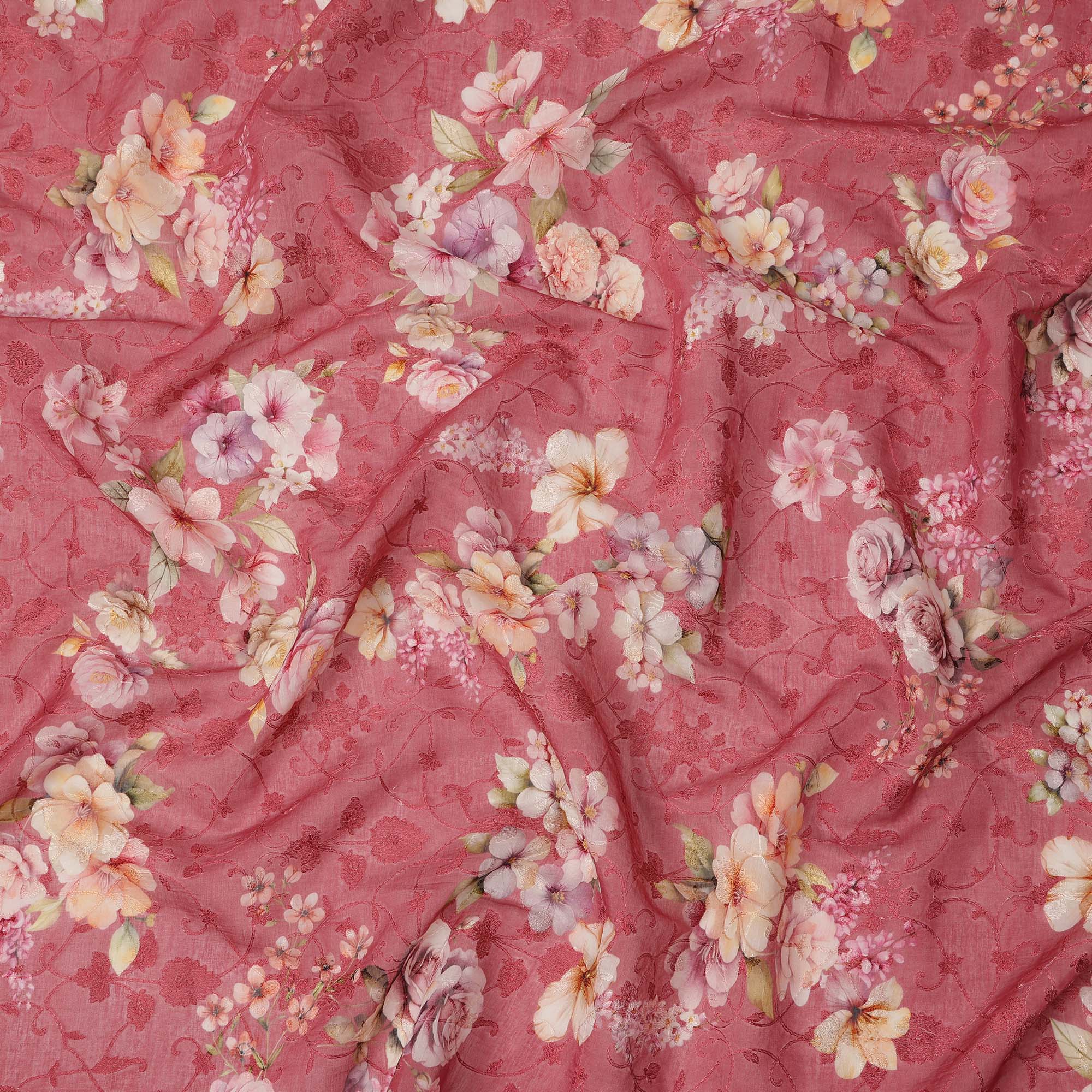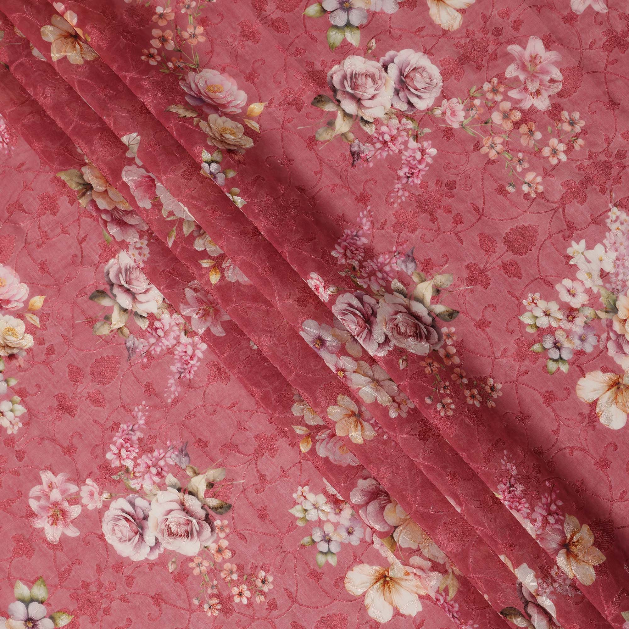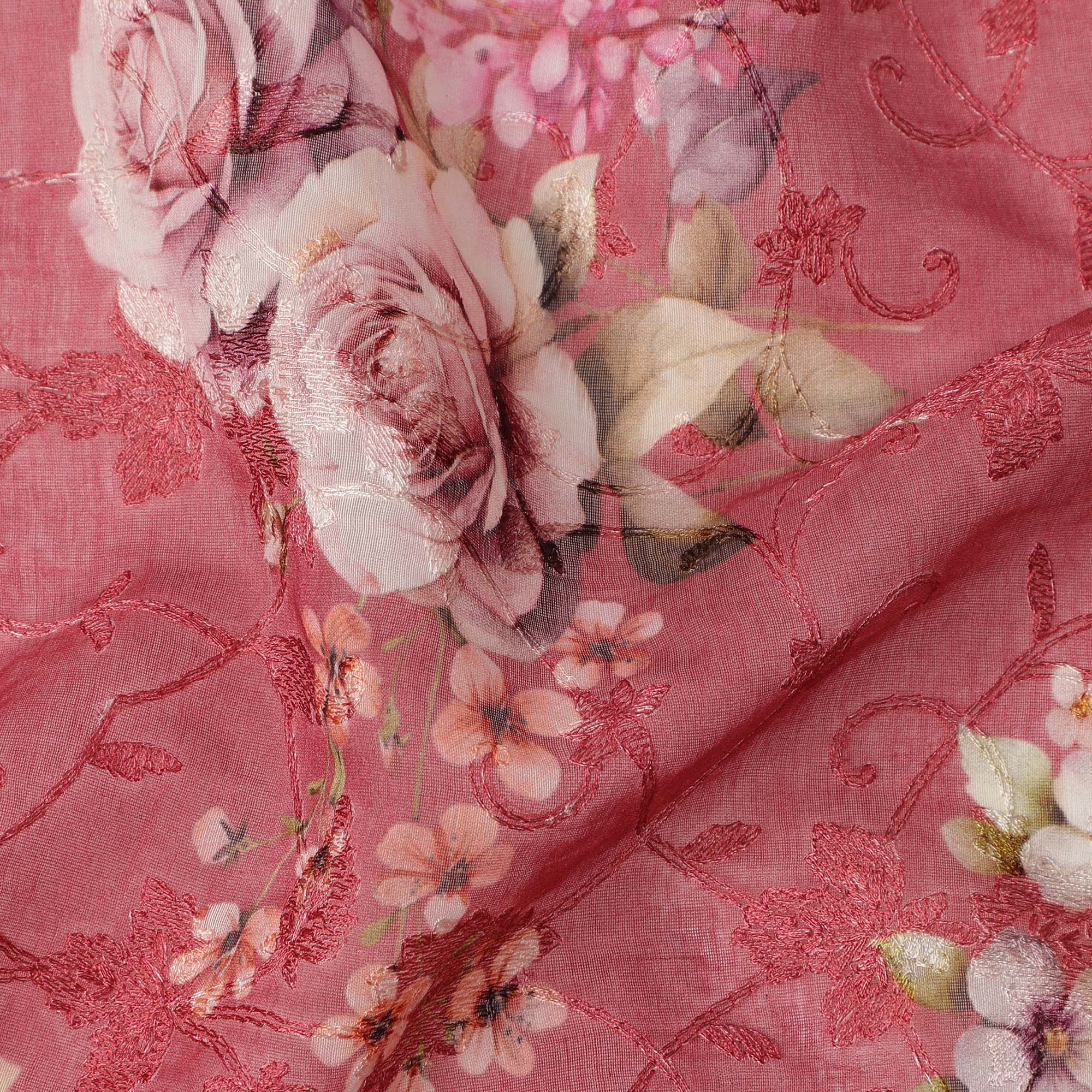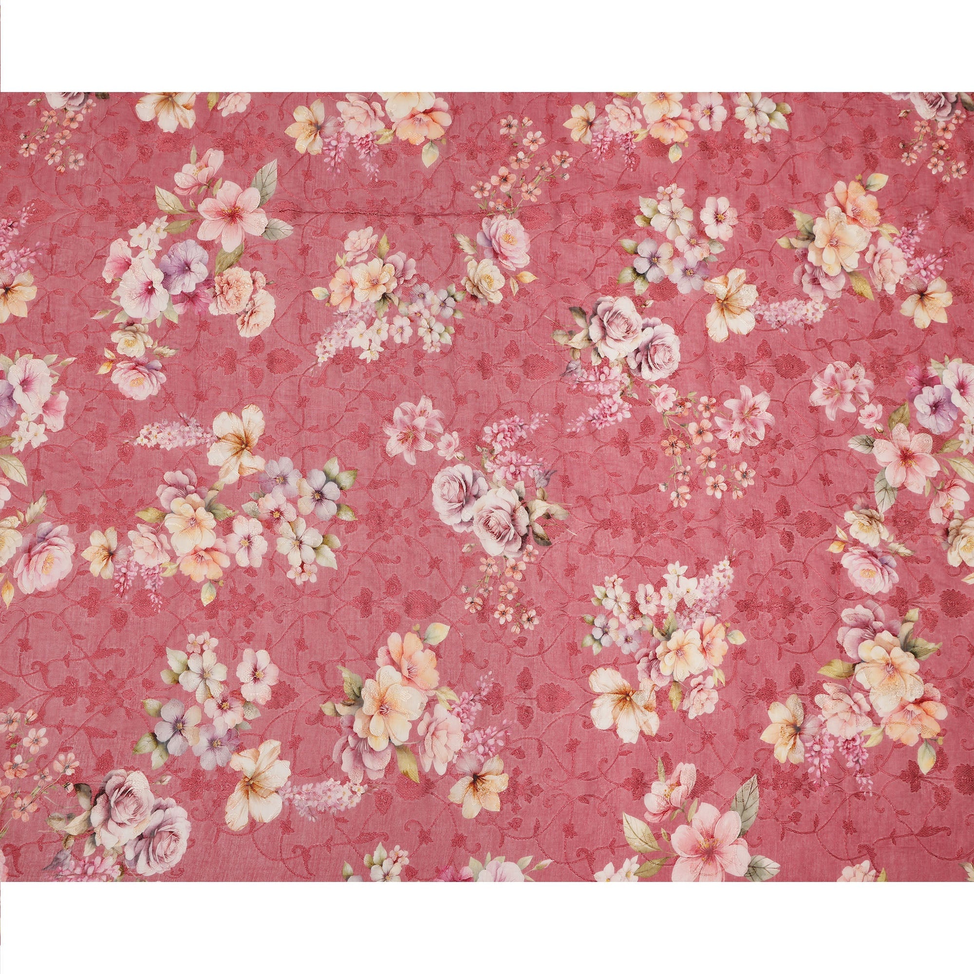 قماش فوال قطني مطبوع عليه زهور وردية اللون مع تطريز ذاتي متناسق، عرض 110 سم، صنع في الهند - D24258