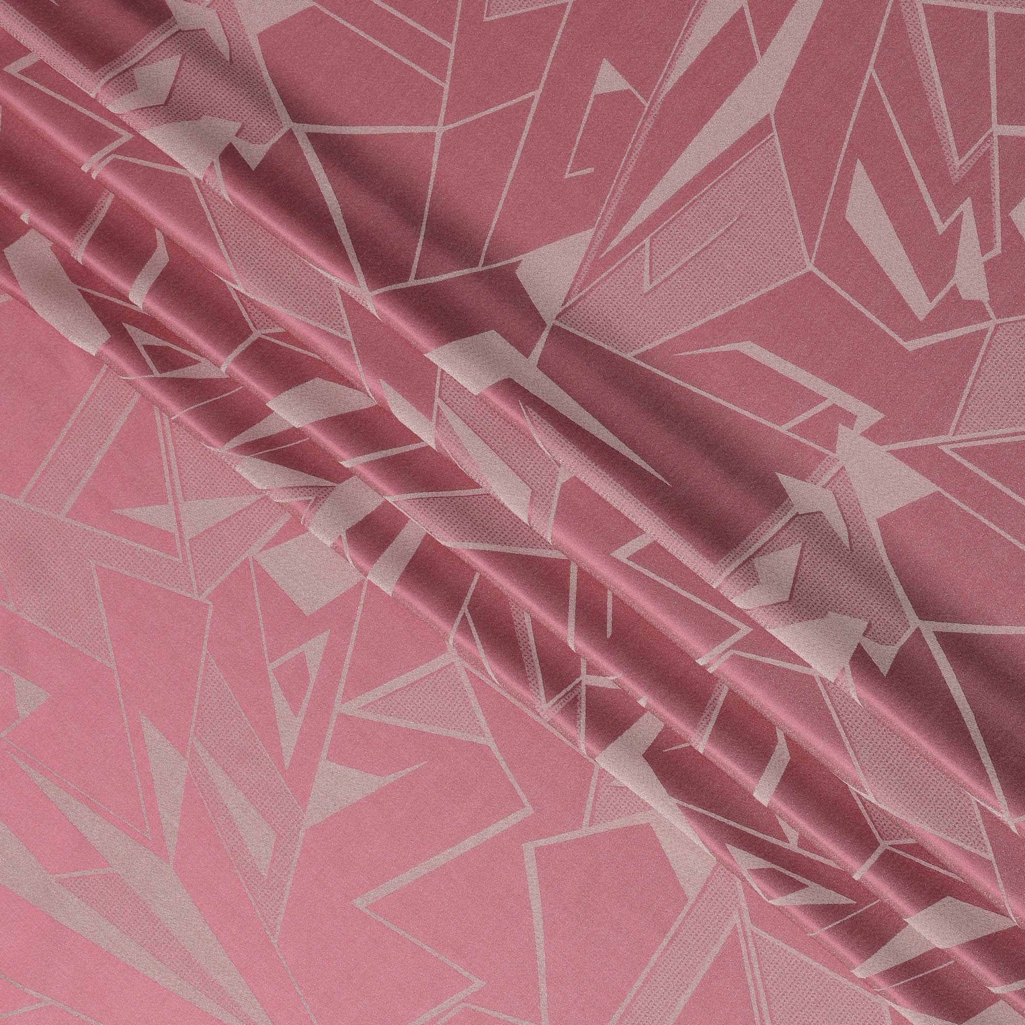 ساتان حريري أنيق باللون الوردي مع زخارف هندسية معدنية من الجاكار