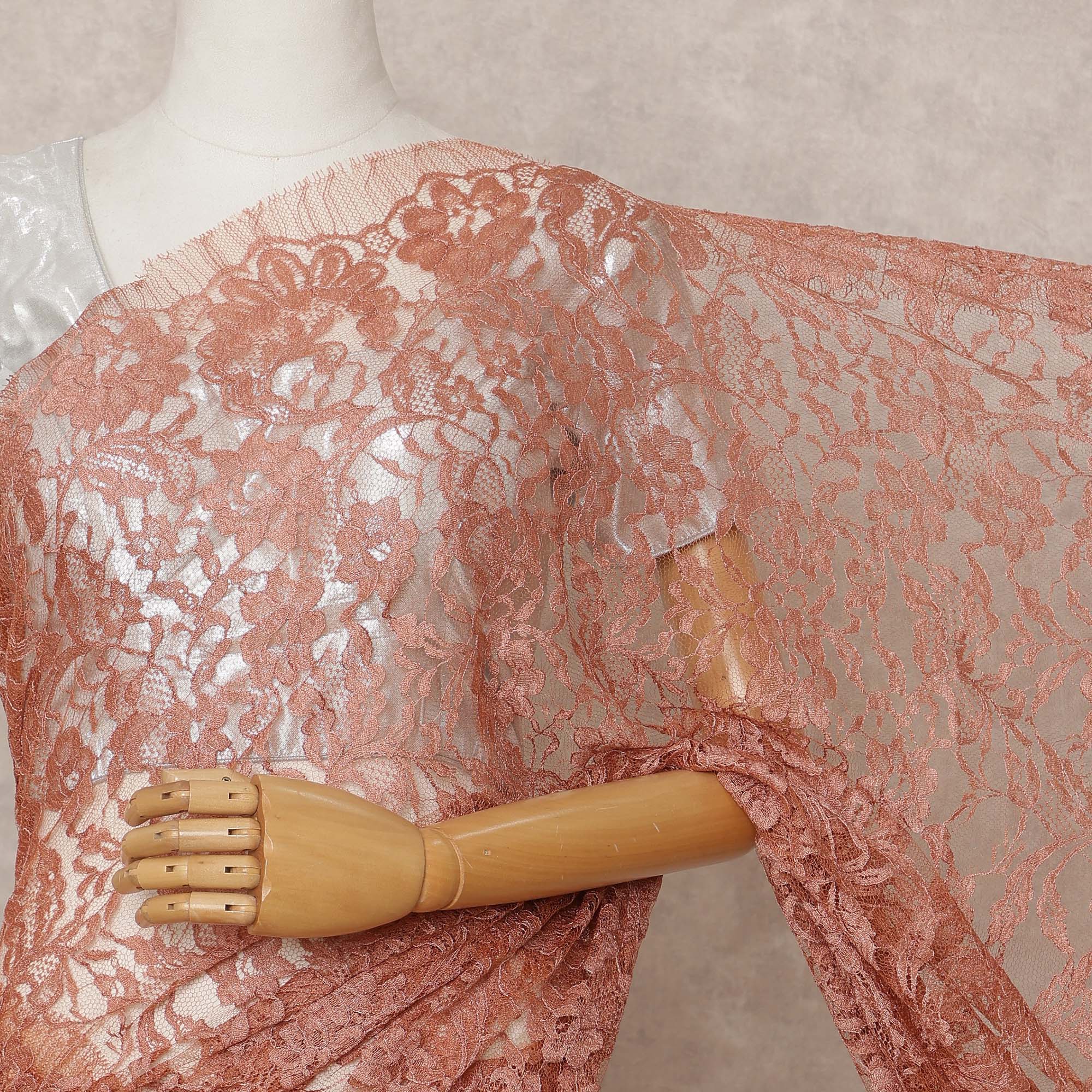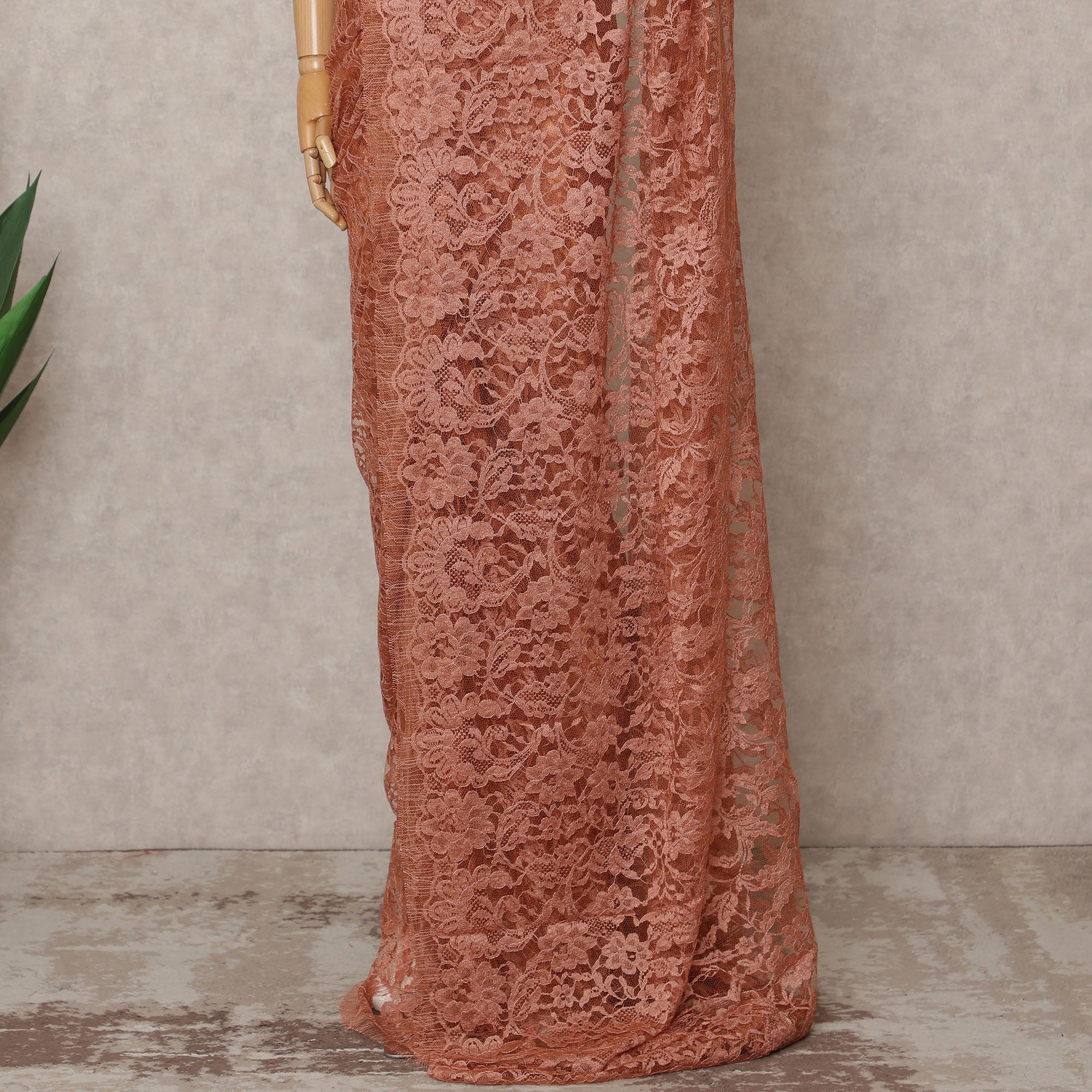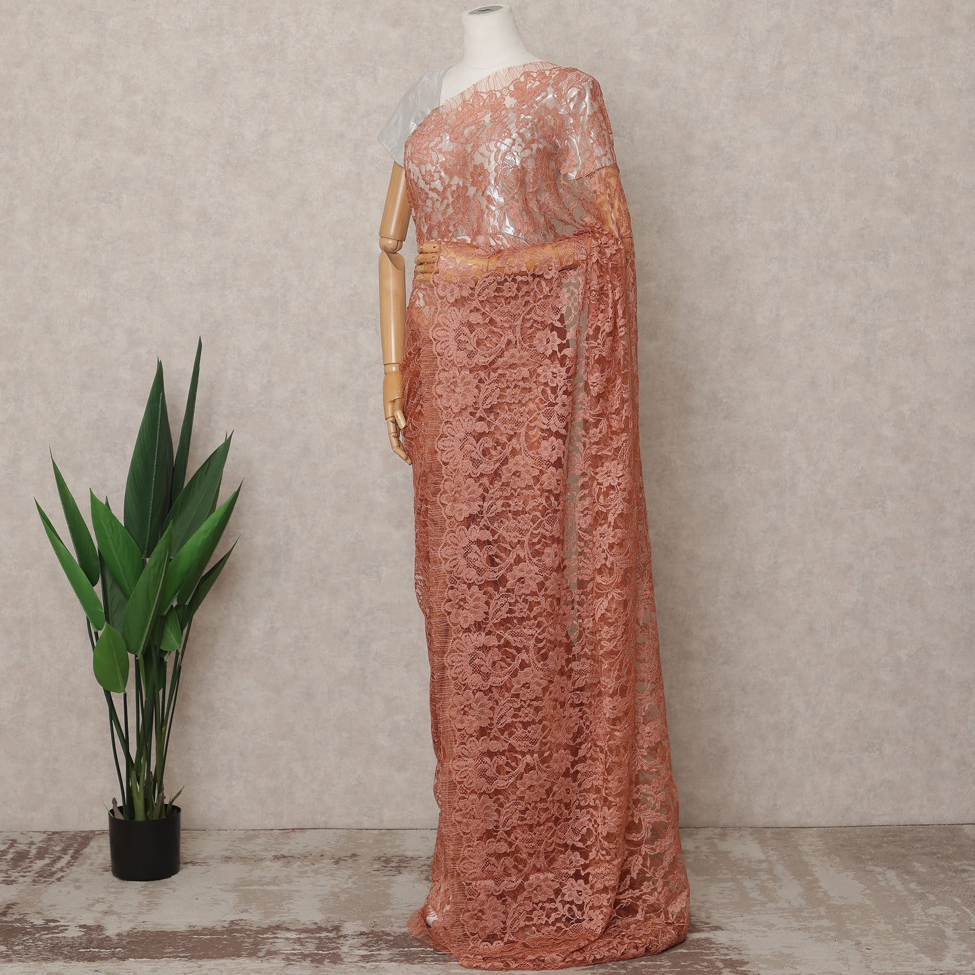 Rose Pink Pink Premium French Chantilly Lace Saree Fabric 5.5 Mtrs with 110 Cms Width – Imported from France-D25645