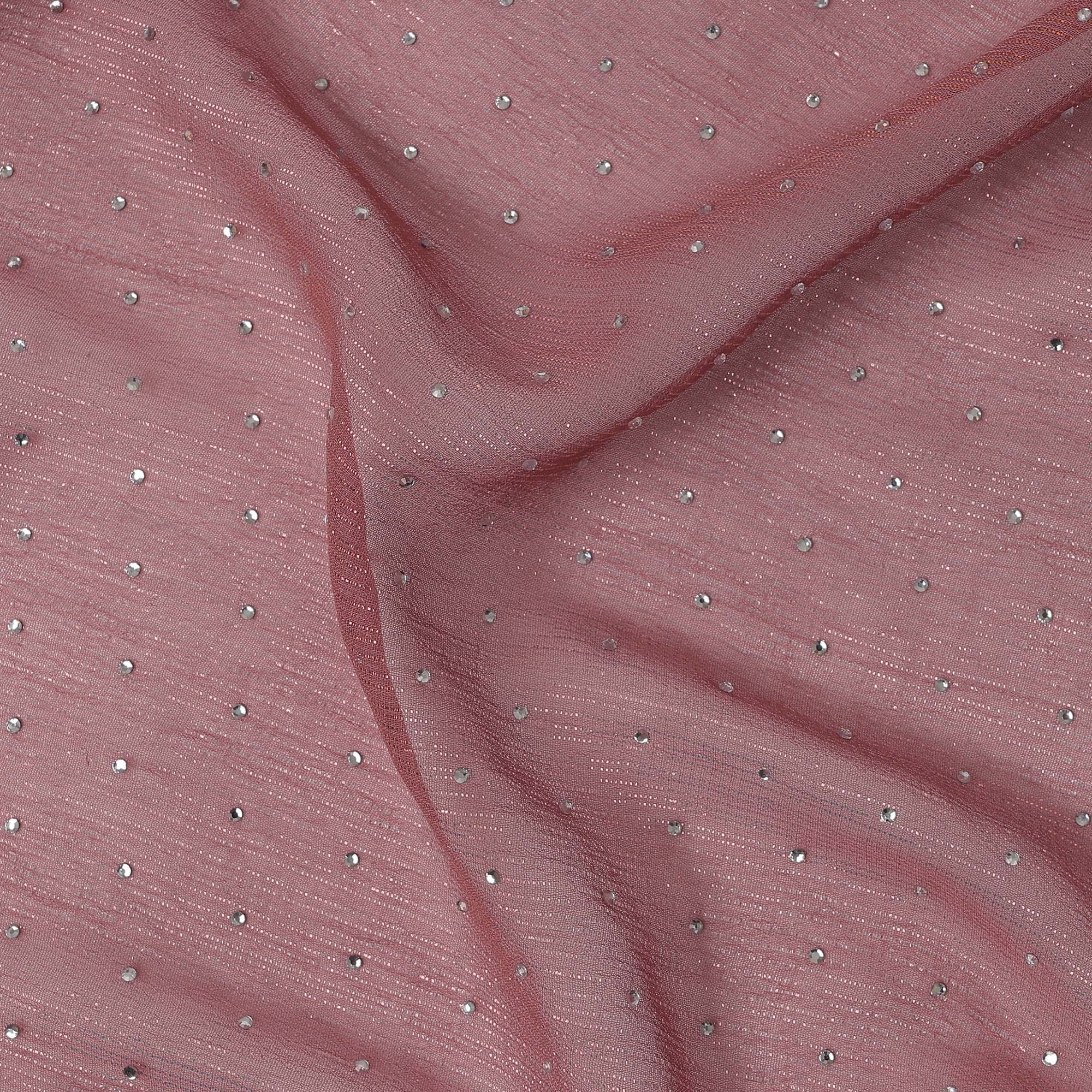 Rose Pink Synthetic Chiffon Traditional Sudanese Thobe with Stone Work, 4.5 Mtrs Piece, Width 110 Cms, Made in India-D26452