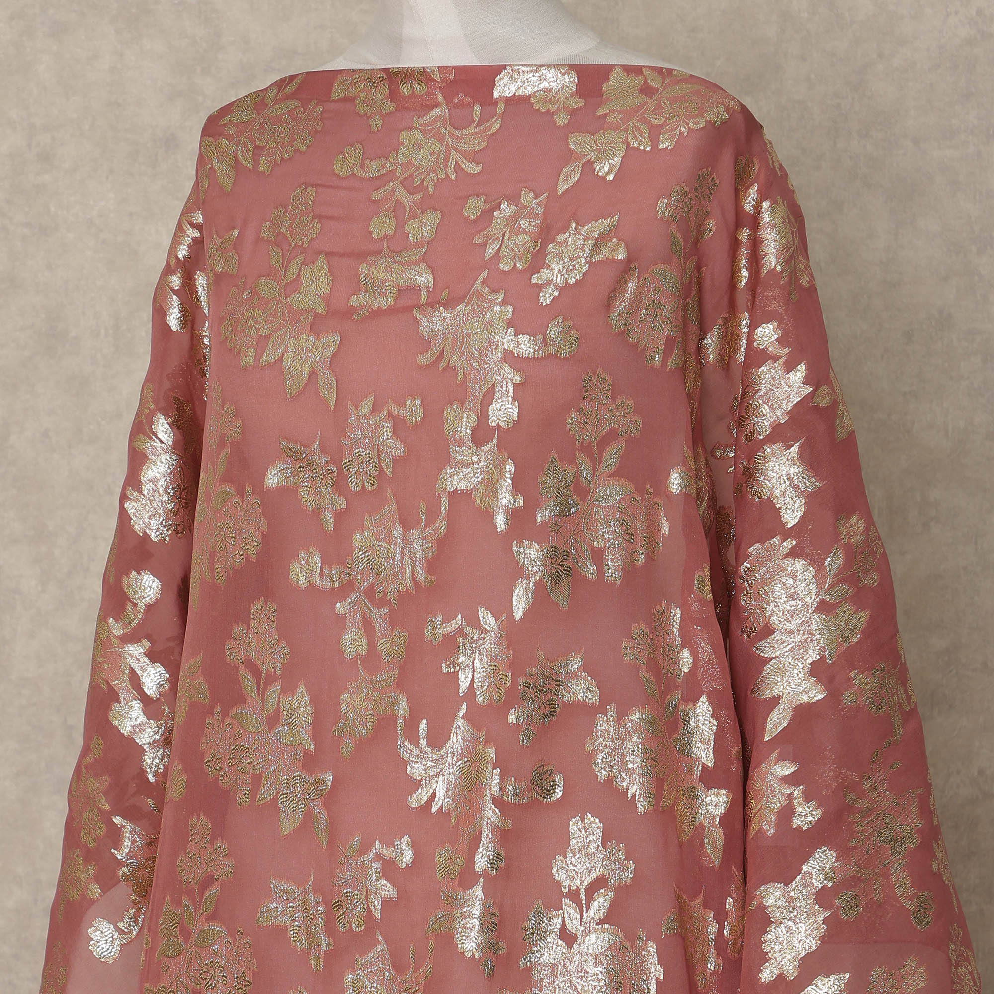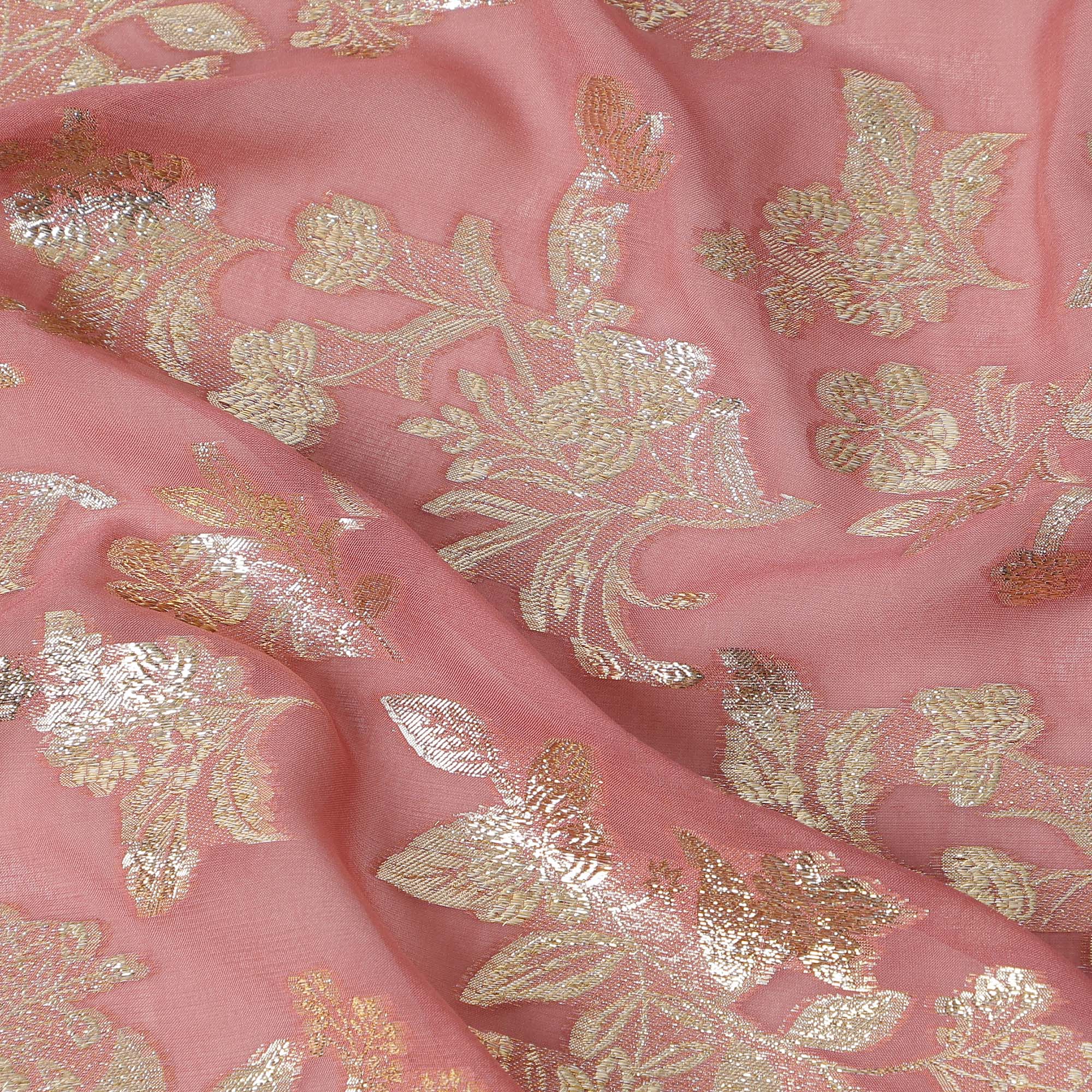 Rose Pink Traditional Somali Silk Chiffon Dirac Fabric with Metallic Lurex, 3.5 Mtrs Piece, Width 140 Cms, Made in South Korea-D26500