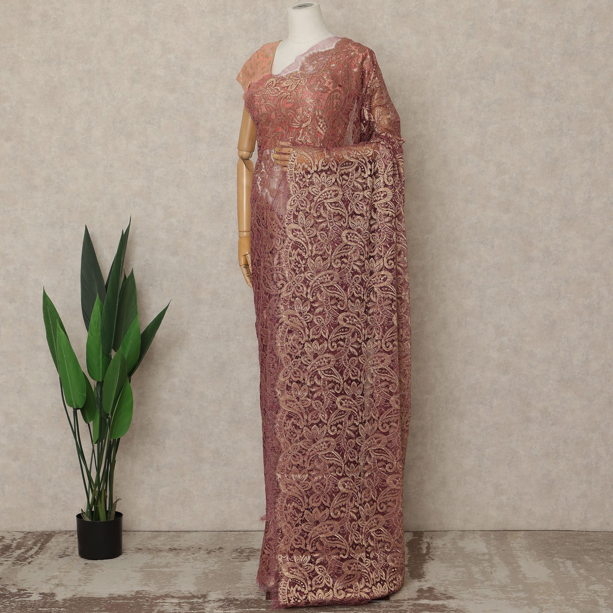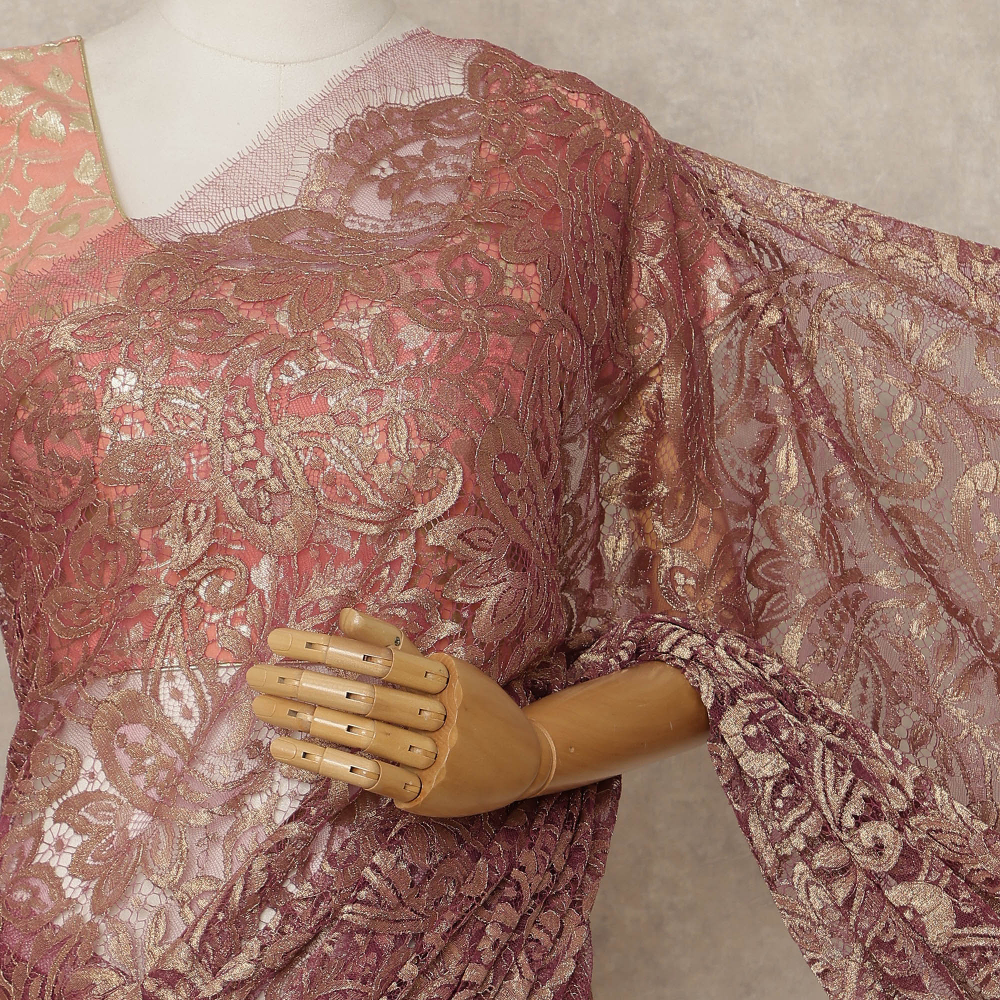 Rosewood Premium French Metallic Chantilly Lace Saree, 5.5 Mtrs Length, 110 Cms Width, Crafted in France-Blouse Not Included-D26687