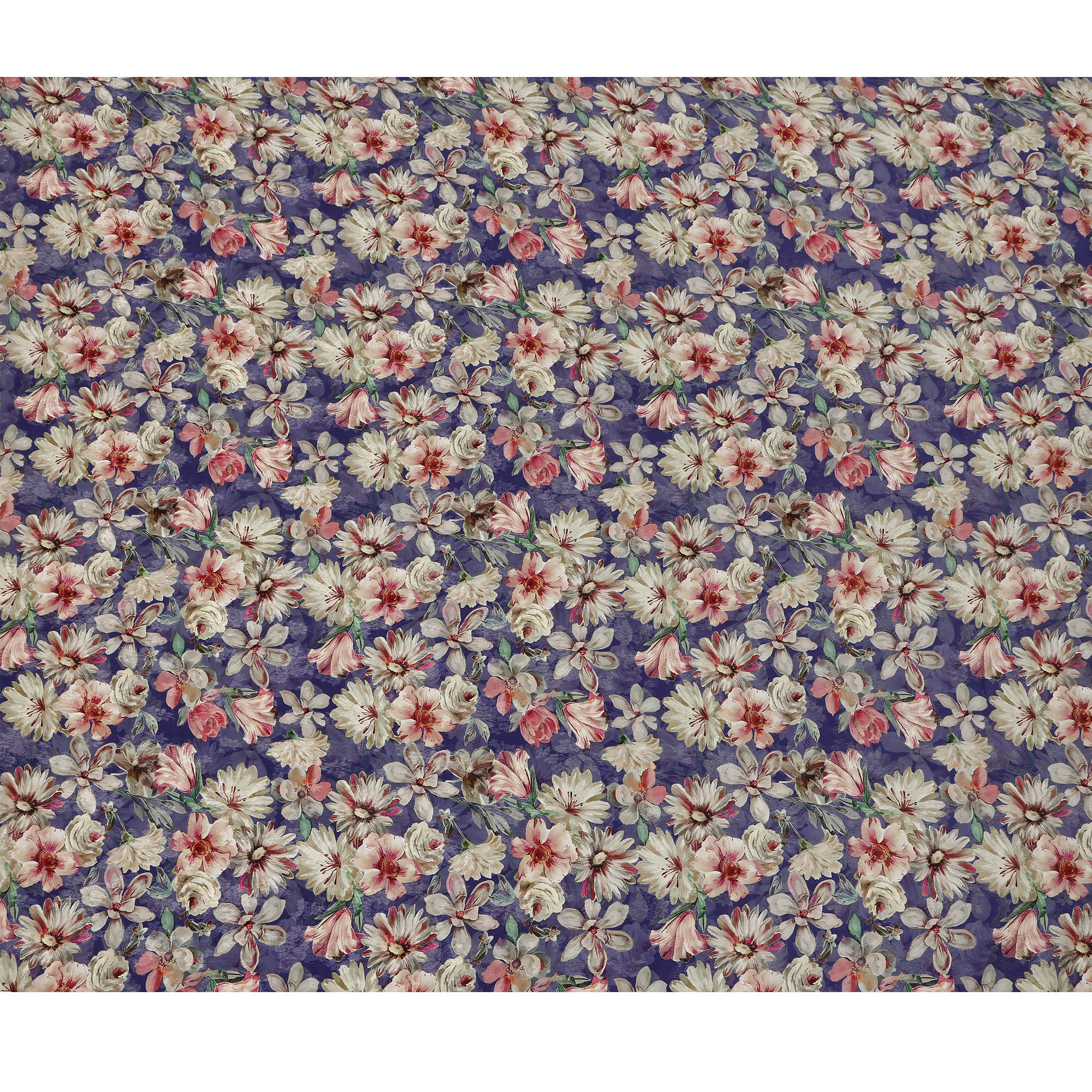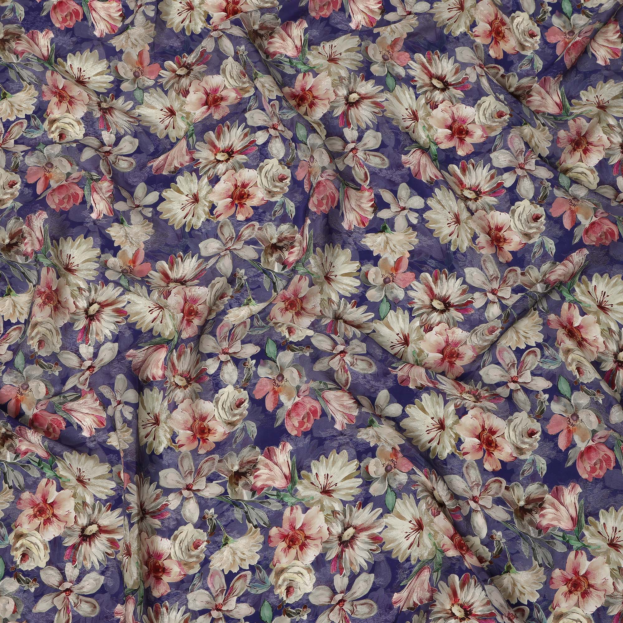 • Royal Blue Floral Printed Viscose Fabric Soft Flowing Lightweight Dress Material for Apparel Sewing Craft Use 110 Cms Width India Origin-D27313