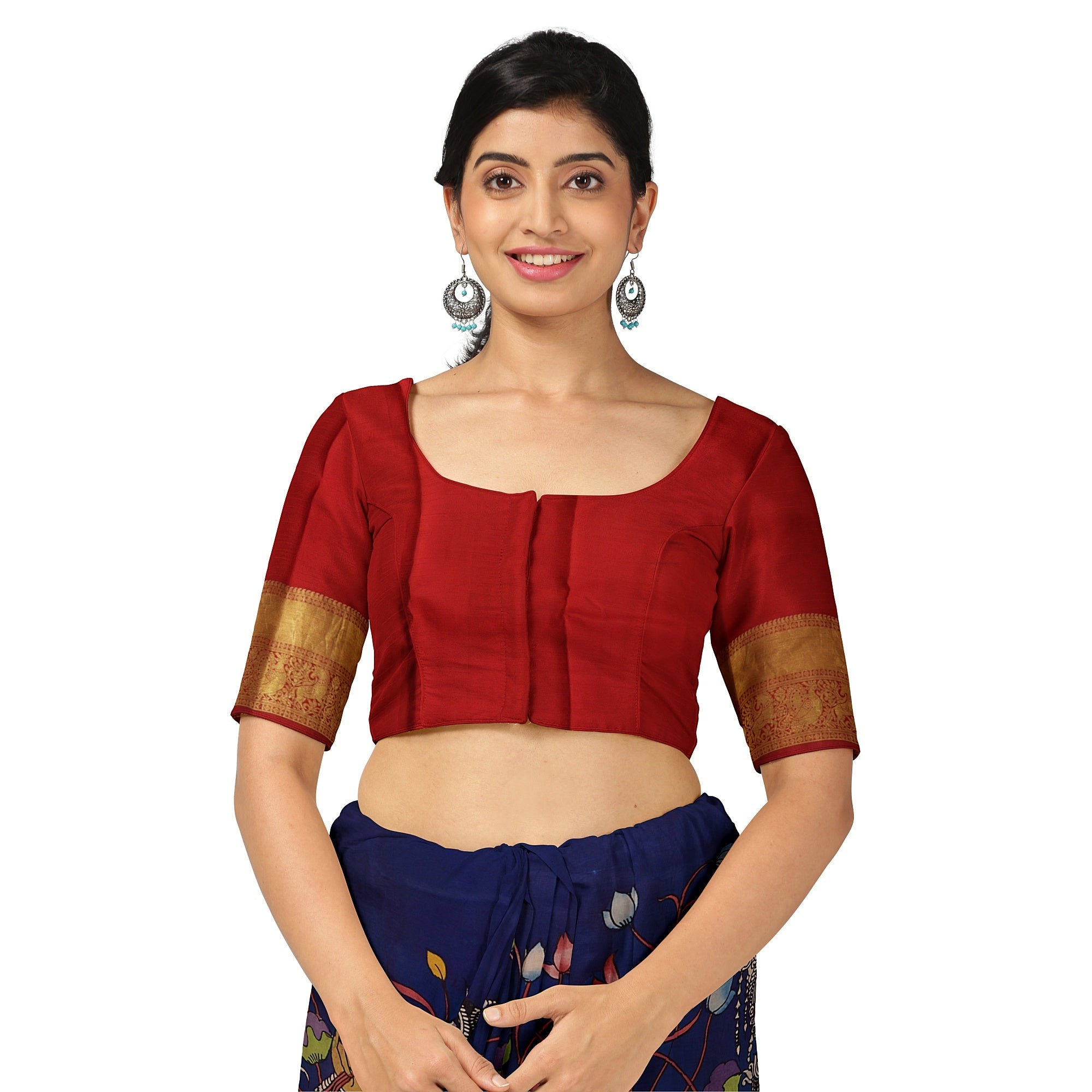ساري بين كالامكاري، المنسوج من حرير كانشي الأزرق الملكي الفاخر، هو لوحة فنية آسرة مستوحاة من الأساطير، مرسومة يدويًا بتفانٍ ودقة. صُنعت كل قطعة على يد حرفيين مخضرمين من سري كالاهاستي، وهي لوحة فنية من الحكايات الإلهية ومشاهد المعابد المرسومة بأقلام الخيزران والأصباغ الطبيعية. ما يجعل هذه القطعة استثنائية حقًا هو 72 ساعة من العمل الدؤوب الذي أُنجز بدقة متناهية في كل تفصيلة - كل خط وشكل وزخرفة بدت وكأنها تنبض بالحياة. يُضفي ثراء اللون الأزرق الملكي خلفيةً مهيبةً لدرجات اللون الترابية من الصدأ والنيلي والأسود التي تتألق بتباين مذهل. مع ستارة بطول 5.5 متر وقطعة بلوزة متناسقة، يُعد هذا الساري مثاليًا لحفلات الزفاف والمناسبات الكلاسيكية والمناسبات الروحية. تسوقي عبر الإنترنت لتتألقي بإرث خالد مستوحى من التقاليد الهندية.