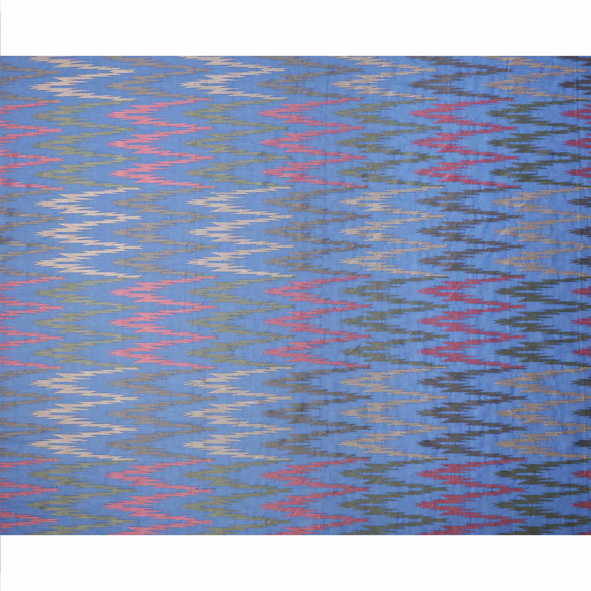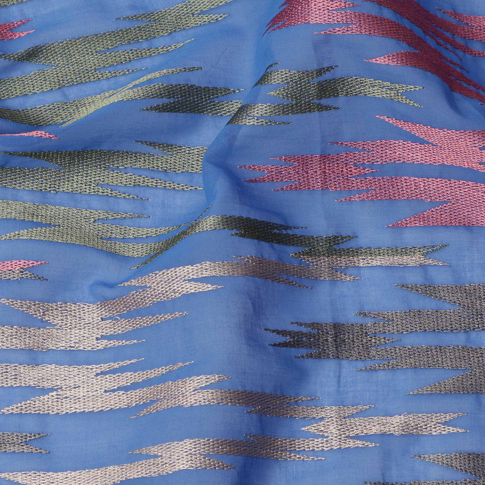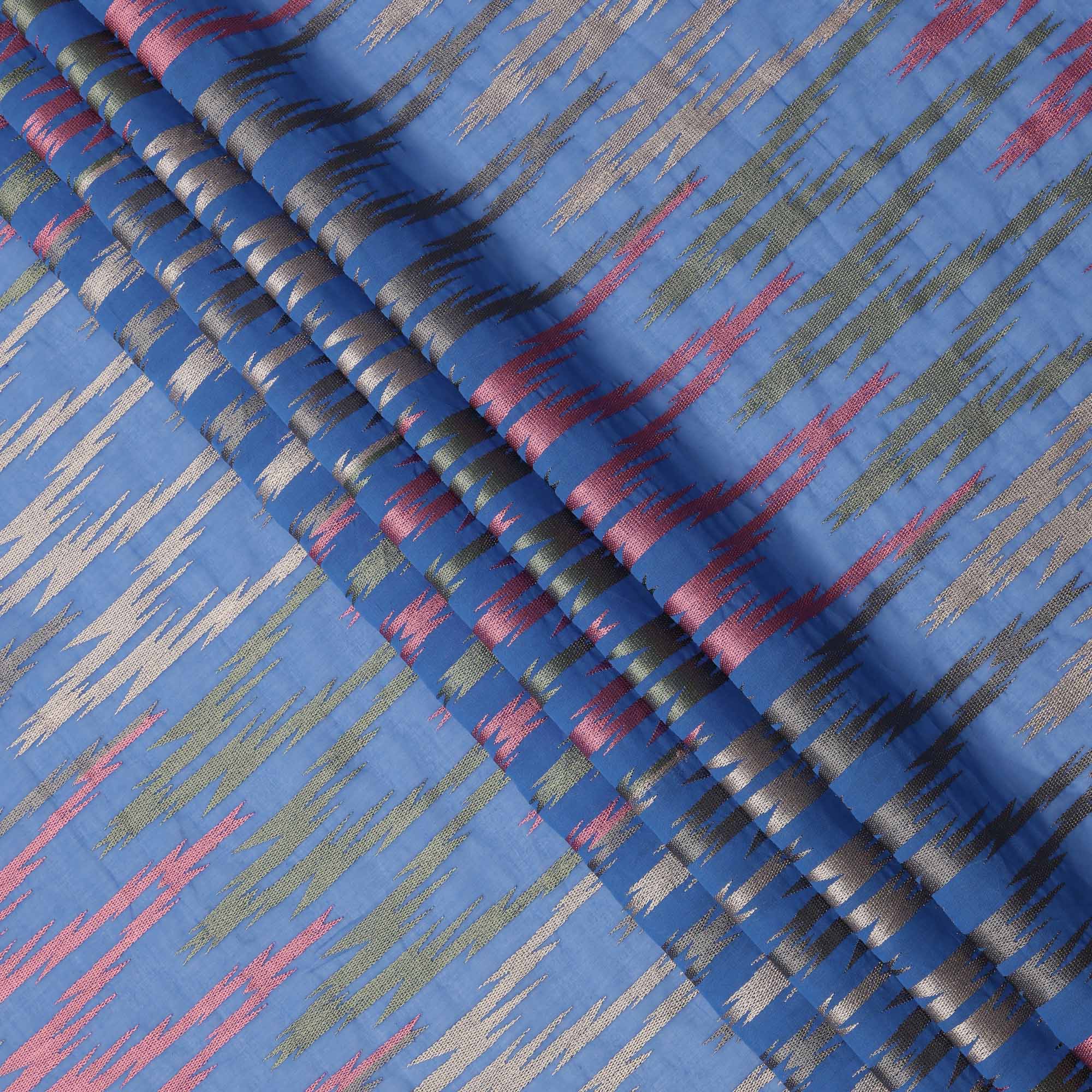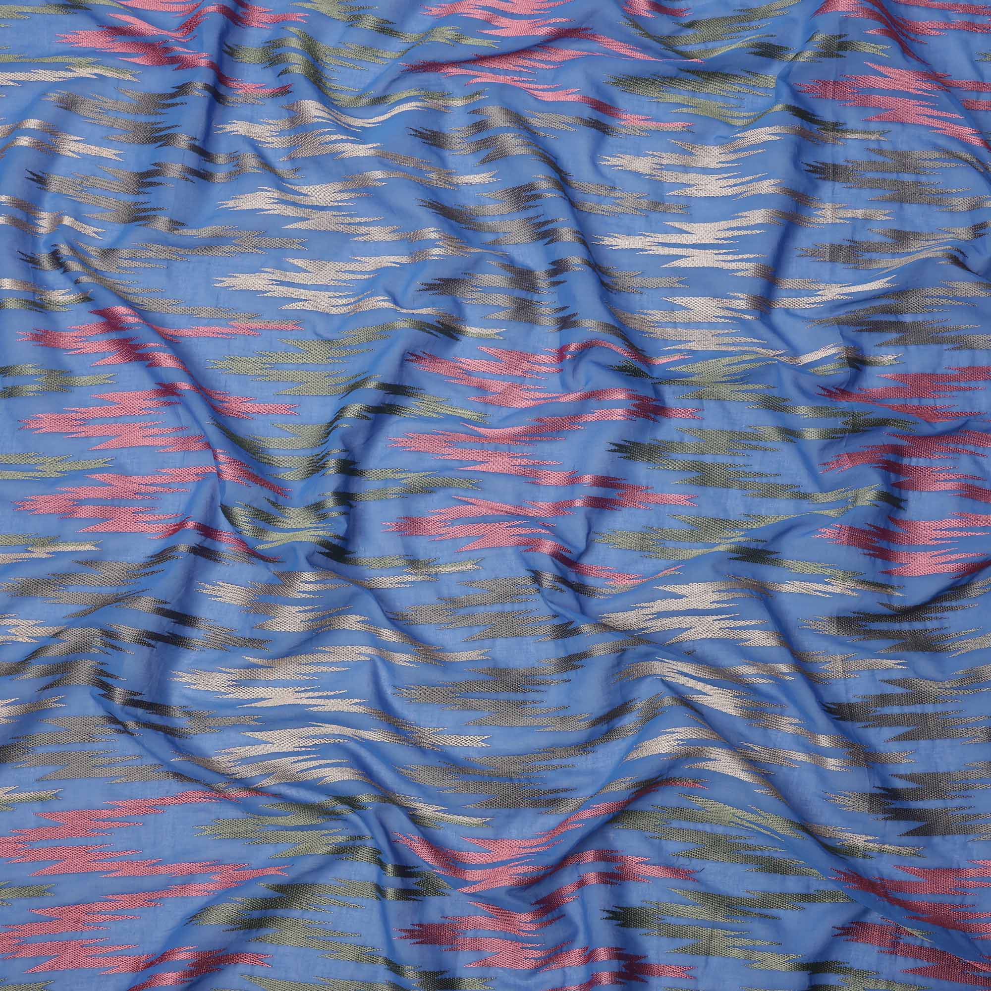 قماش فوال قطني منسوج مستوحى من الإيكات متعدد الألوان باللون الأزرق الملكي بخيوط معدنية، عرض 140 سم، صنع في الهند - D23729