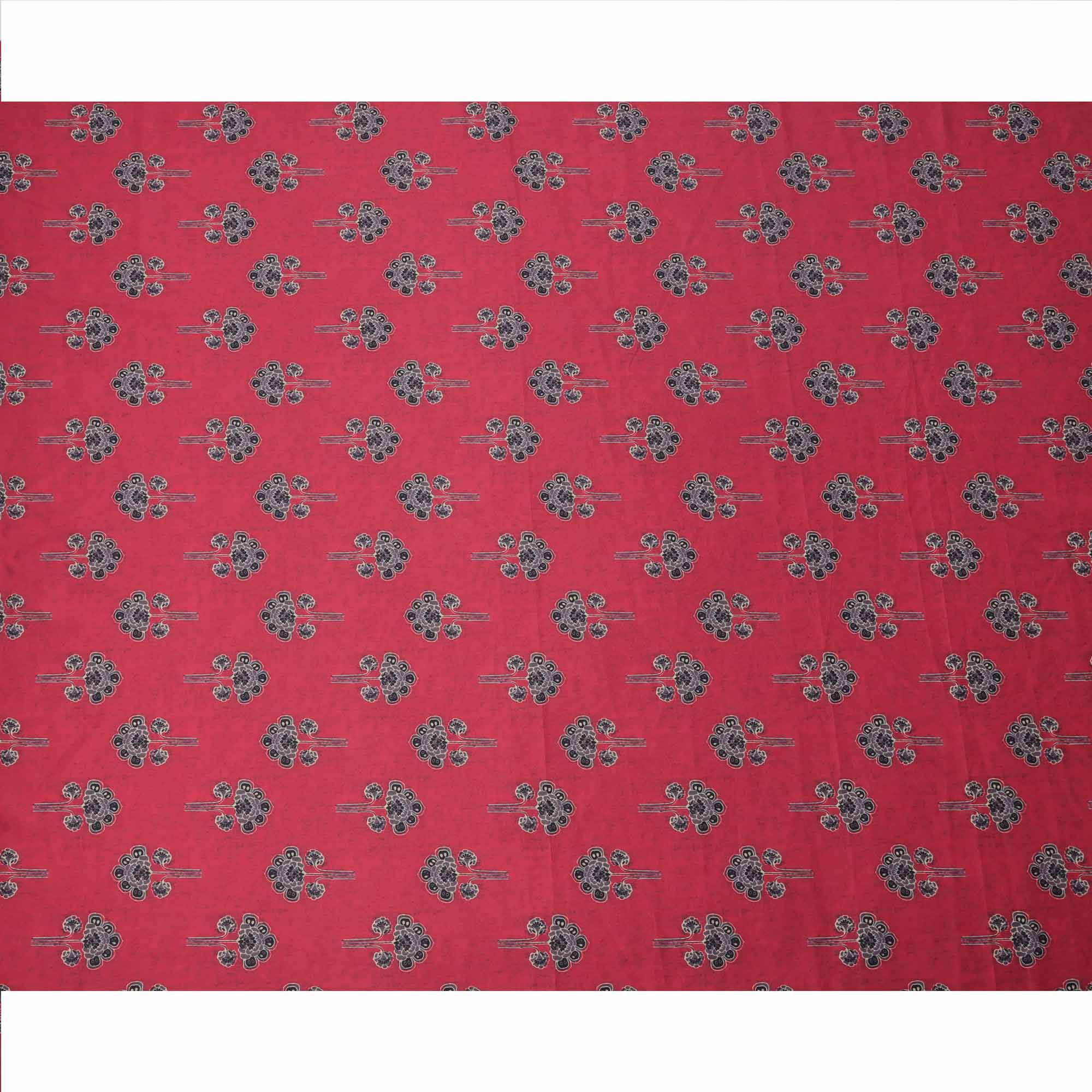 قماش قطني مطبوع عليه زهور وردية ياقوتية مع زهور سوداء، عرض 110 سم، صنع في الهند - D23545