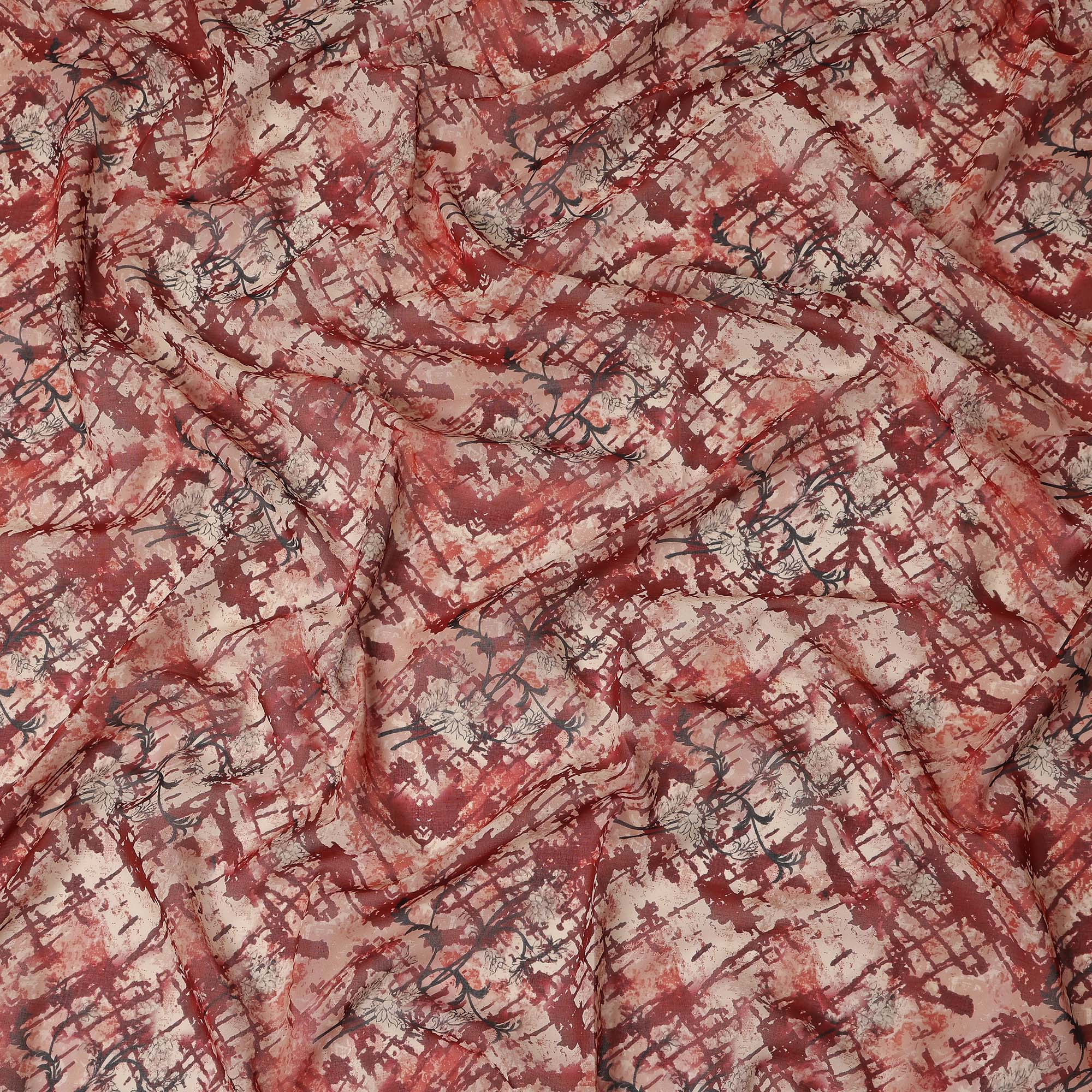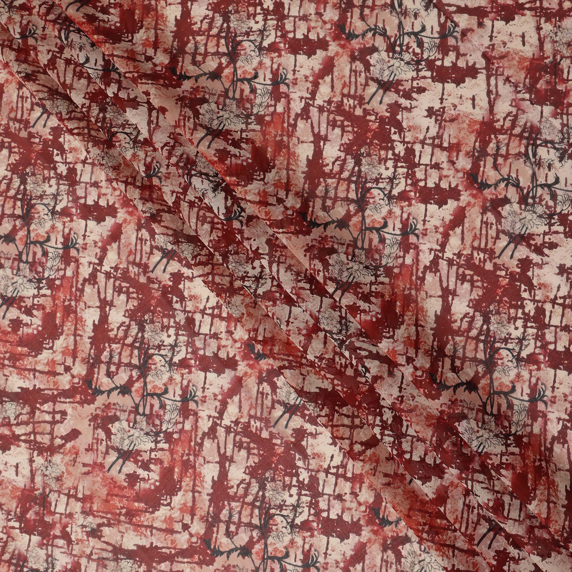• أُوكَازيُون -10% Rust Red Abstract Traditional Sudanese Thobe Pure Cotton Voile 4.5 Mtrs Width 140 Cms India-D27807