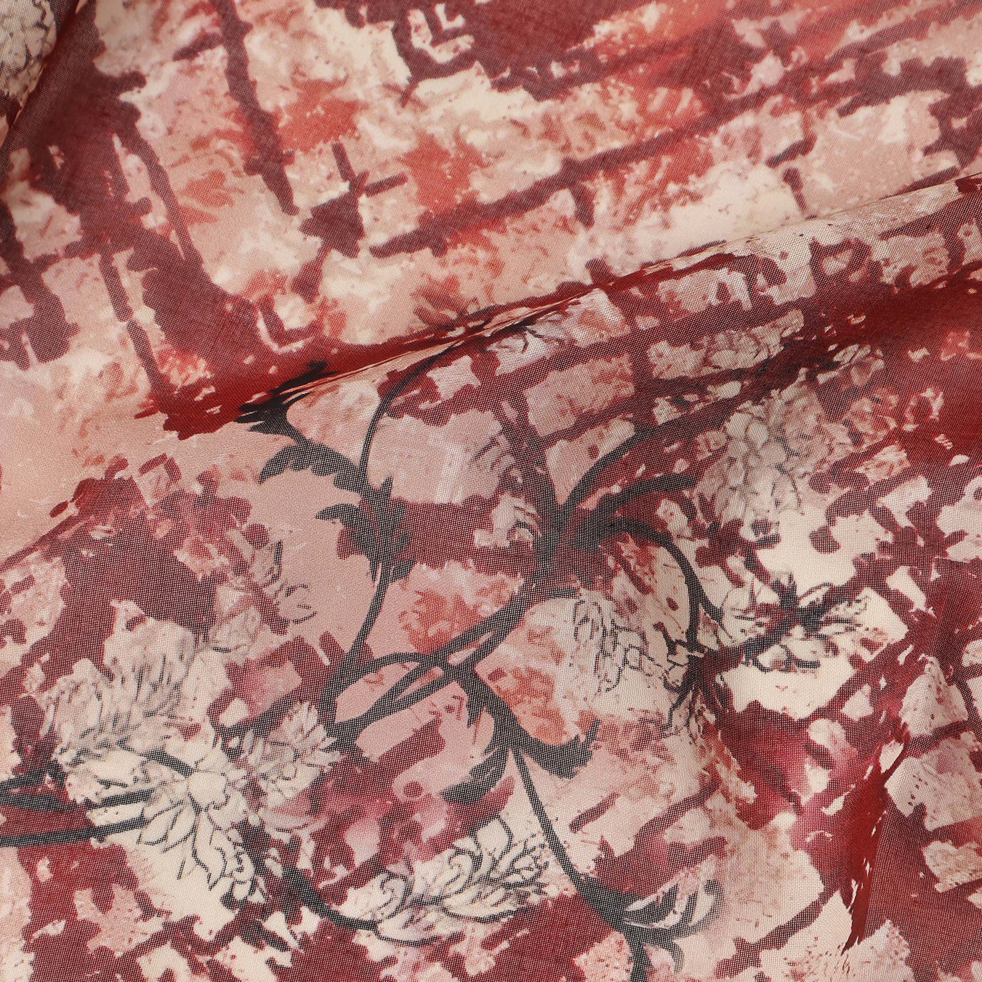 Rich rust red abstract print offering a bold yet elegant traditional look.