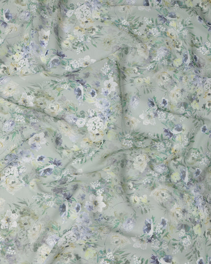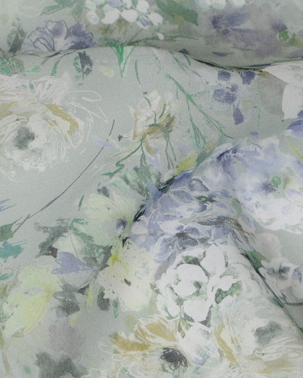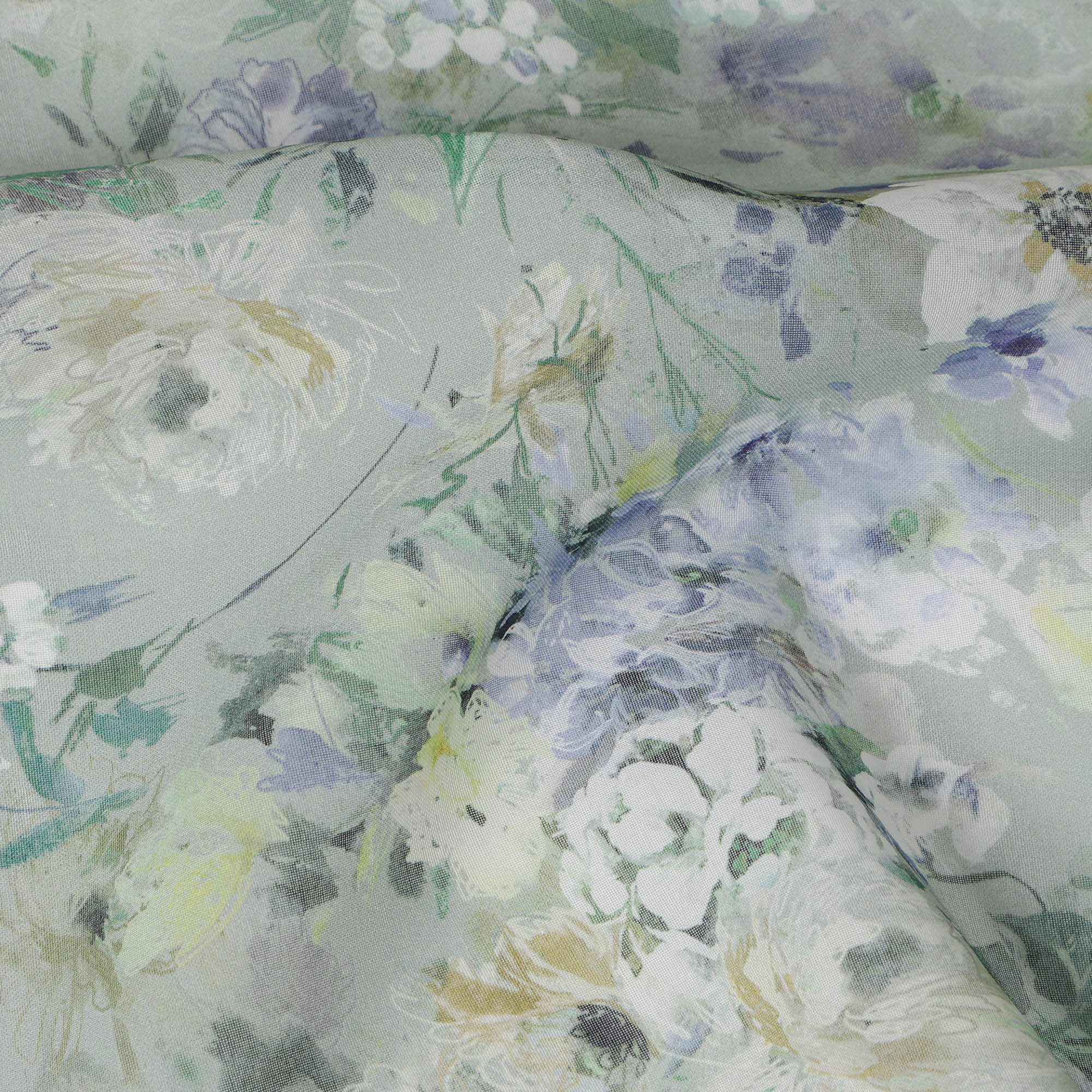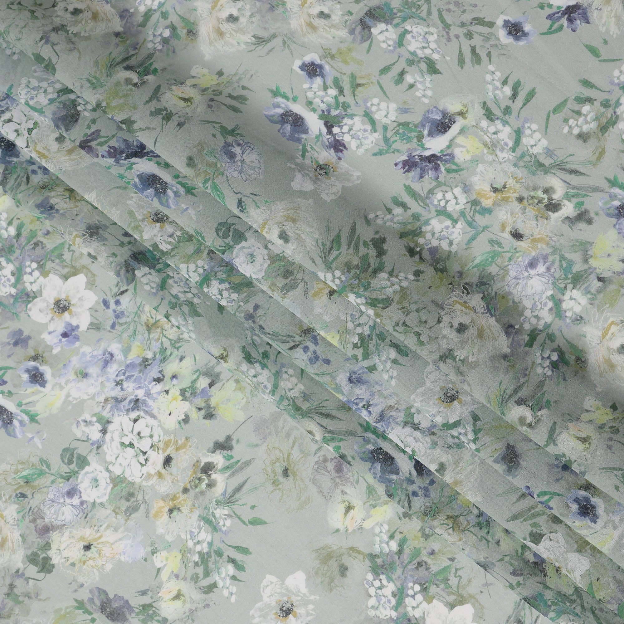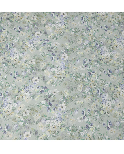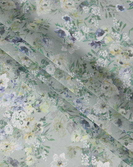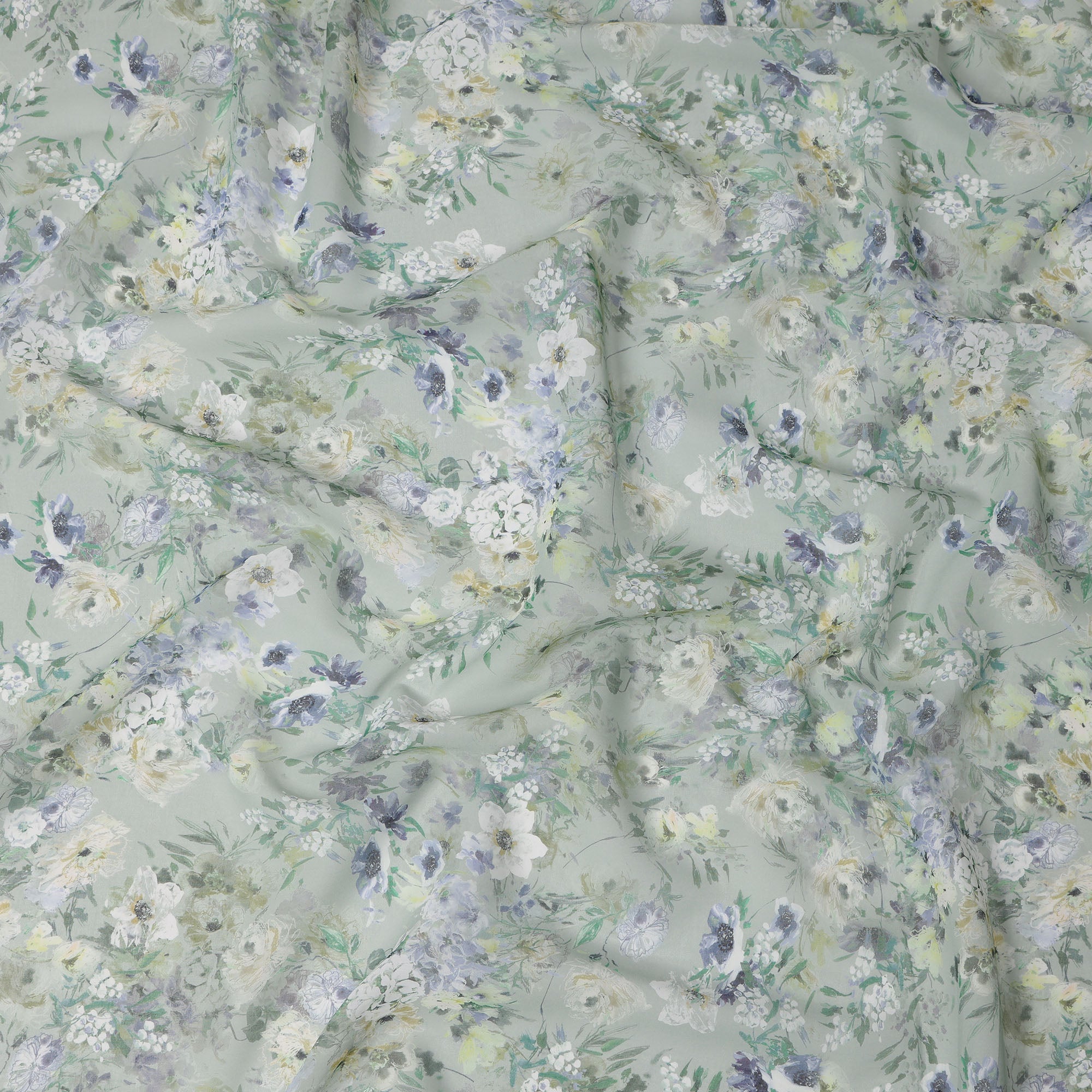 قماش قطني فوال بطبعة زهور مائية تجريدية باللون الأخضر الحكيم، عرض 140 سم، صنع في الهند - D23042