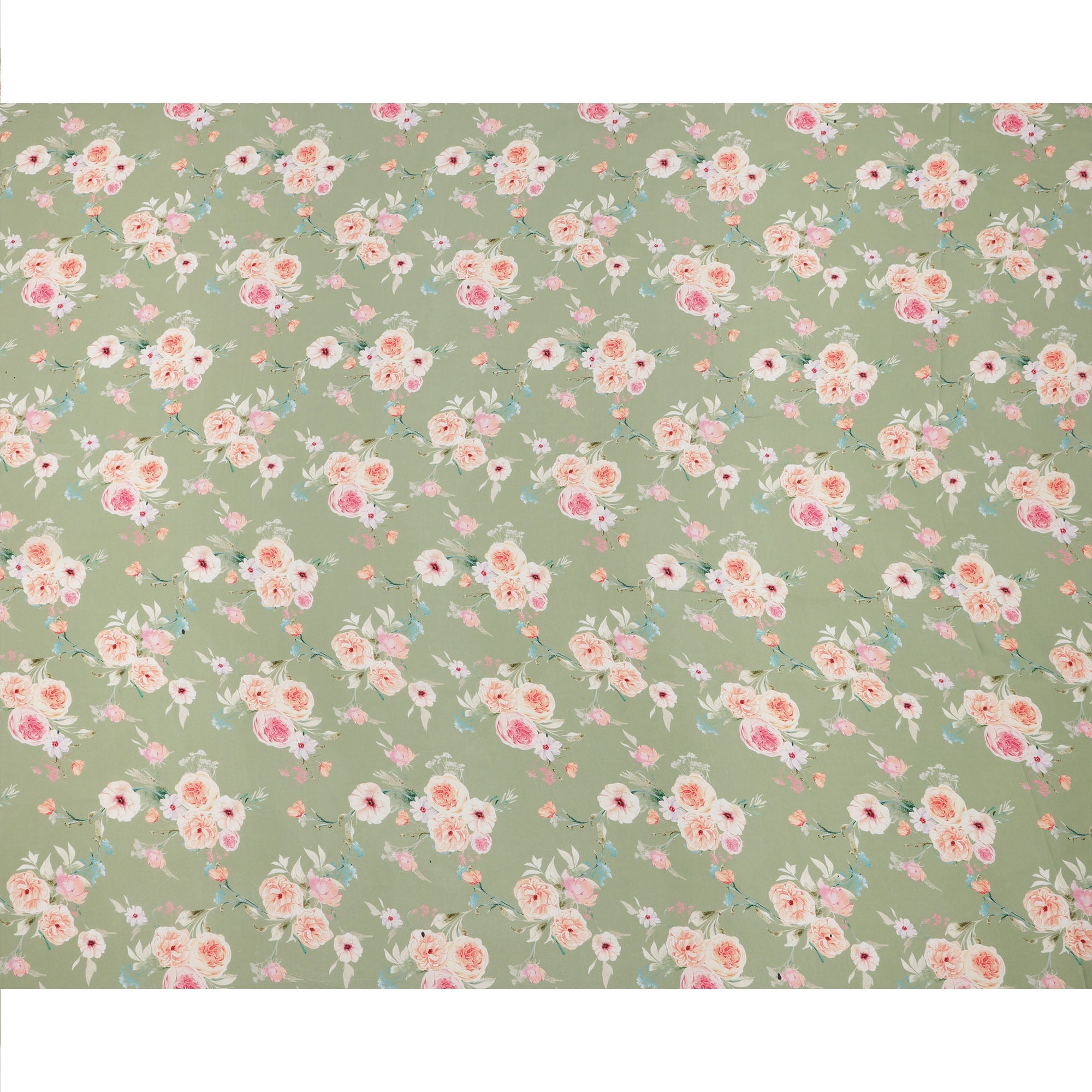قاعدة باللون الأخضر المريمية مزينة بزخارف زهرية ناعمة مطبوعة رقميًا باللون الخوخي والوردي