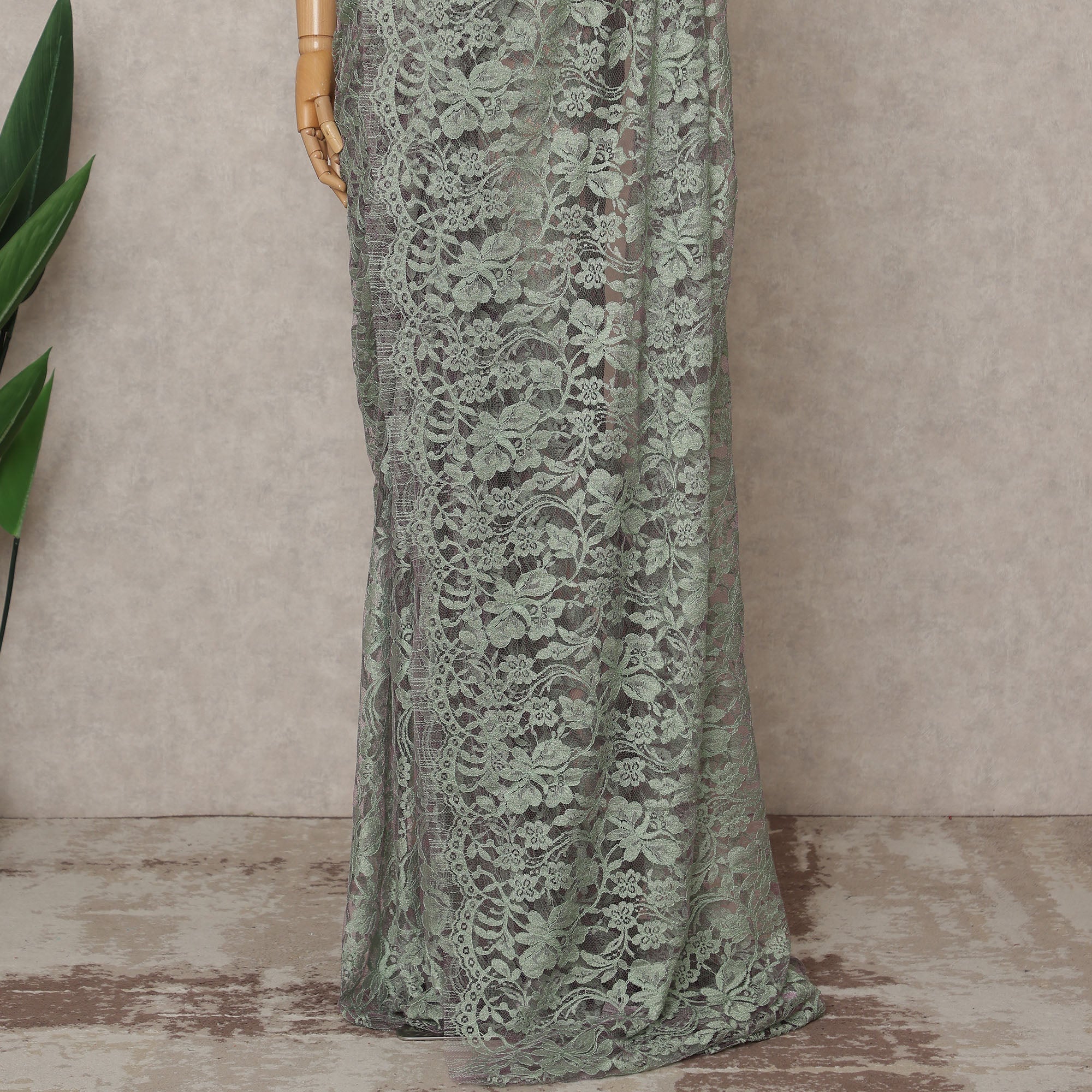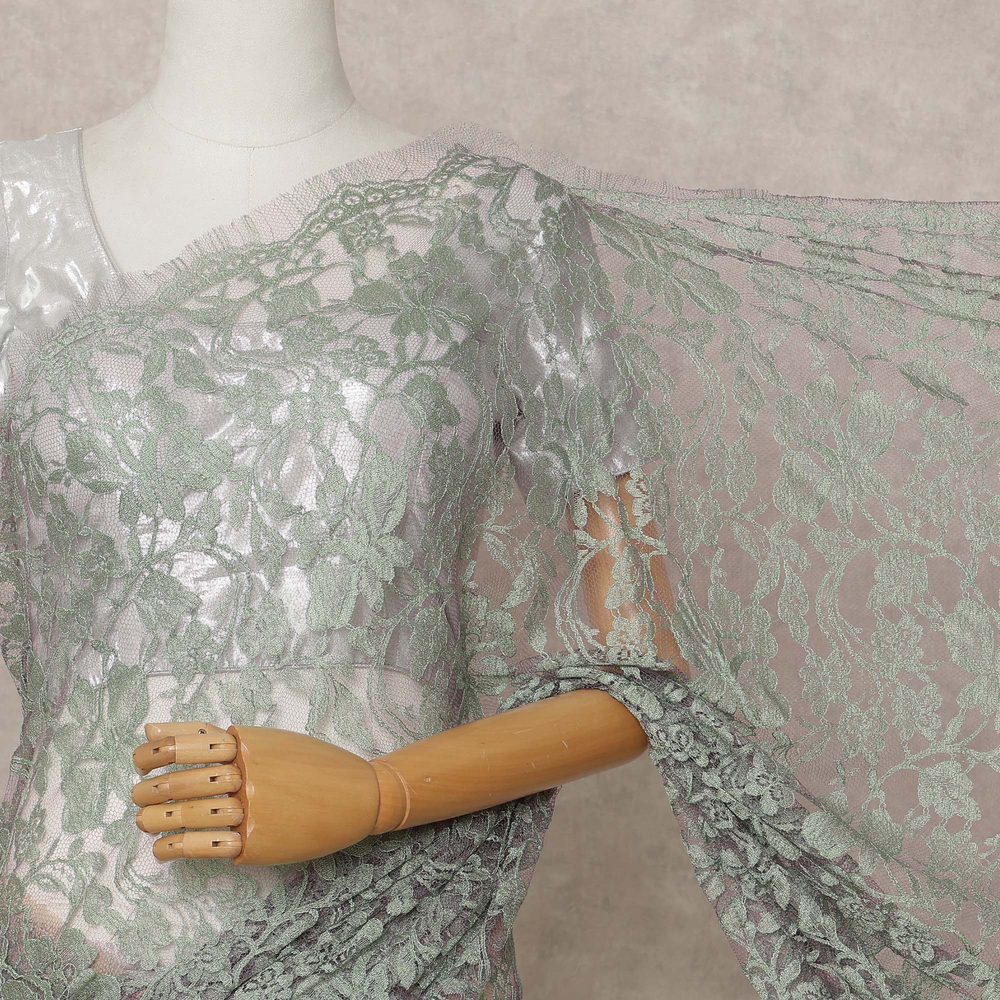 Sage Green Premium 2-Tone French Chantilly Lace Saree Fabric 5.5 Mtrs with 110 Cms Width – Imported from France-D25664