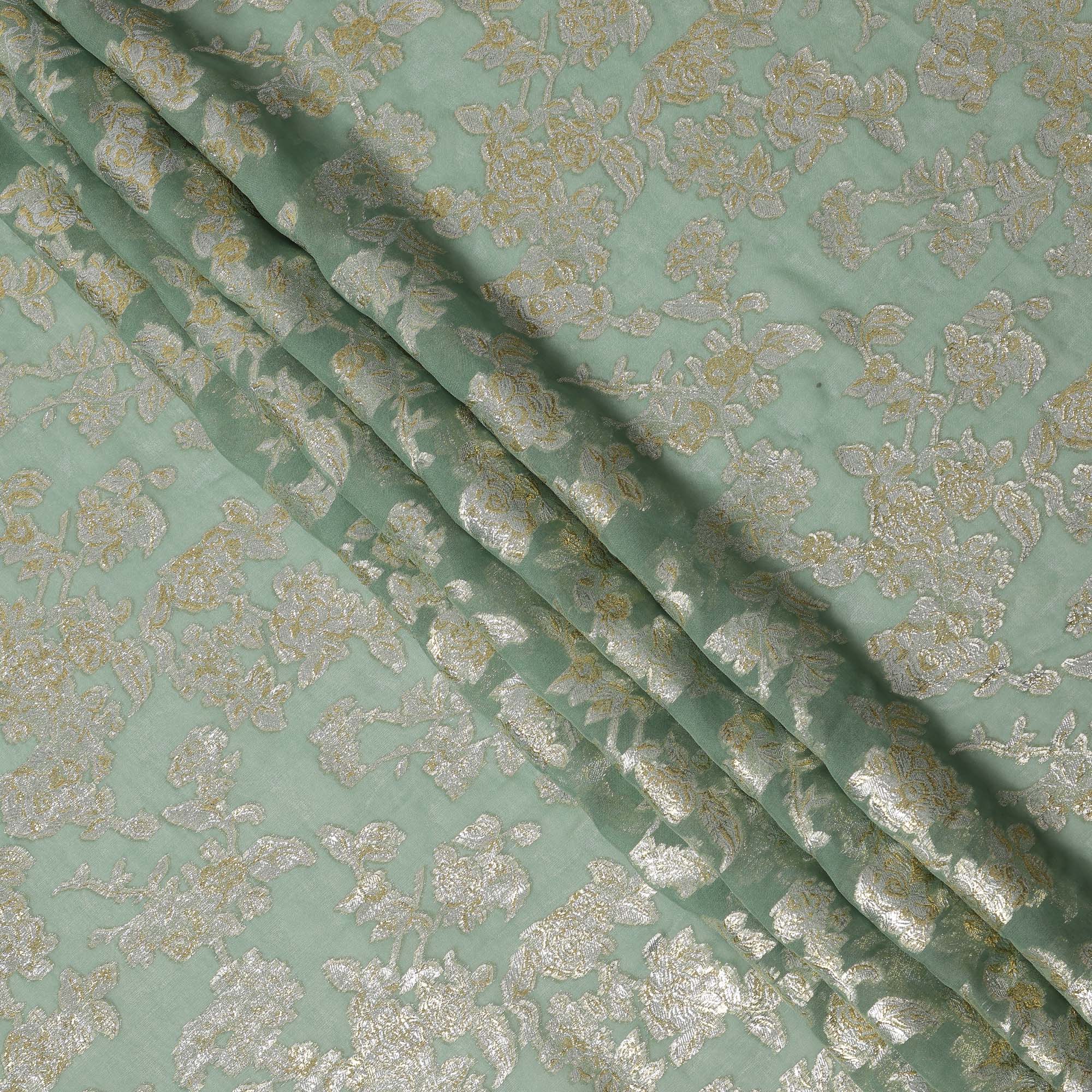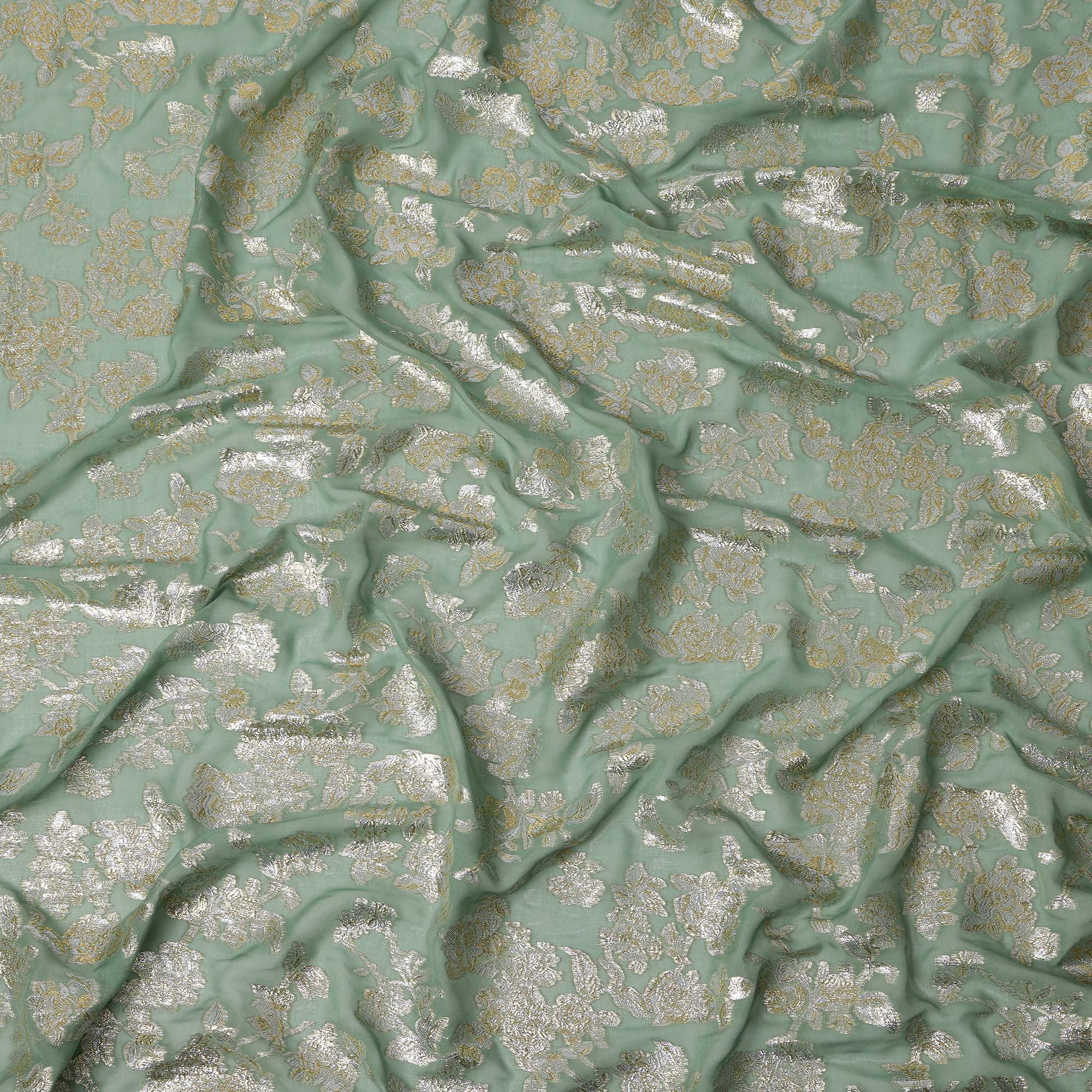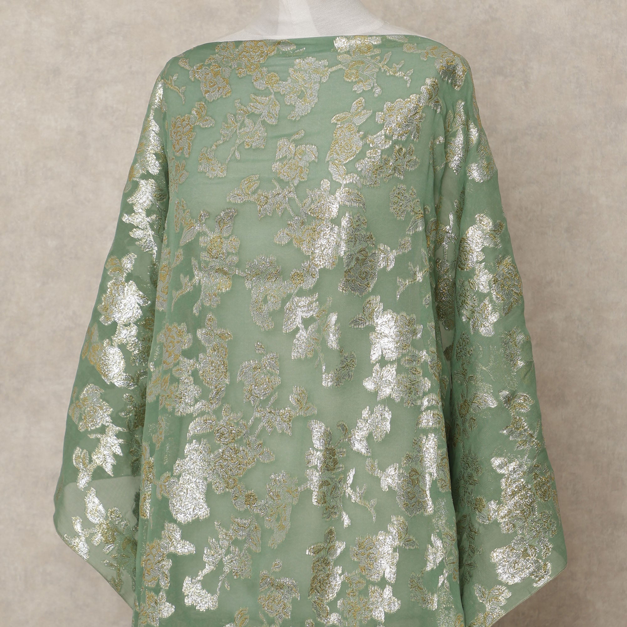 Sage Green Traditional Somali Silk Chiffon Dirac Fabric with Metallic Lurex, 140 Cms Width, 3.5 Mtrs Piece, Made in South Korea-D26130