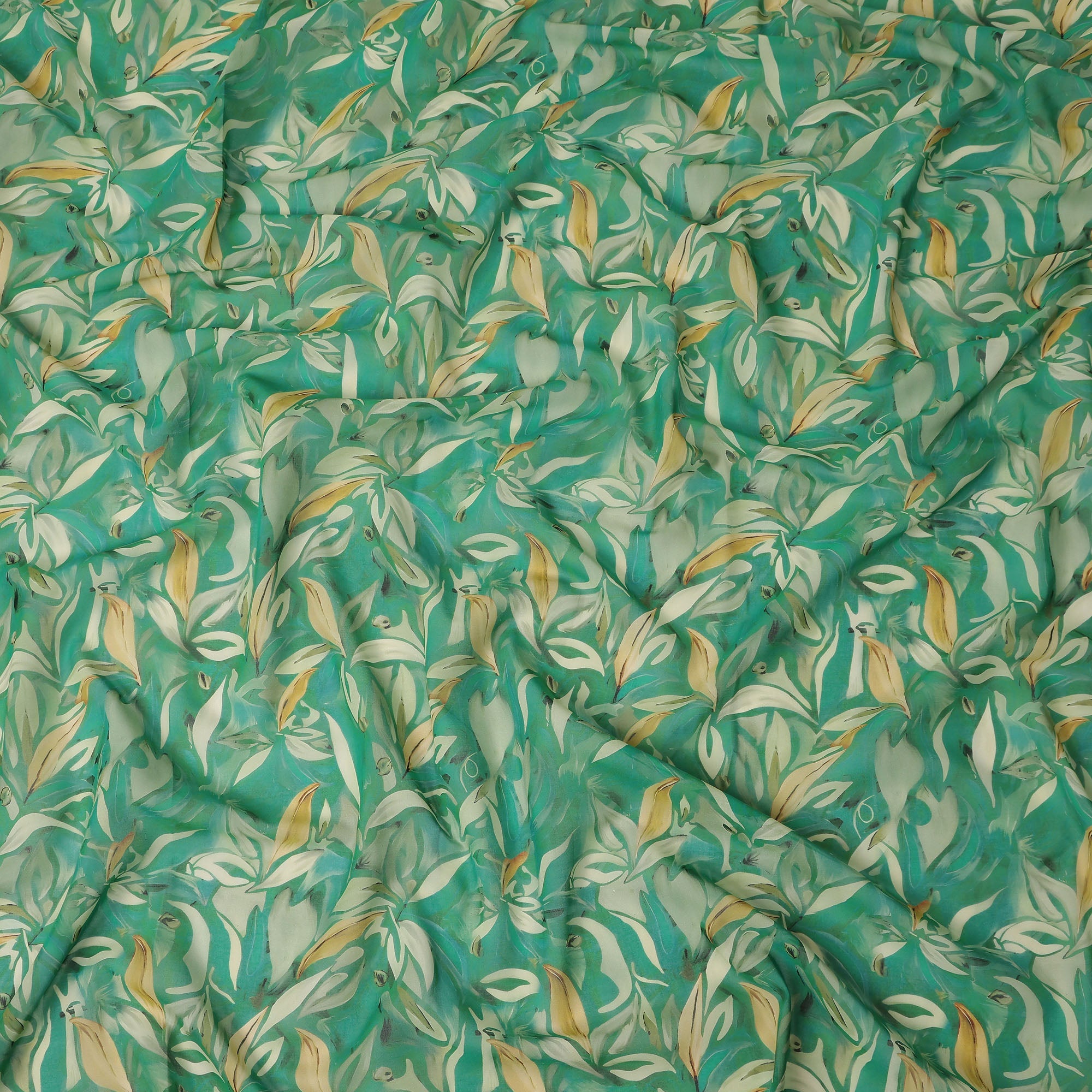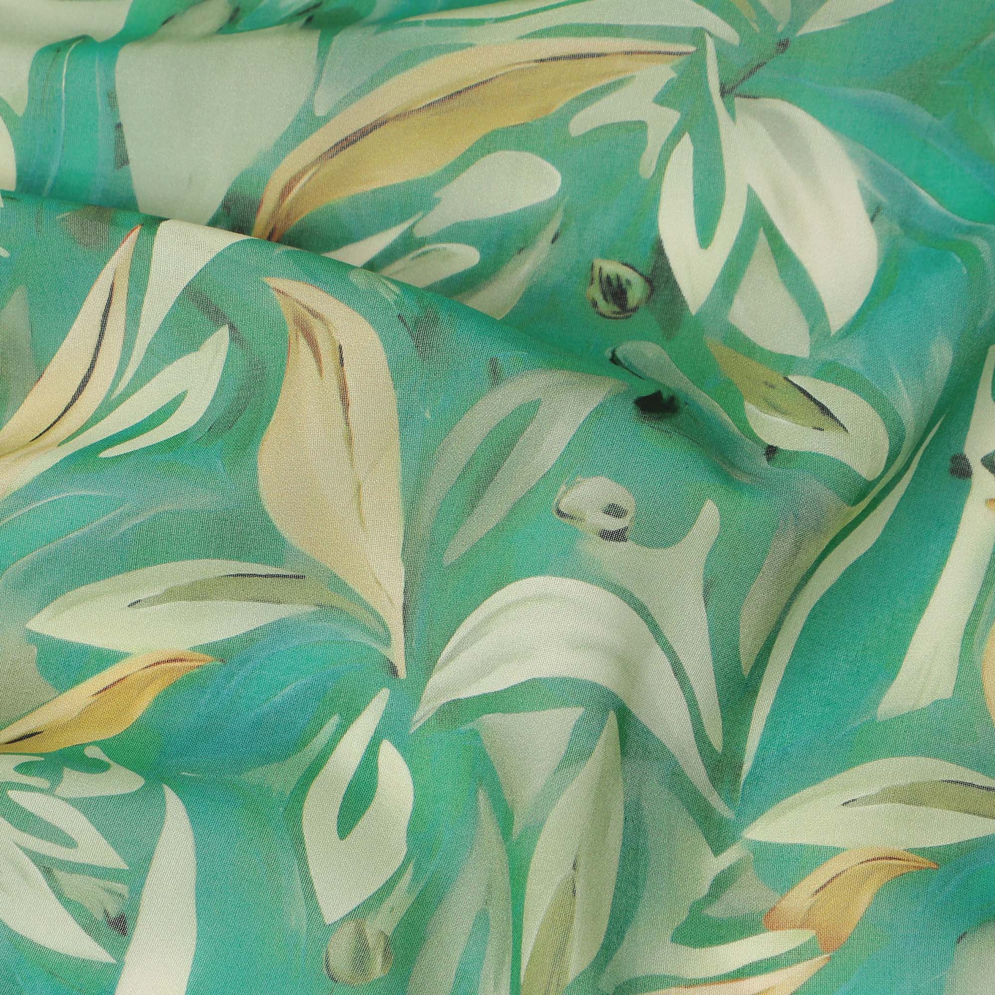 Refreshing sea green base with elegant leaf print for a graceful look.