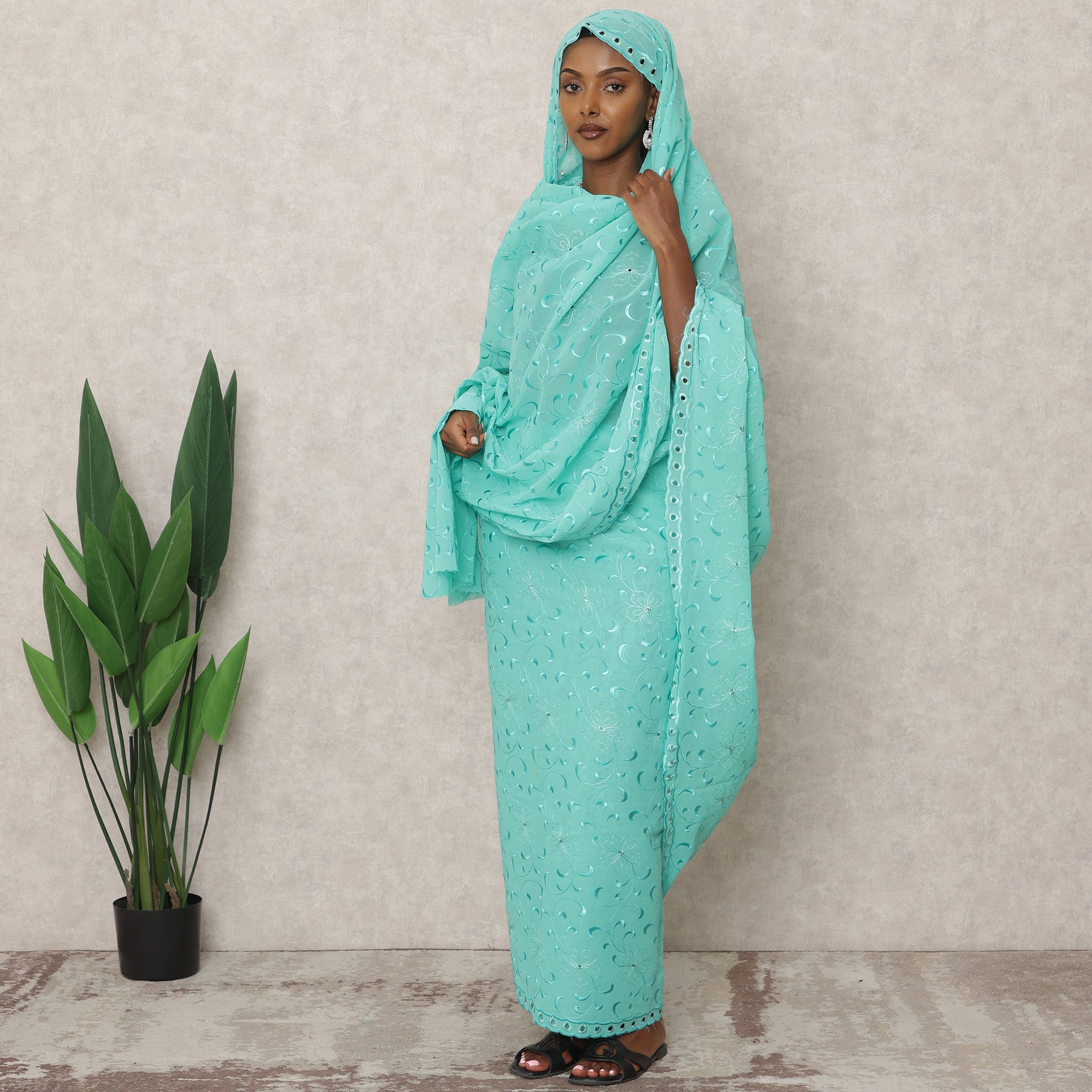 ثوب سوداني تقليدي أخضر بحري مع قماش تطريز فوال قطني نقي بطول 4.5 متر، عرض 140 سم، صنع في الهند - D24478