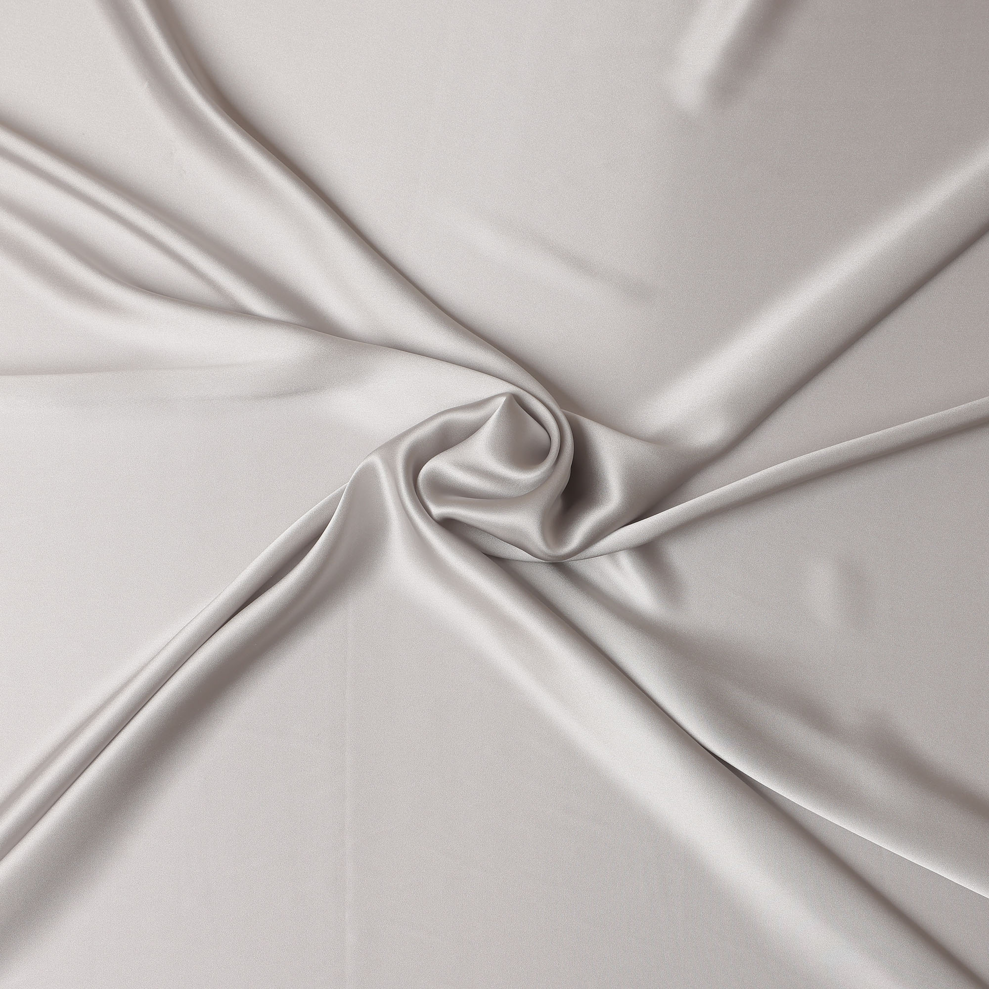 Silver grey pure silk satin fabric with elegant glossy sheen and silky smooth texture