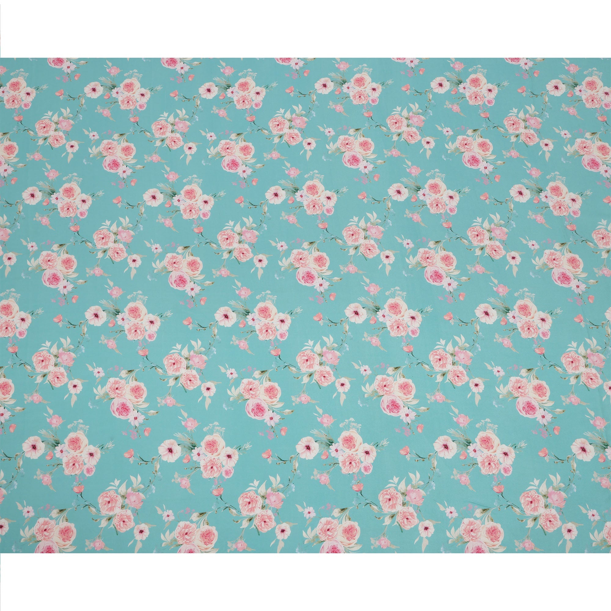 استمتعي بالأناقة الرومانسية مع قماش الكريب الحريري الخالص المطبوع عليه مجموعة ورود وردية وردية فاتحة بقاعدة زرقاء سماوية، وهو مزيج... اقرأ أكثر اقرأ أكثر