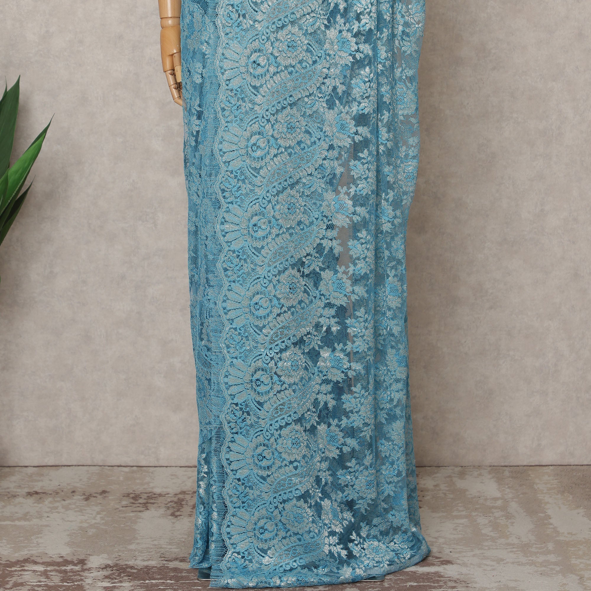 Sky Blue Premium French Metallic Chantilly Lace Saree Fabric – 5.5 Meters Length, 110 Cms Width, Imported from France-D25718