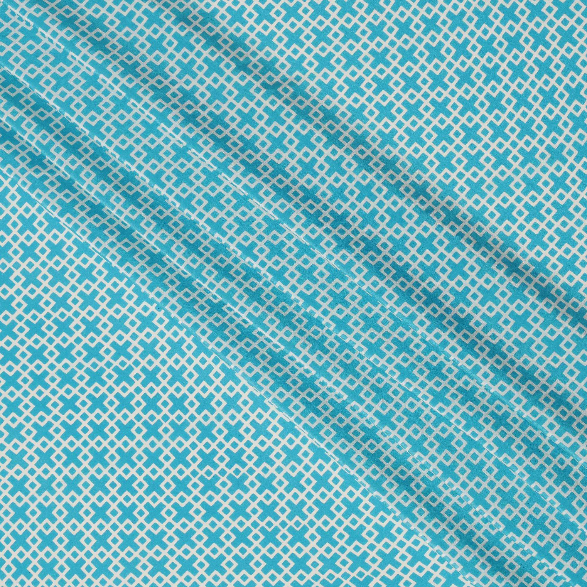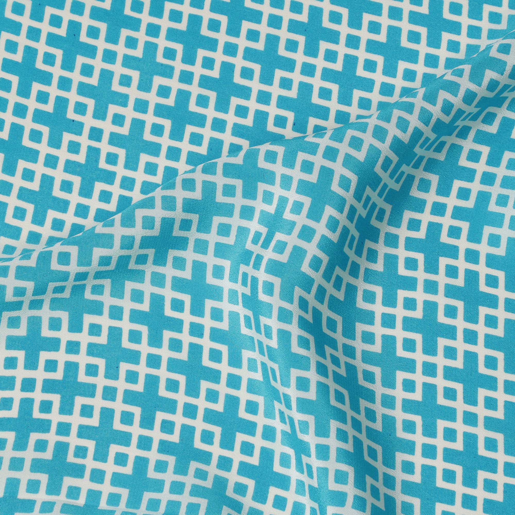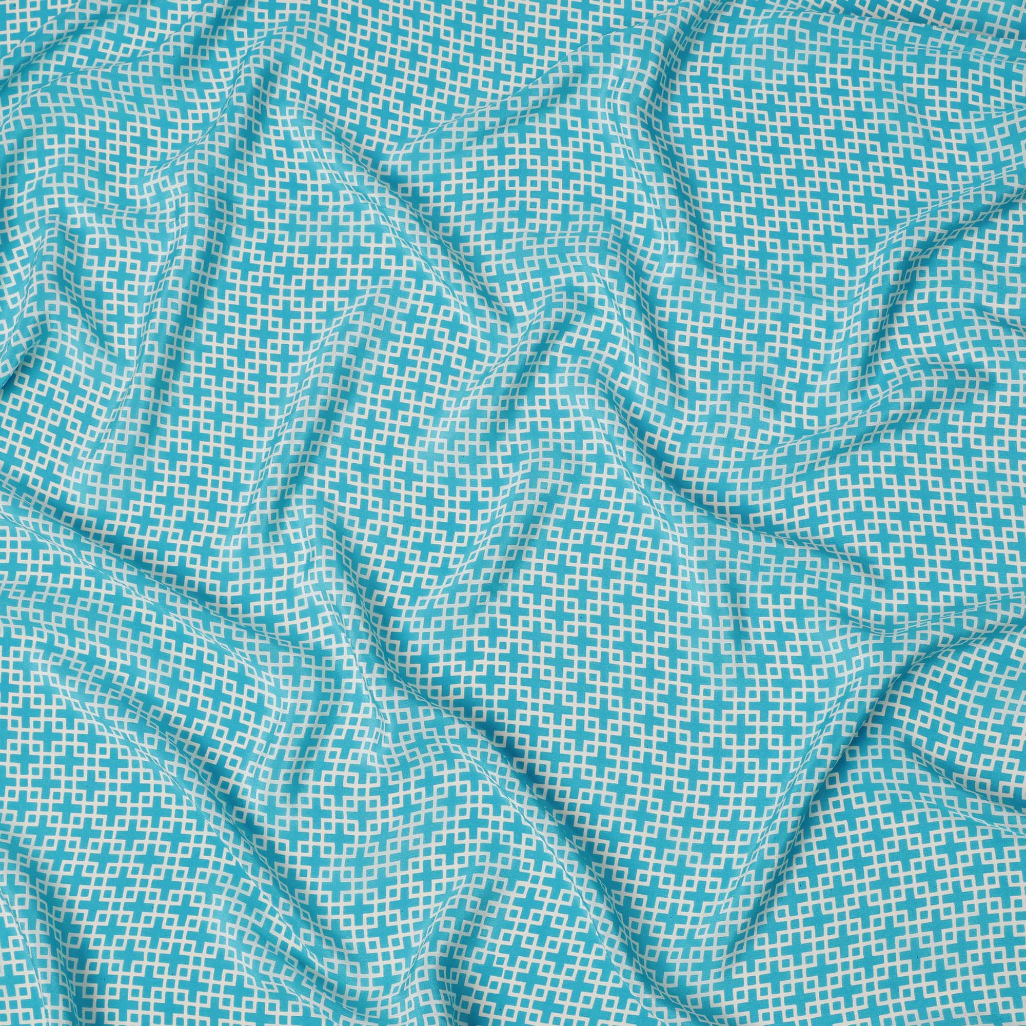 قماش كريب حريري خالص بطبعة هندسية شبكية باللون الأزرق السماوي والأبيض، عرض 110 سم، صنع في الهند - D23161