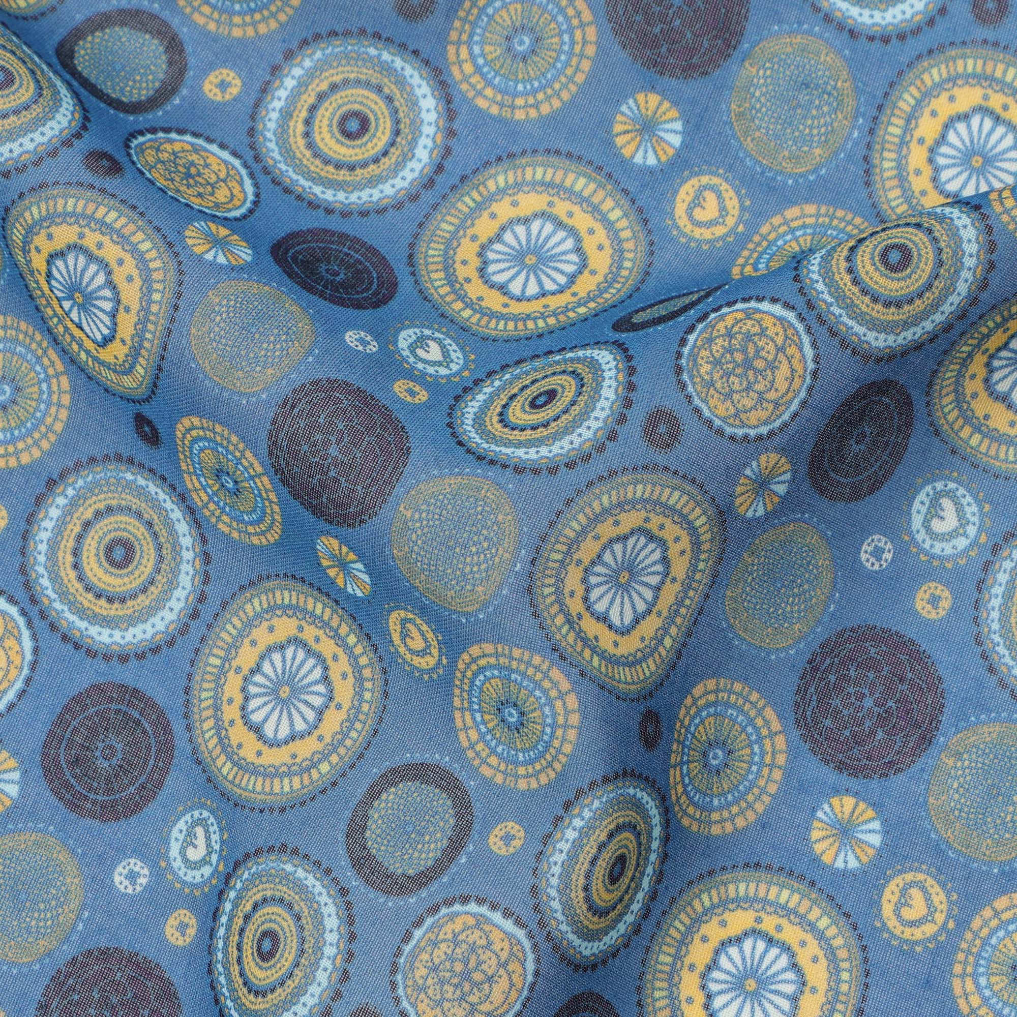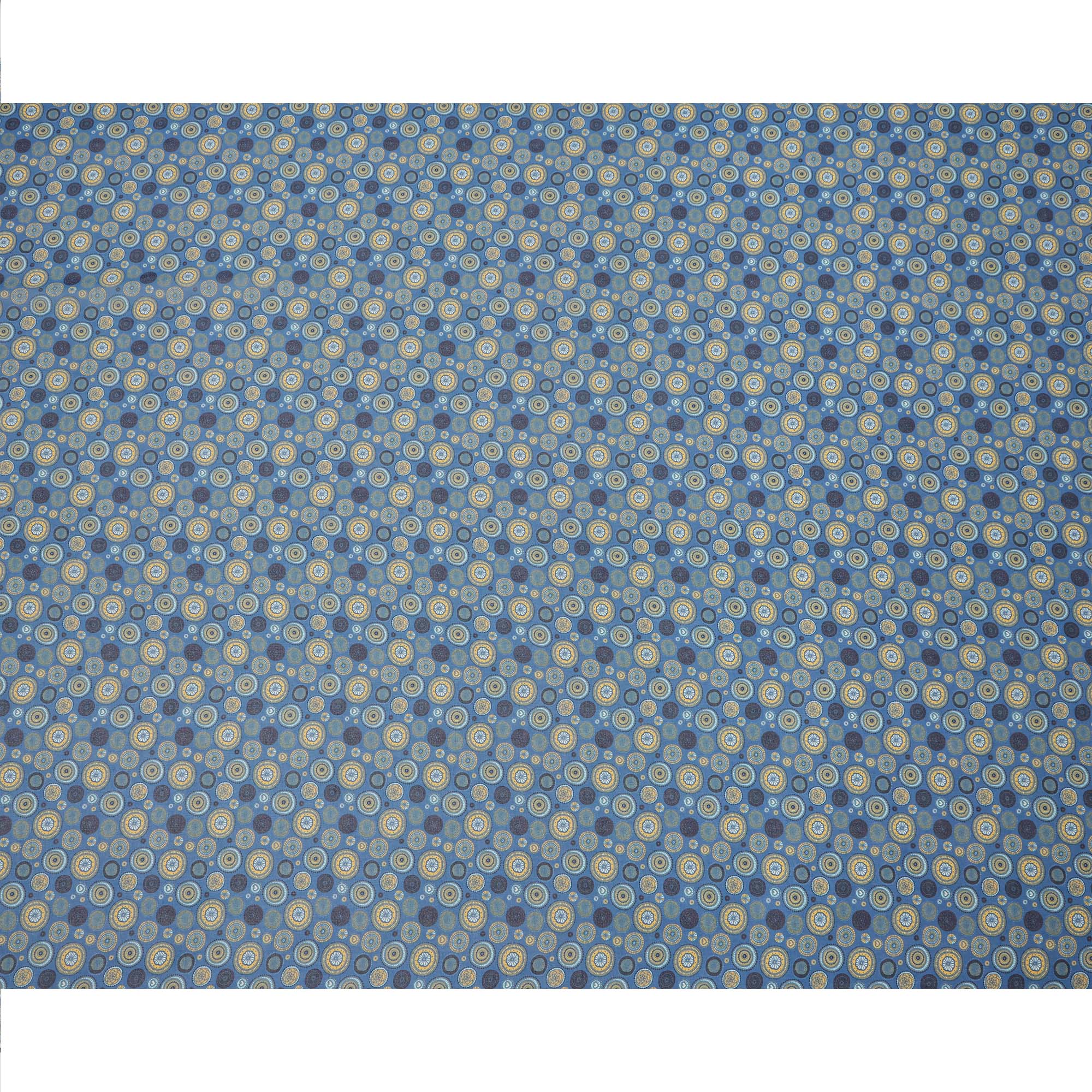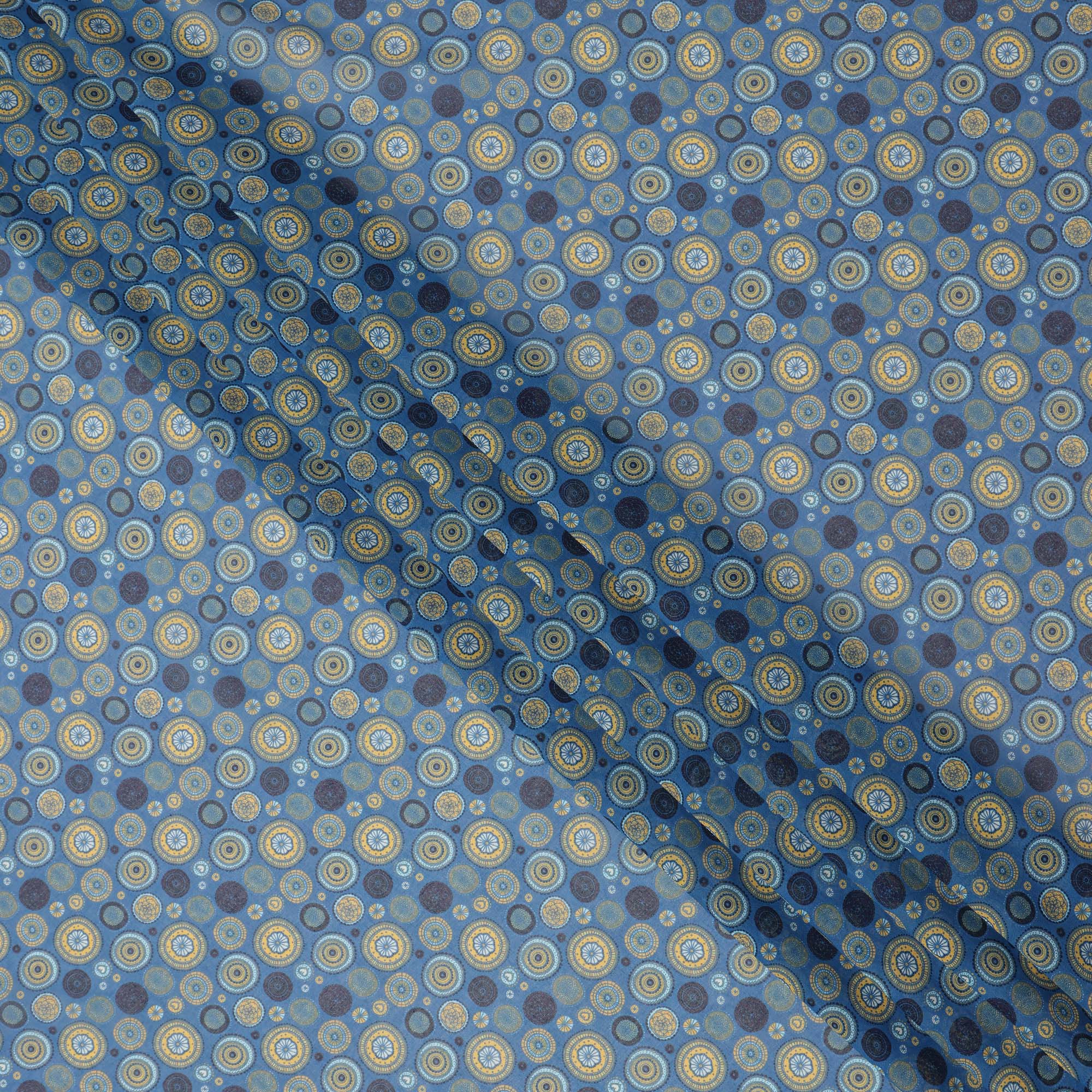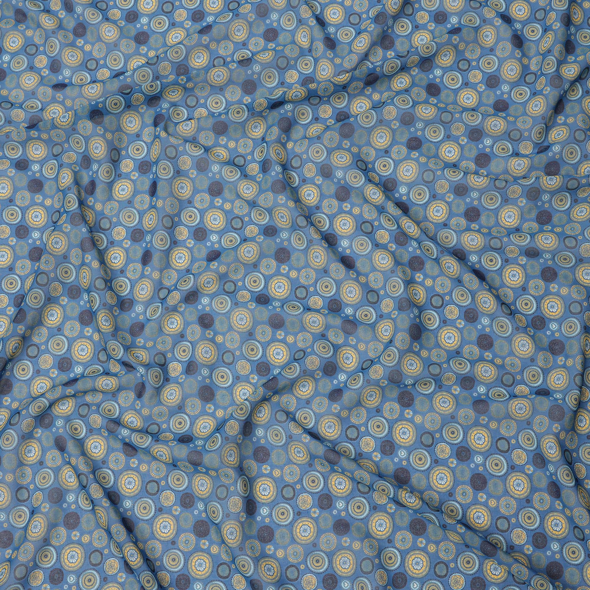 قماش فوال قطني بقاعدة زرقاء فولاذية مع نقاط متعددة الألوان متحدة المركز، بتصميم دائري تجريدي، عرض 110 سم، صنع في الهند - D23796