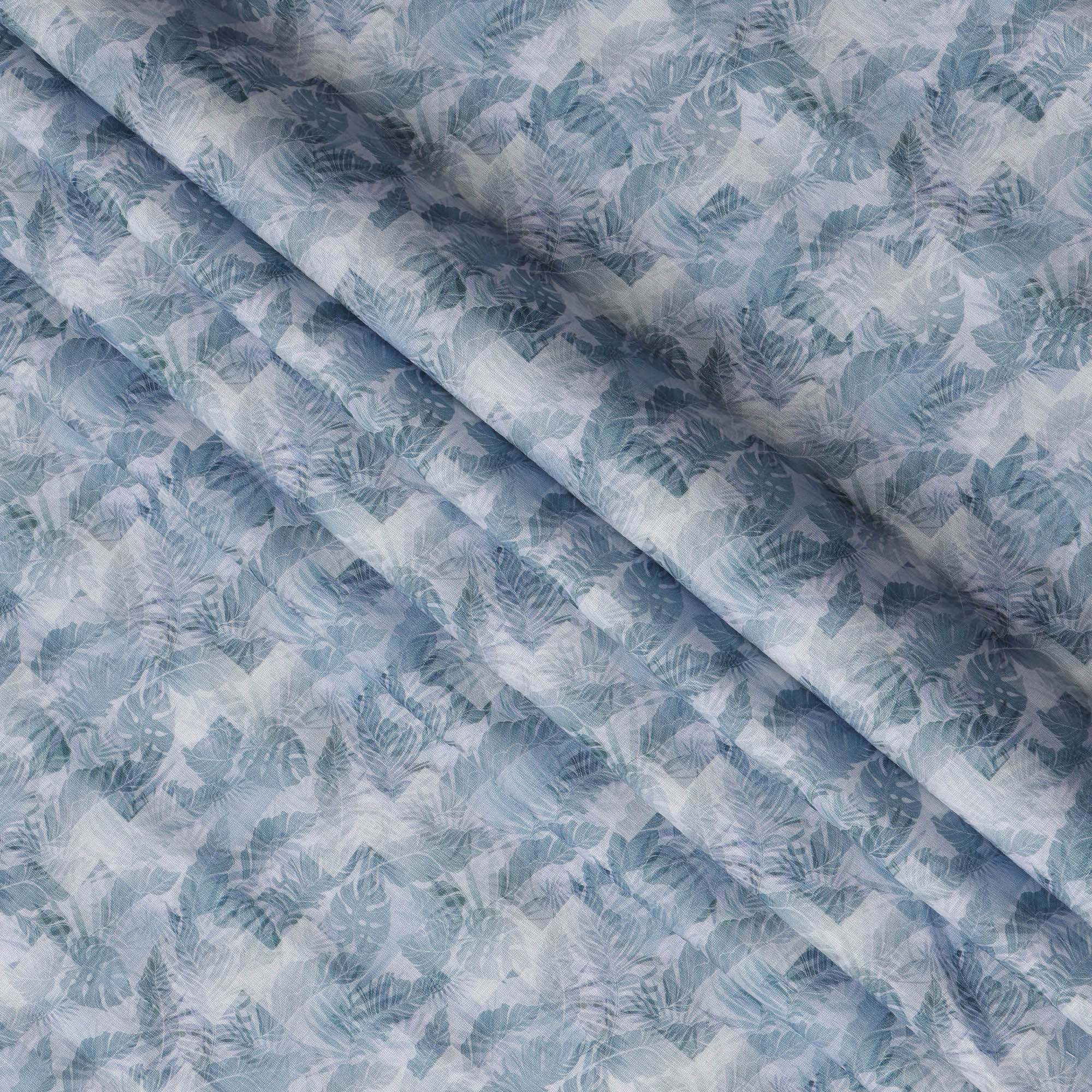 تسوق عبر الإنترنت للحصول على أقمشة الكتان المطبوعة بأوراق استوائية بألوان باردة