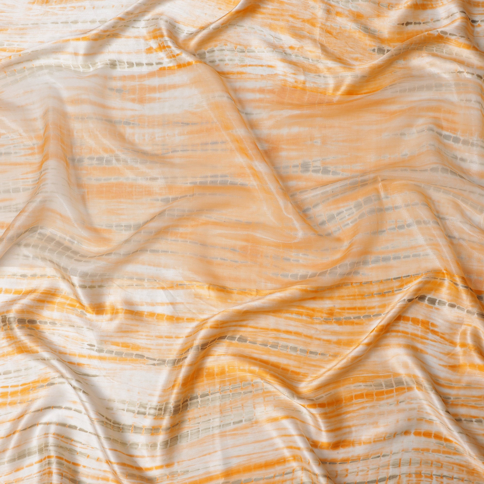 تصميم خطوط شيبوري باللون البرتقالي الغروب والعاجي على قماش ساتان حريري خالص