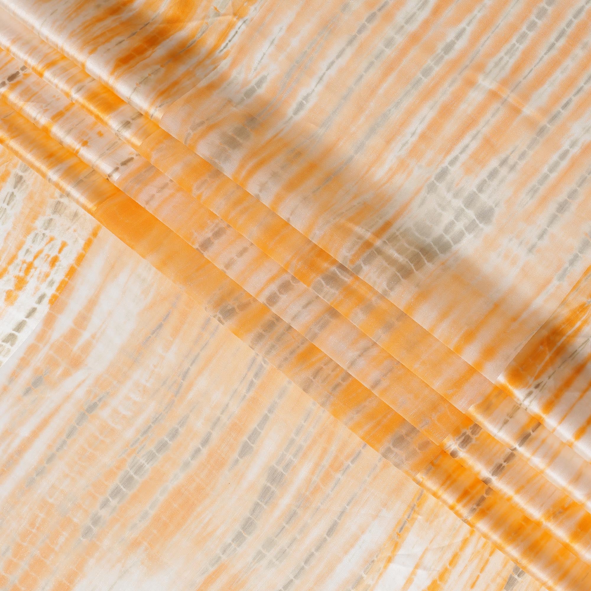 انغمسي في أناقة طبيعية مع هذا القماش الحريري الخالص بلوني غروب الشمس البرتقالي والعاجي، مزينًا بخطوط شيبوري المصبوغة يدويًا والتي تنساب بسلاسة على سطحه الفاخر. مزيج درجات البرتقالي الدافئة مع العاجي الناعم والخطوط الرمادية الترابية الرقيقة يخلق مظهرًا متناغمًا بلمسة من أشعة الشمس، مثالي للملابس العرقية المنعشة، والمجموعات العصرية، والأوشحة المميزة. منسوج في الهند، بعرض 110 سم، يتميز هذا الساتان الحريري الفاخر بملمس ناعم ولامع مع ثنيات وانسيابية ممتازة. تعكس كل قطعة سحرًا حرفيًا فريدًا، مما يجعلها مثالية لمن يقدرون جمال الصنع اليدوي مع راحة الحرير الفاخرة. تسوقي عبر الإنترنت الآن لإطلالة خالدة مستوحاة من الحرفية التقليدية.