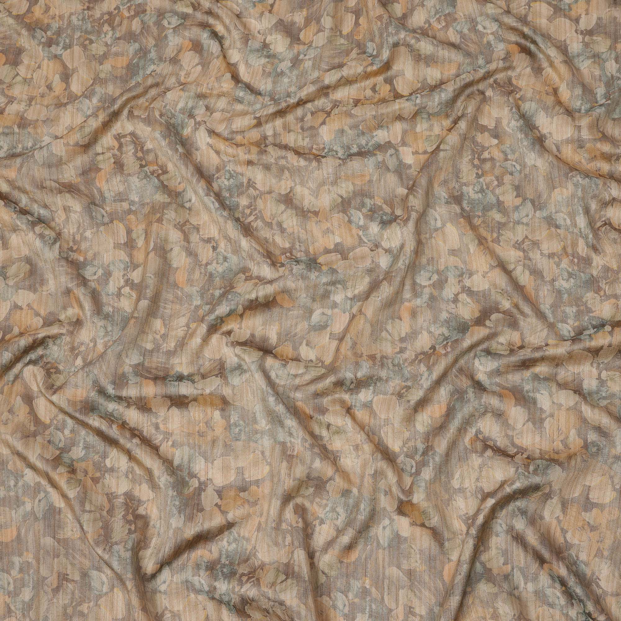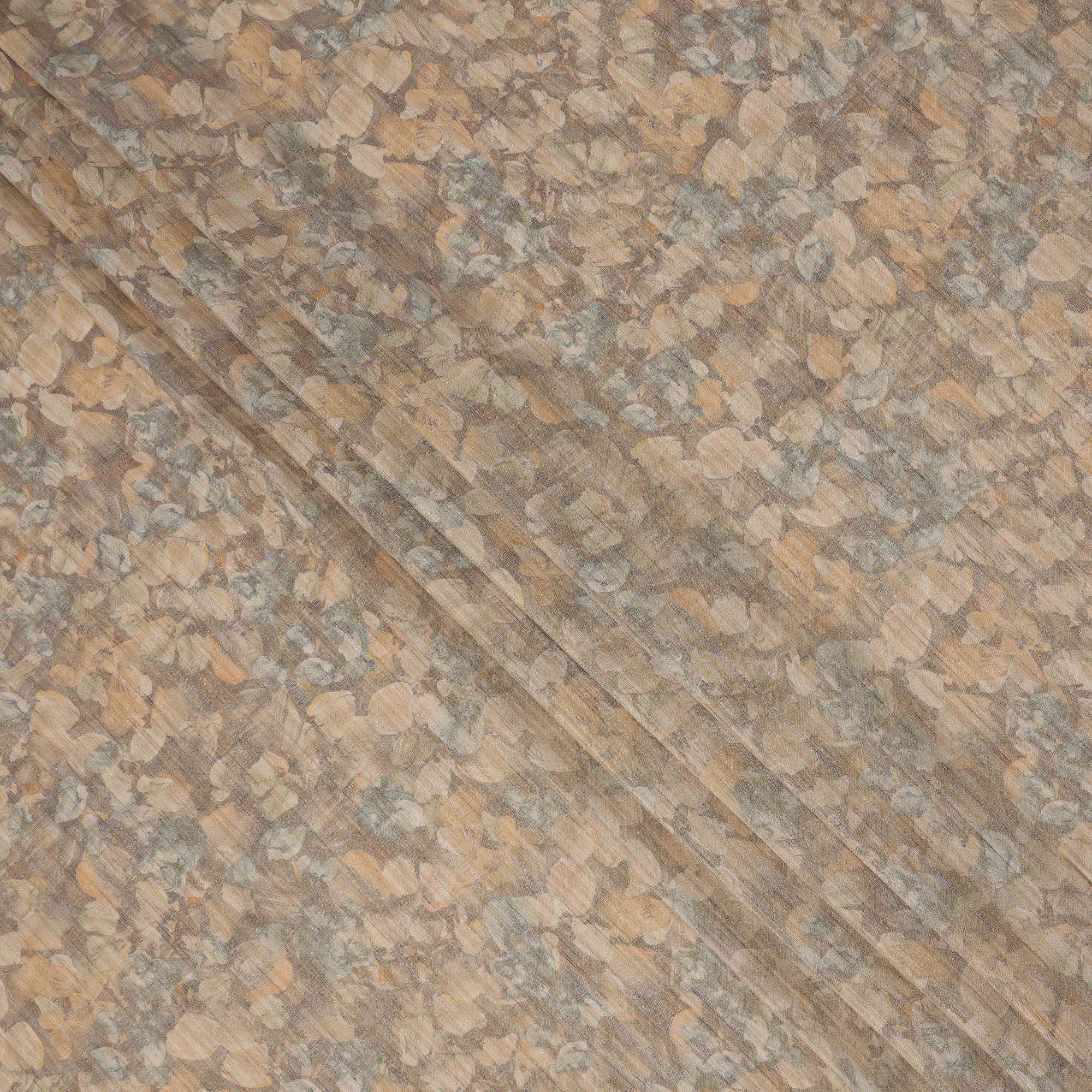 قماش كريب فيسكوز بطبعة أوراق تجريدية بلون بني رمادي وزيتوني، بتصميم رقمي ناعم، عرض 110 سم، صنع في الهند - D23754