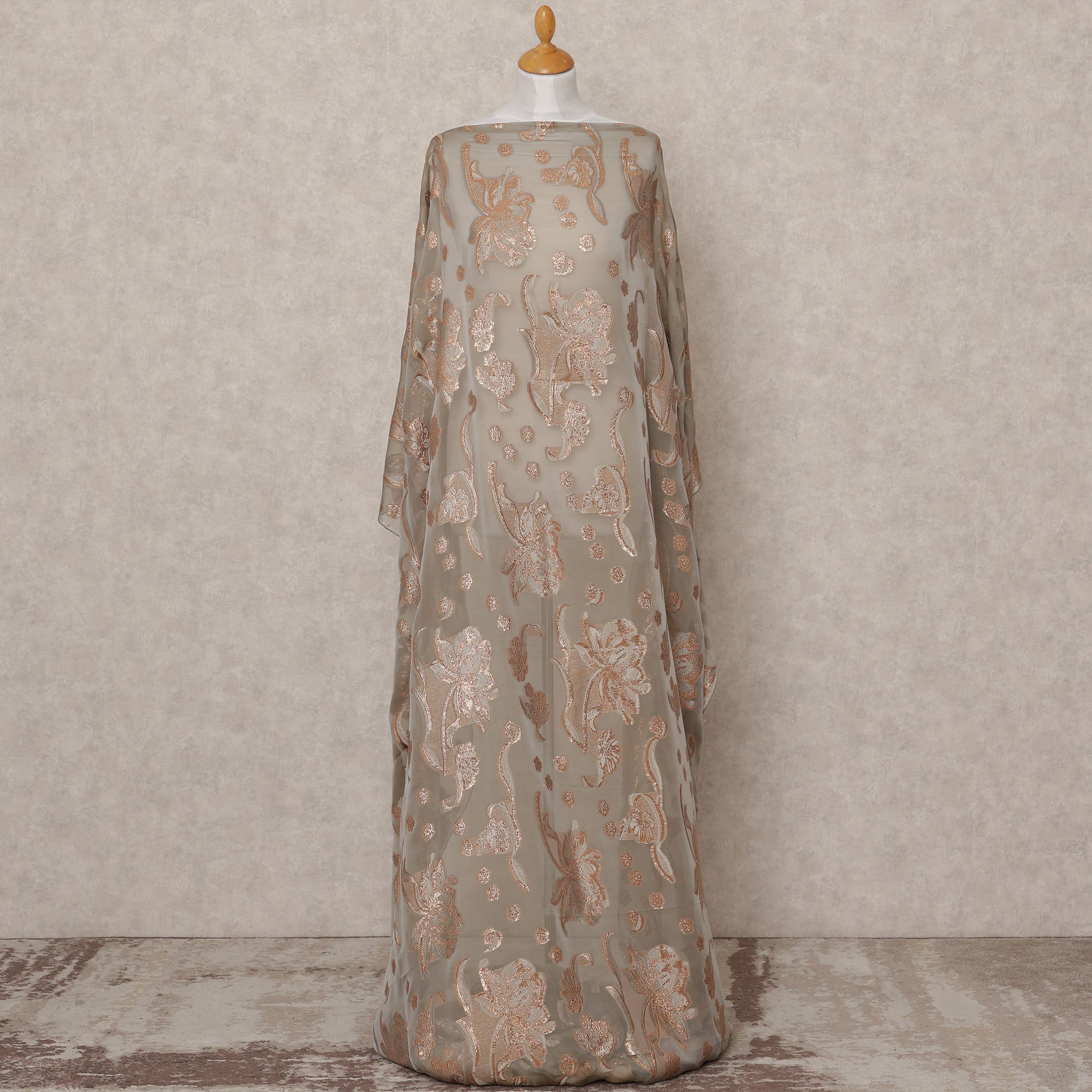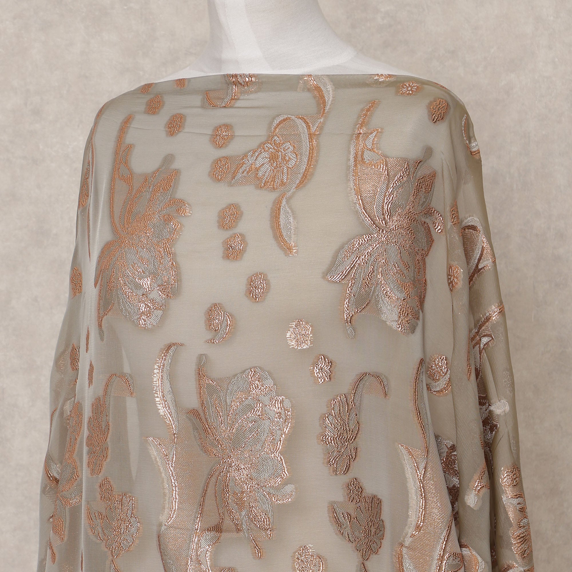 قماش ديراك الحريري الصومالي الفاخر من فرانساوي بلون بني فاتح، مع لوركس معدني، خيارٌ رائعٌ لعشاق الأناقة الخالدة والتراث الثقافي. صُنع بمهارة في فرنسا، ويتميز بزخارف نباتية معدنية لامعة بلون ذهبي وردي، مصممة بدقة على قاعدة من شيفون حريري ناعم وشفاف بلون بني فاتح. يبلغ طول هذا القماش 3.5 متر وعرضه 140 سم، ويتدلى برشاقة، مما يمنحه ملمسًا فاخرًا وخفيف الوزن، مثاليًا للمناسبات الخاصة وحفلات الزفاف والمناسبات الاحتفالية. يضمن مزيجه من الملمس الغني واللمعان الرقيق والجودة العالية التهوية الراحة مع الحفاظ على مظهر فاخر. يُنظف جافًا فقط للحفاظ على تفاصيله الدقيقة ولمساته النابضة بالحياة.