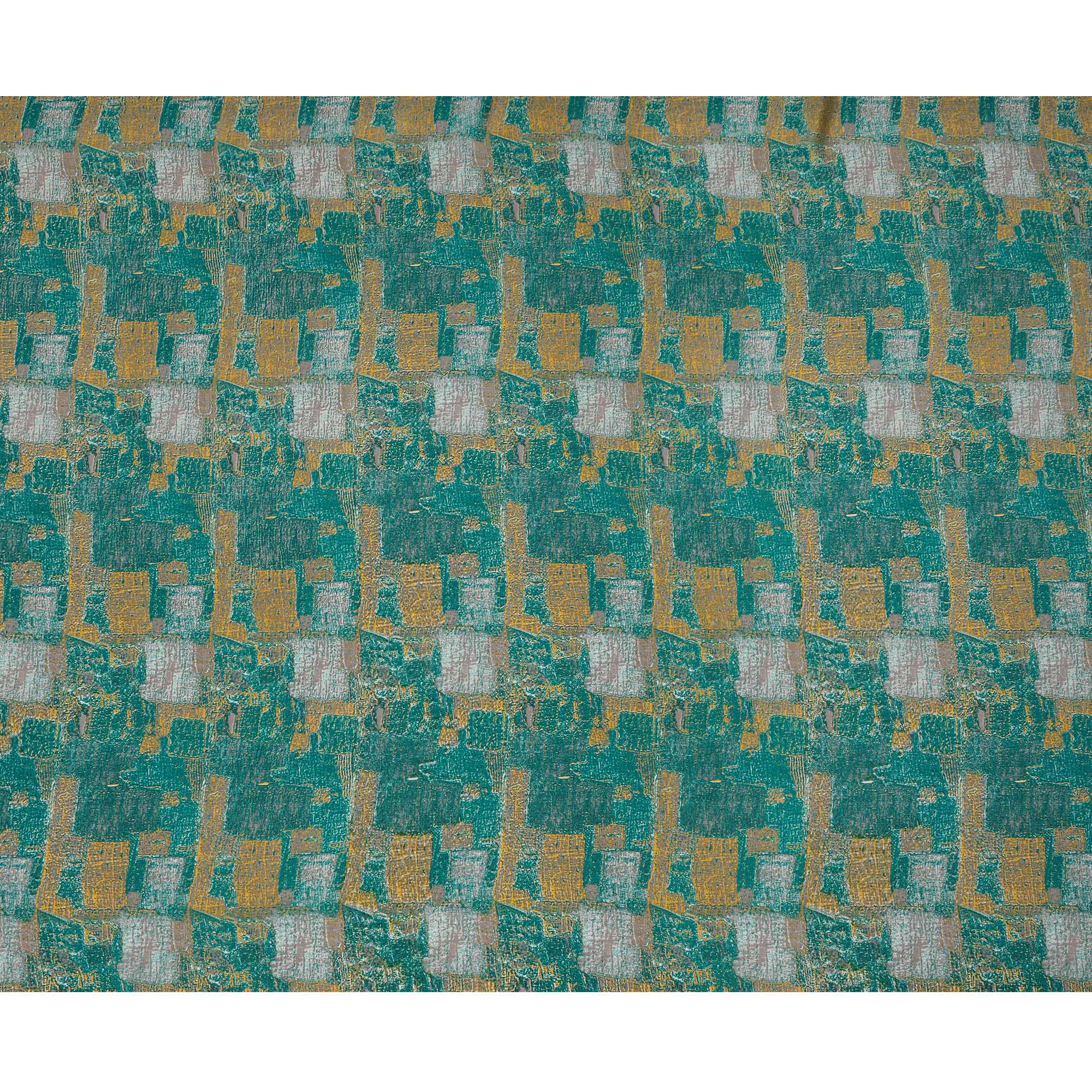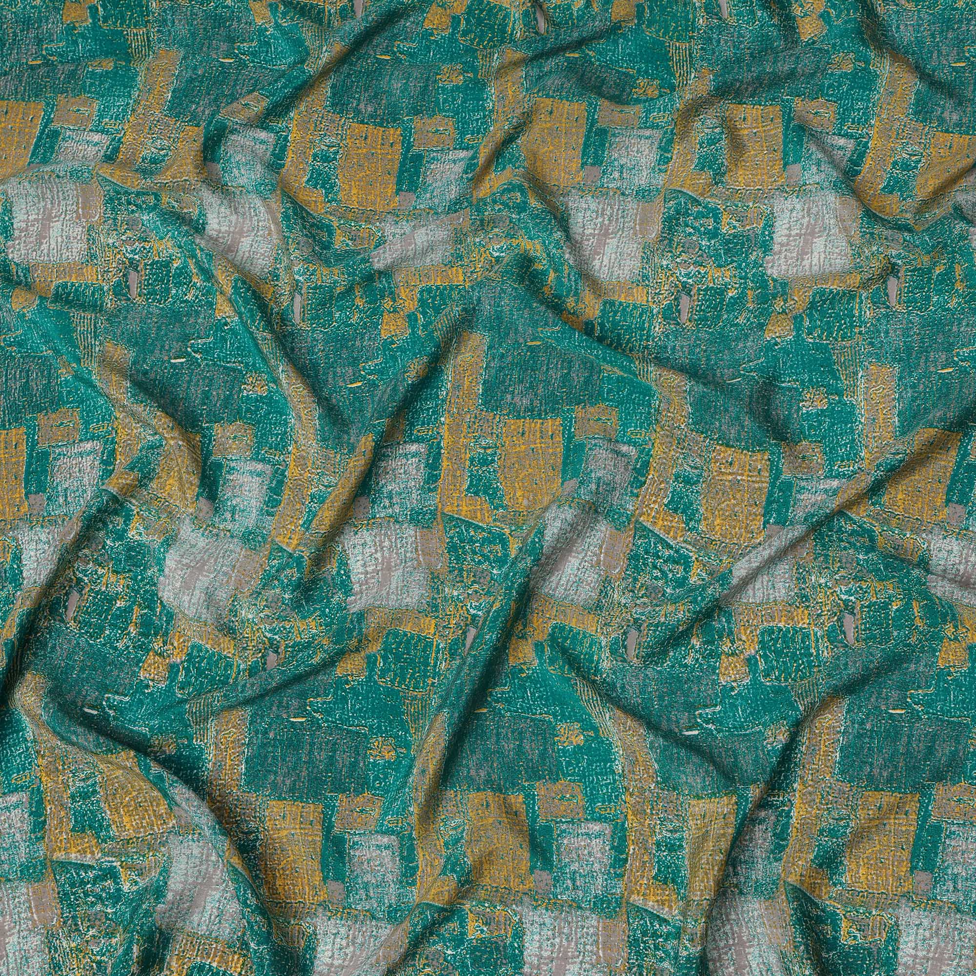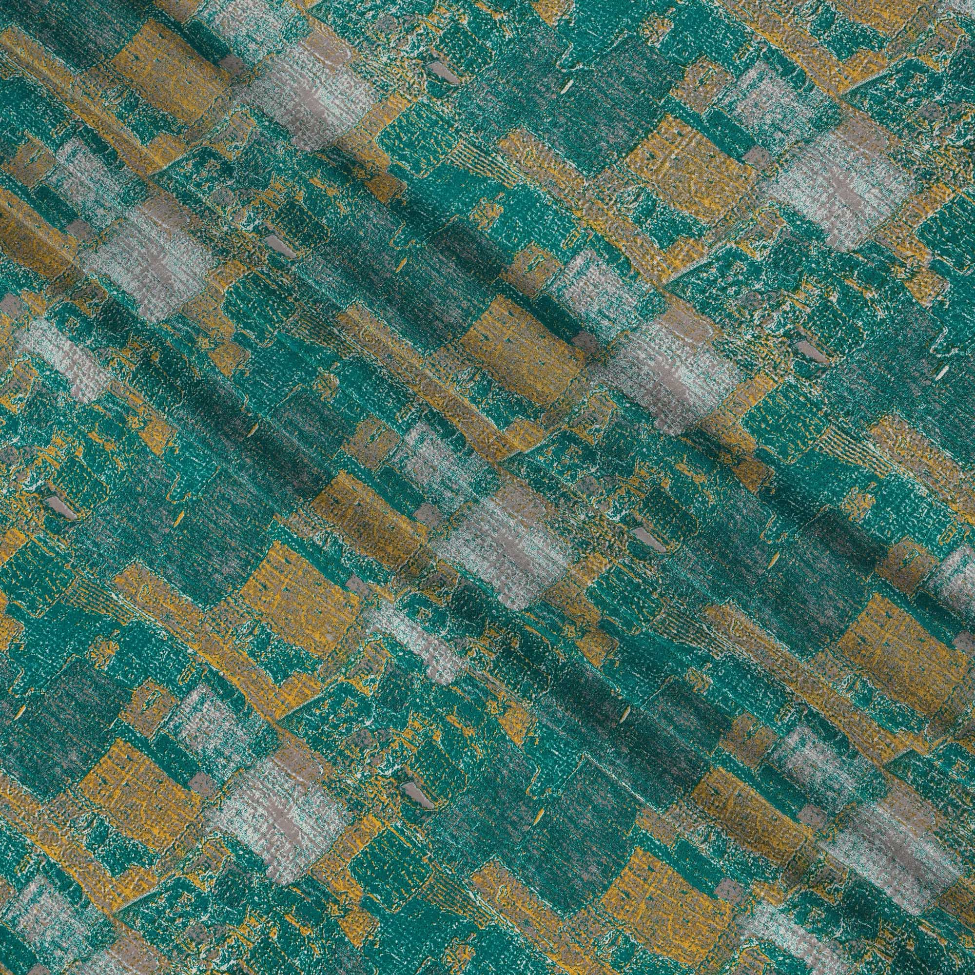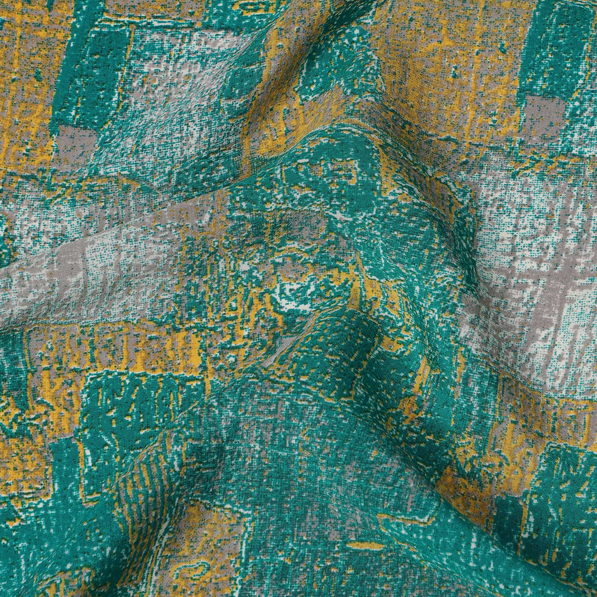 انغمس في لوحة من الفن المعاصر مع هذا القماش الكريب الحريري الخالص ذو النمط المجرد باللون الأخضر المزرق، وهو مزيج... اقرأ أكثر اقرأ أكثر