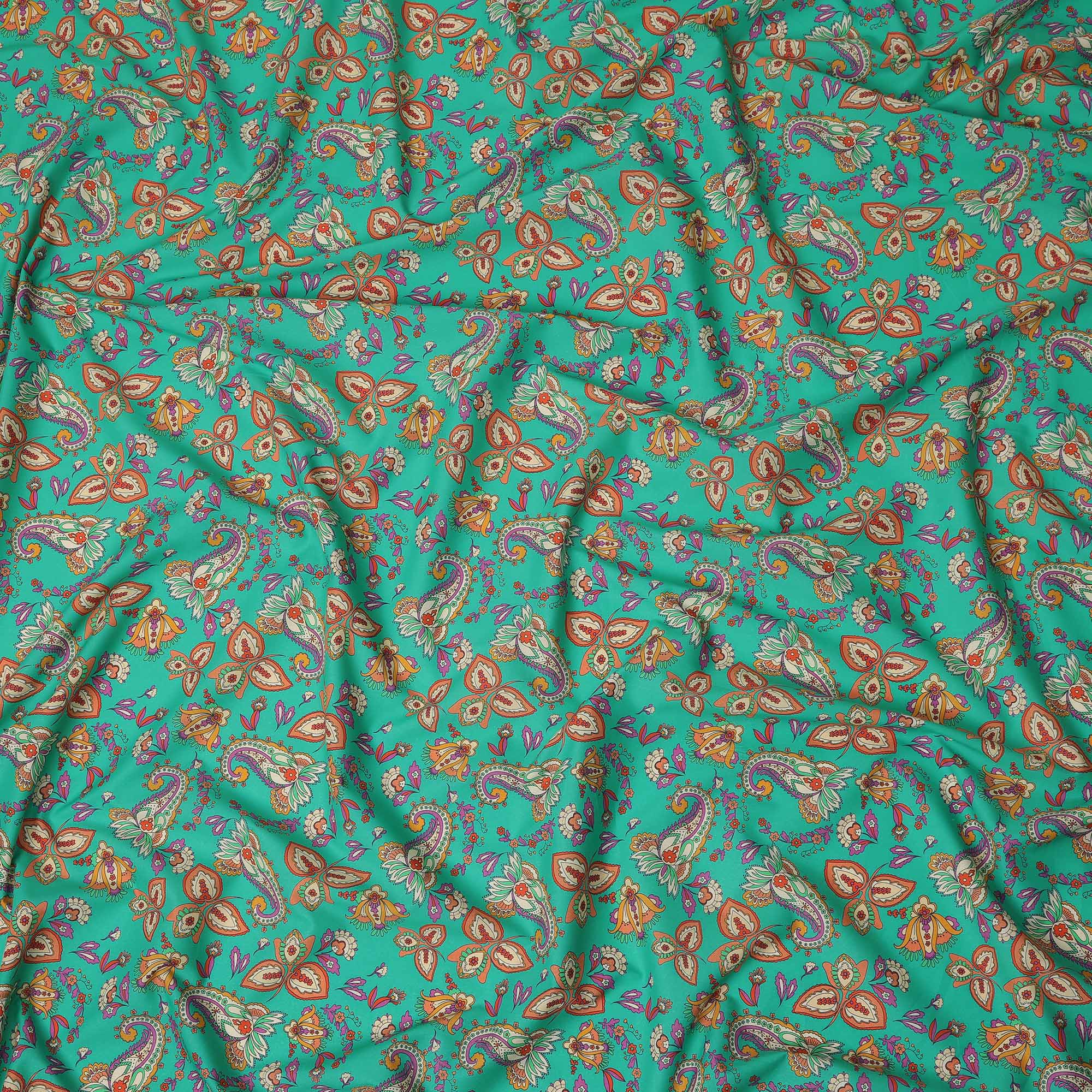 • Teal Green Paisley Floral Printed Premium Spanish 100% Cotton Voile Fabric Soft Lightweight Breathable Apparel Craft Textile 150 Cms Wide, Made in Spain-D27509
