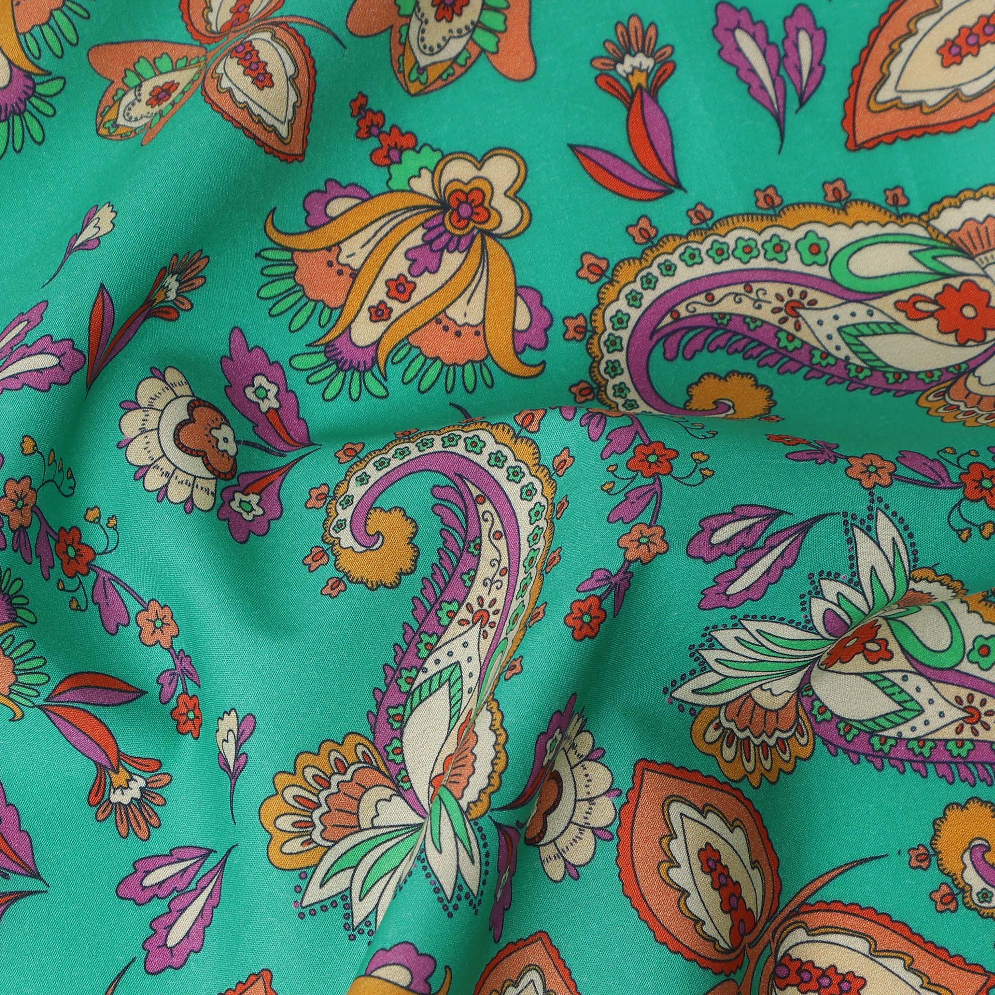 • أُوكَازيُون -20% Teal Green Paisley Floral Printed Premium Spanish 100% Cotton Voile Fabric Soft Lightweight Breathable Apparel Craft Textile 150 Cms Wide, Made in Spain-D27509