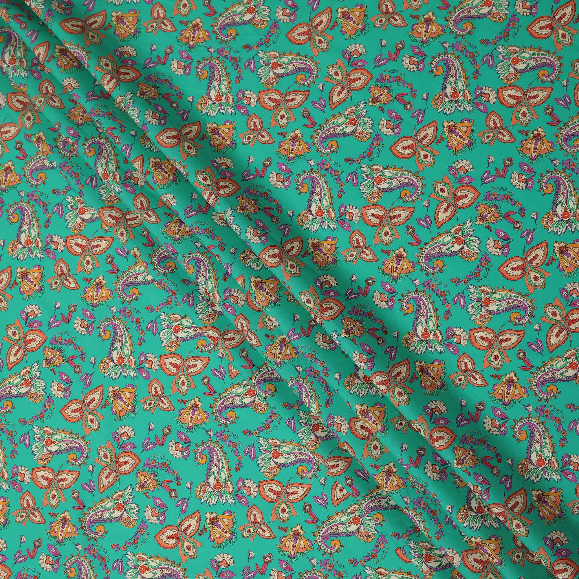 Teal Green Paisley Floral Printed Premium Spanish 100% Cotton Voile Fabric Soft Lightweight Breathable Apparel Craft Textile 150 Cms Wide, Made in Spain-D27509