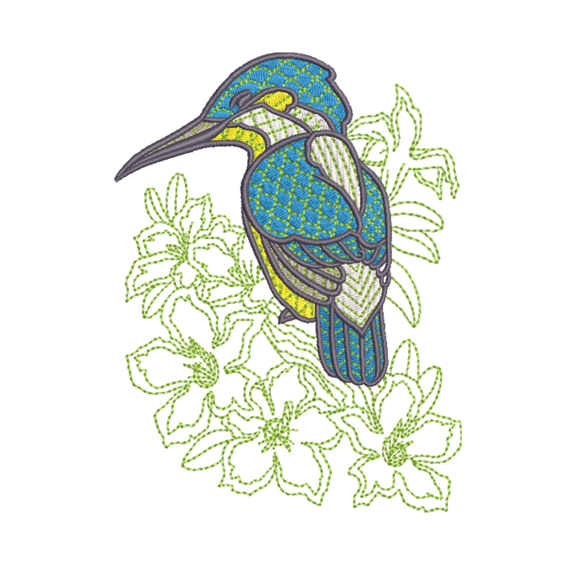 يتميز بتطريز Kingfisher Perch الجميل للحصول على مظهر مستوحى من الطبيعة.
