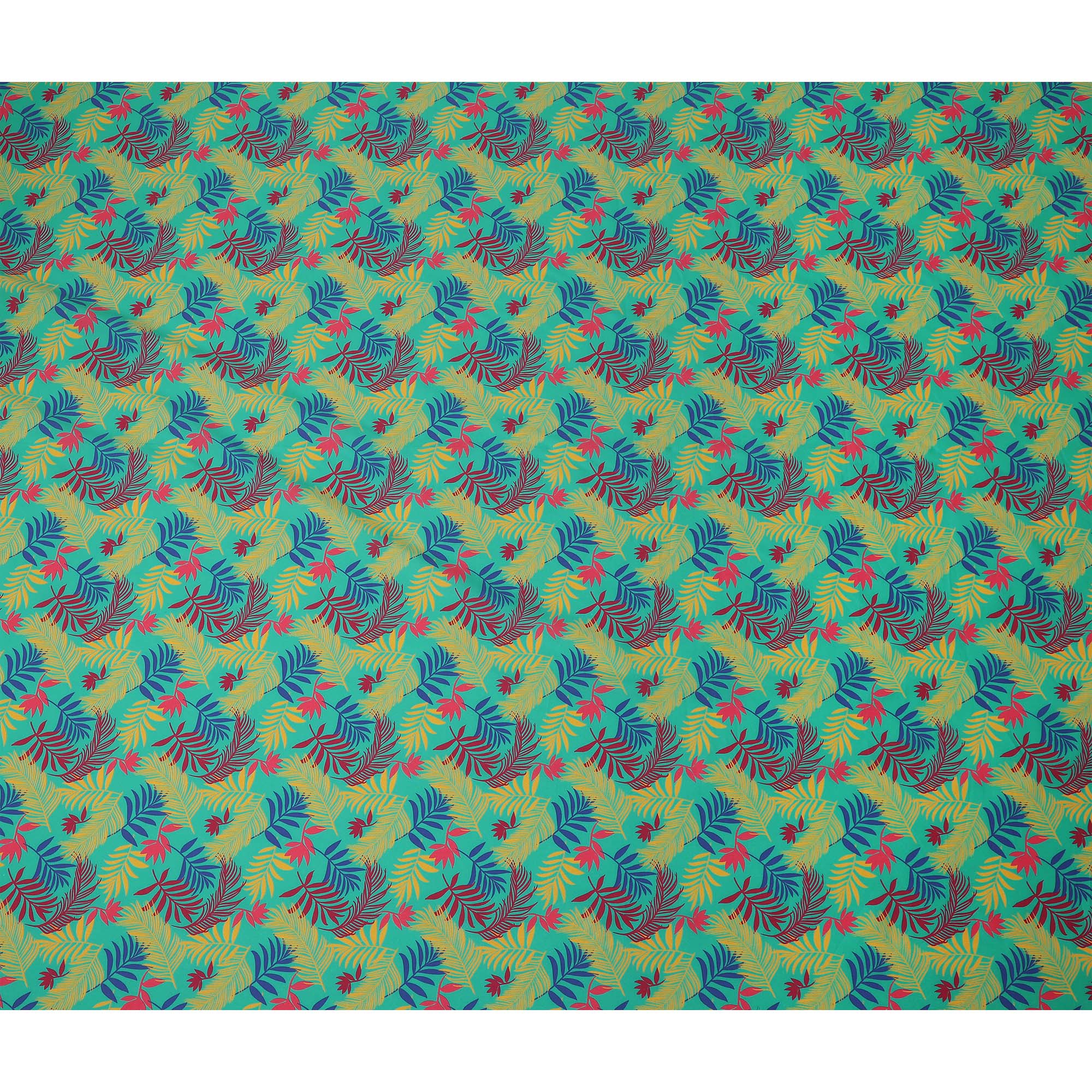 • أُوكَازيُون -10% Turquoise Green Tropical Leaf Printed Premium Spanish 100% Cotton Voile Fabric Soft Lightweight Breathable Apparel Craft Textile 150 Cms Wide, Made in Spain-D27502