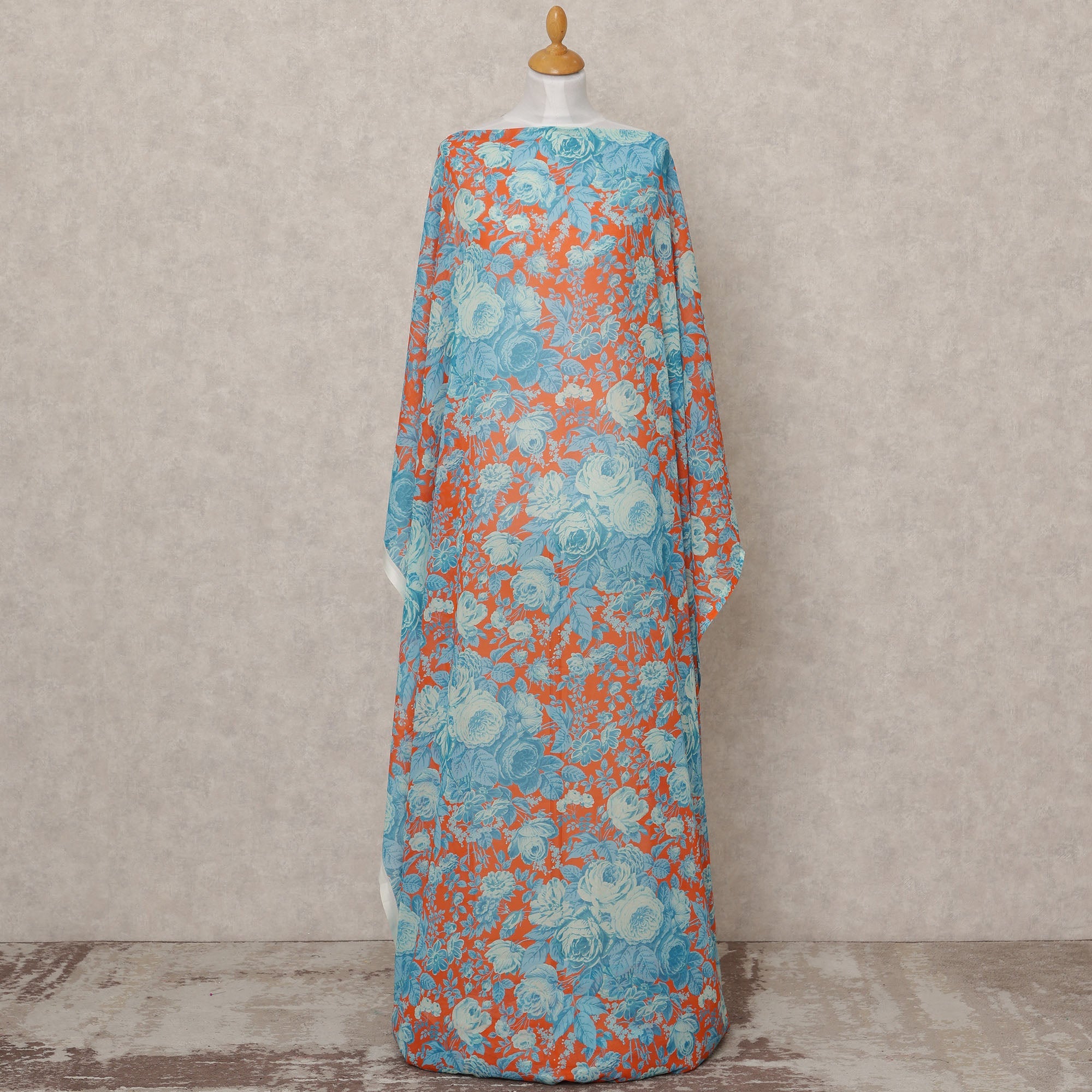 قماش ديراك تقليدي من القطن الصومالي، مزين بنقشة زهور فيروزية وبرتقالية، بطول 3.5 متر، وعرض 140 سم، صنع في إيطاليا - D24715