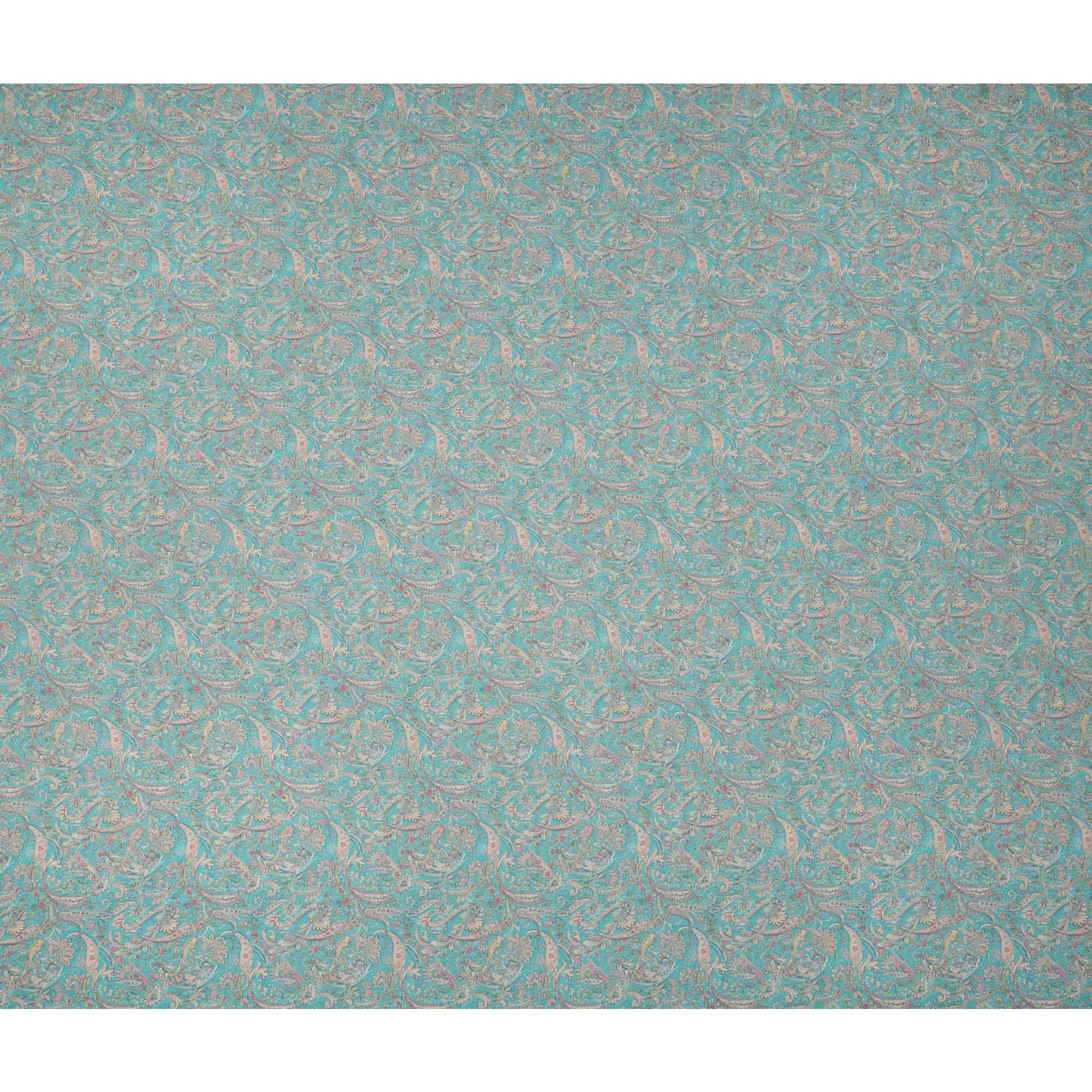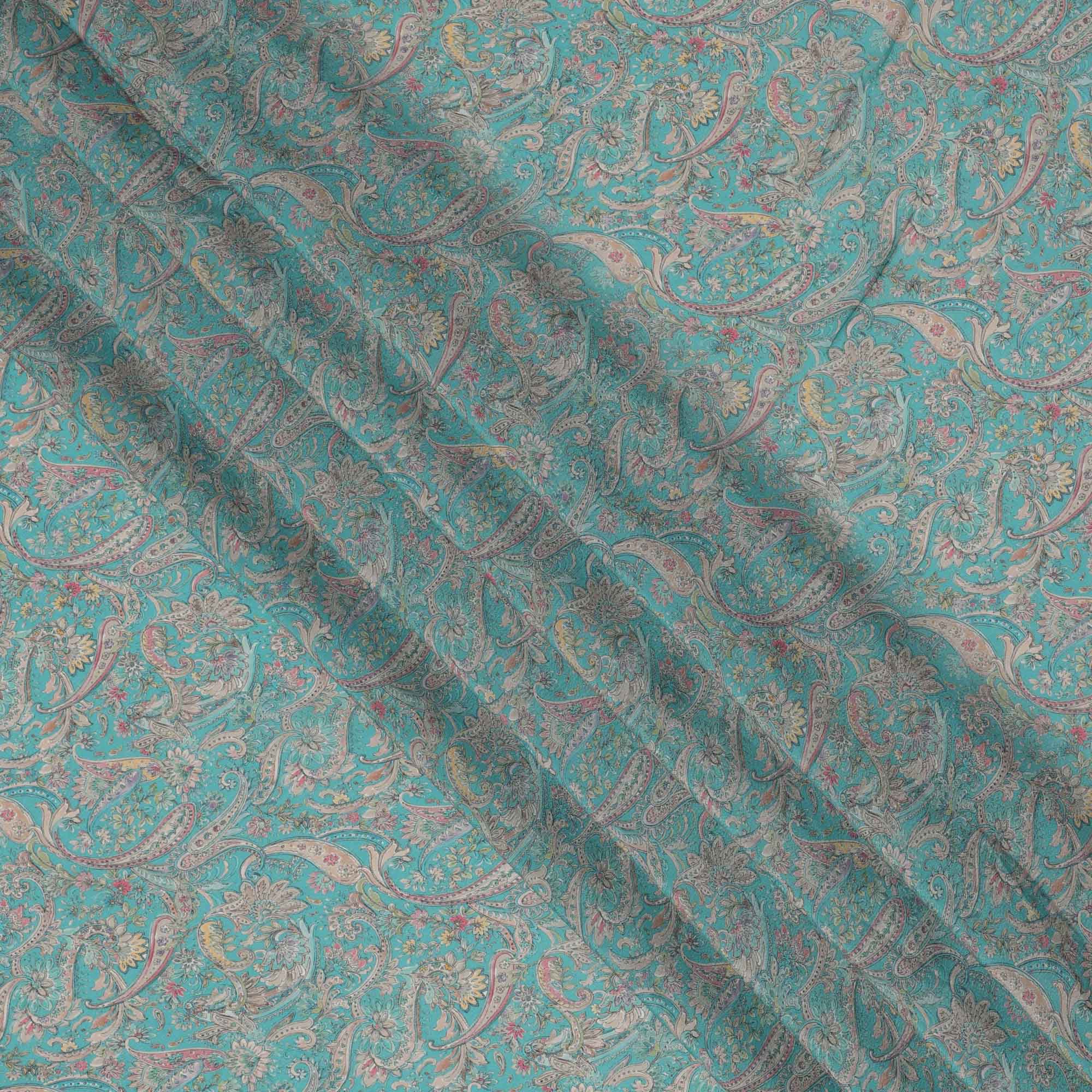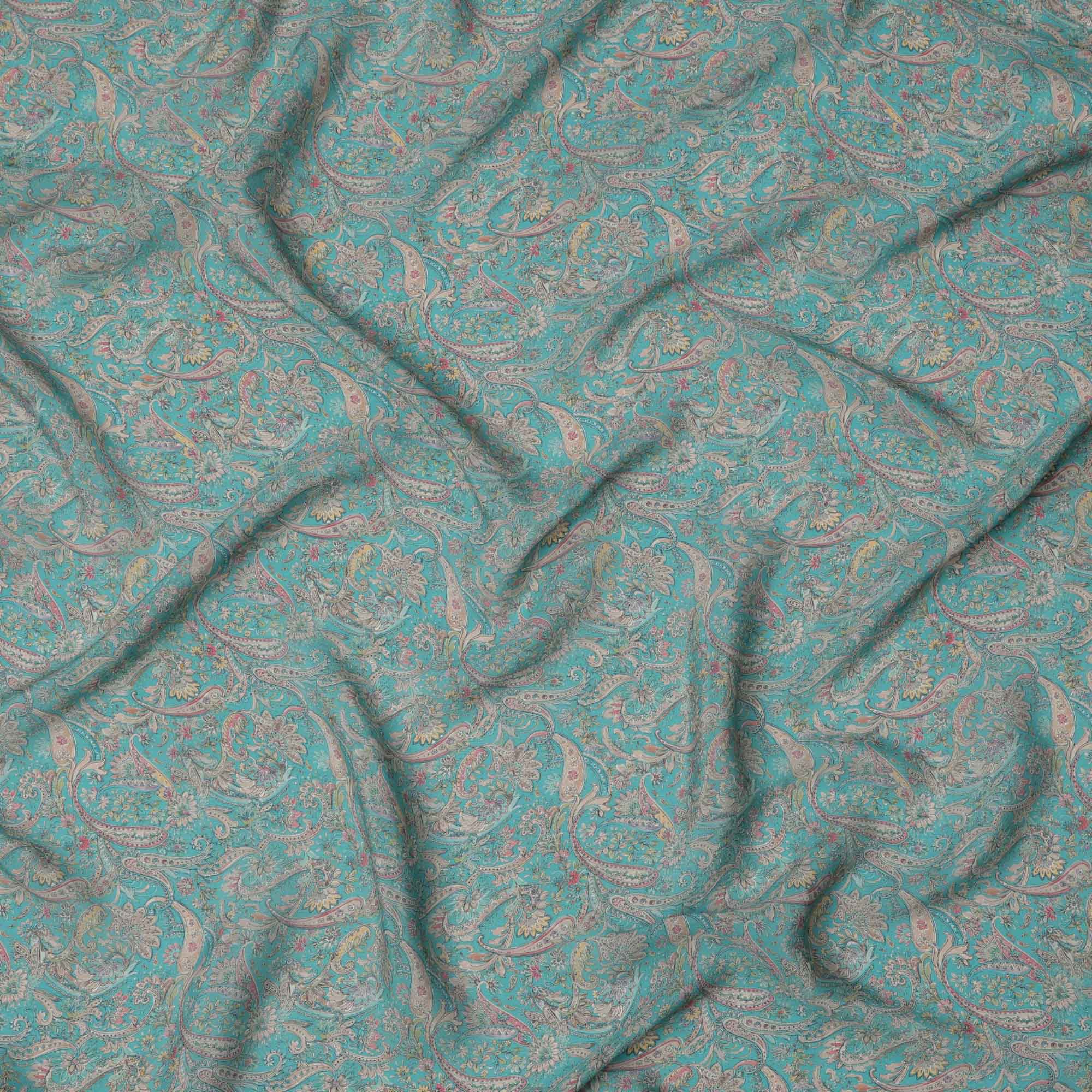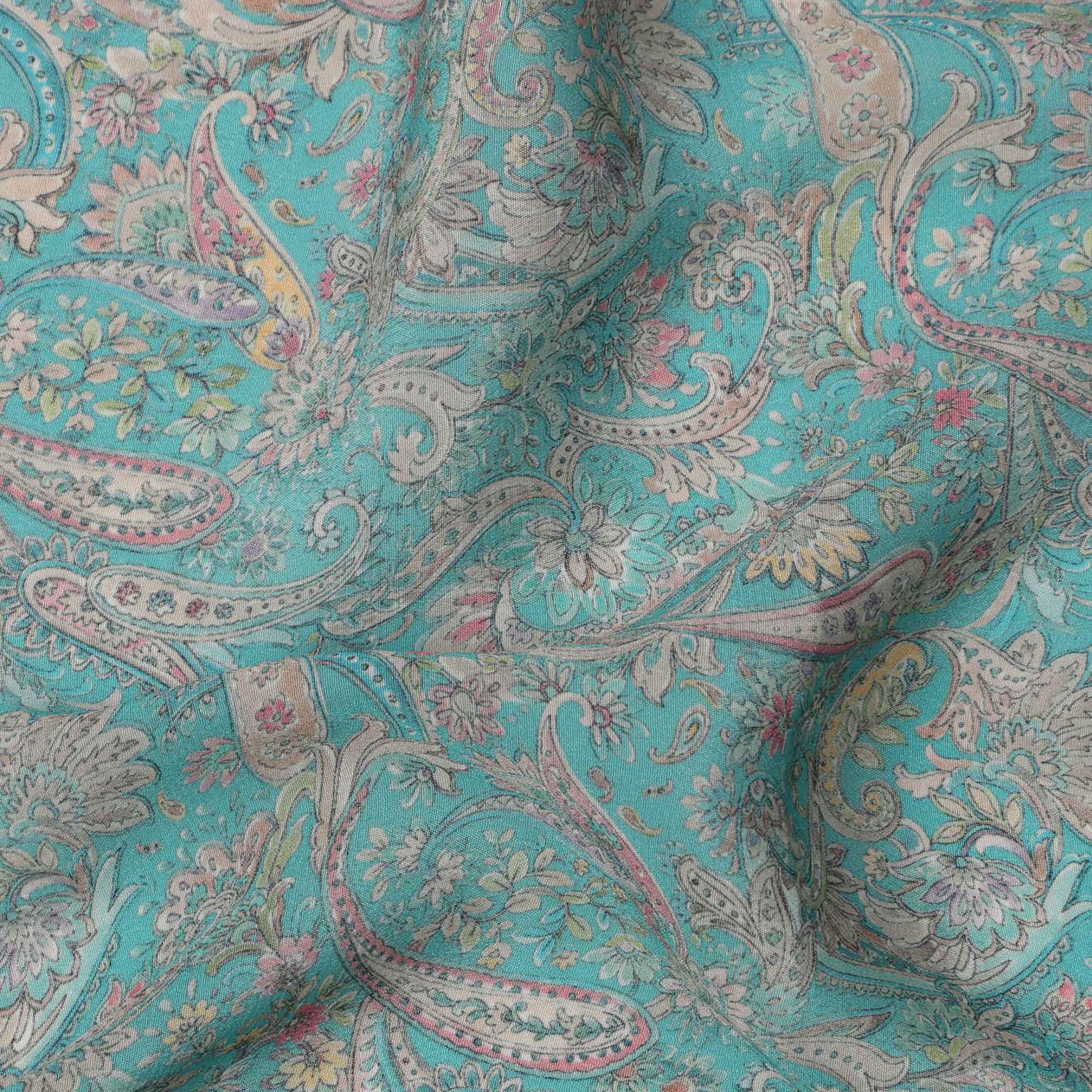 قماش كريب فيسكوز بنقشة بيزلي فيروزية، ملمس ناعم متدفق، عرض 110 سم، صنع في الهند - D23428