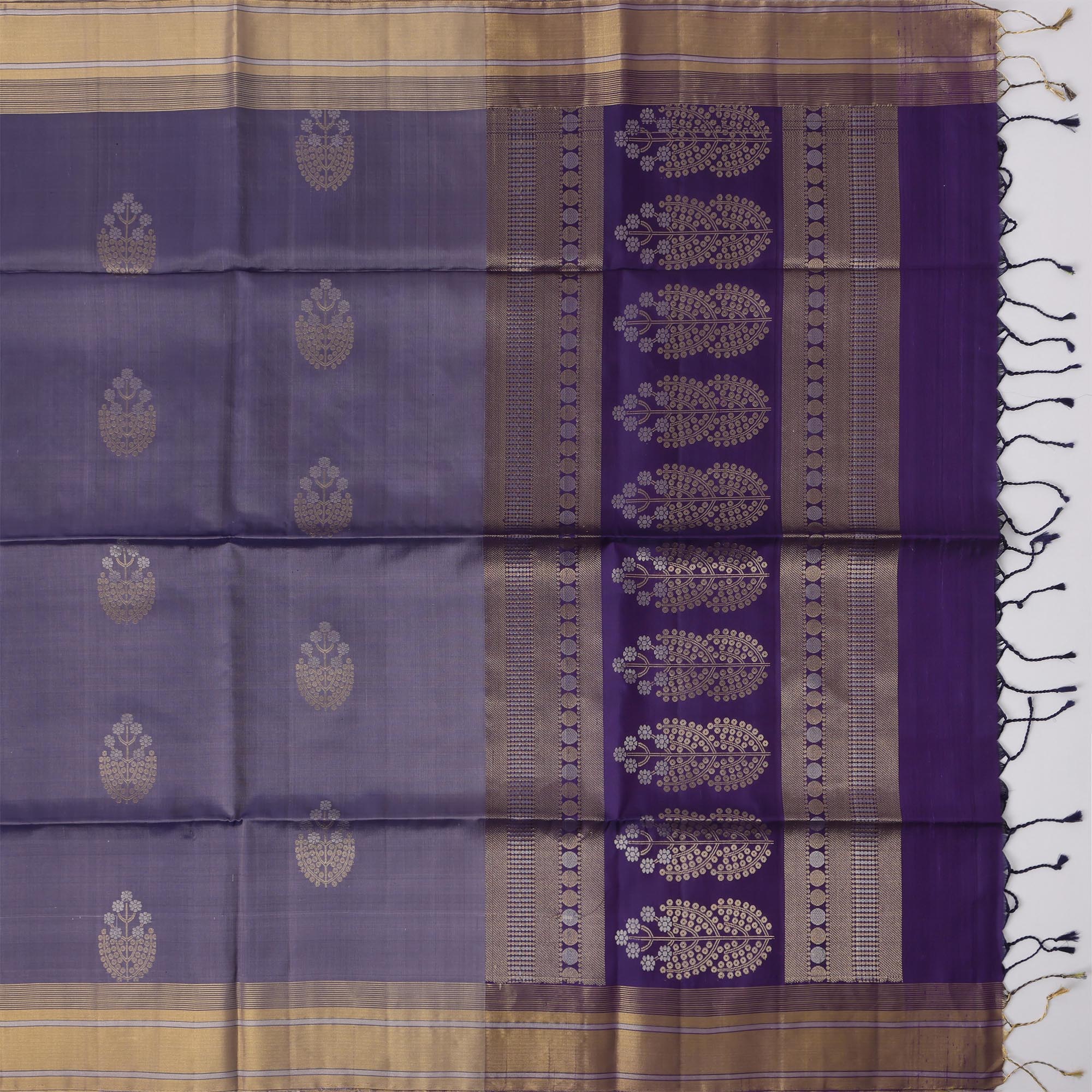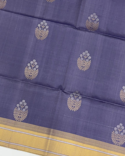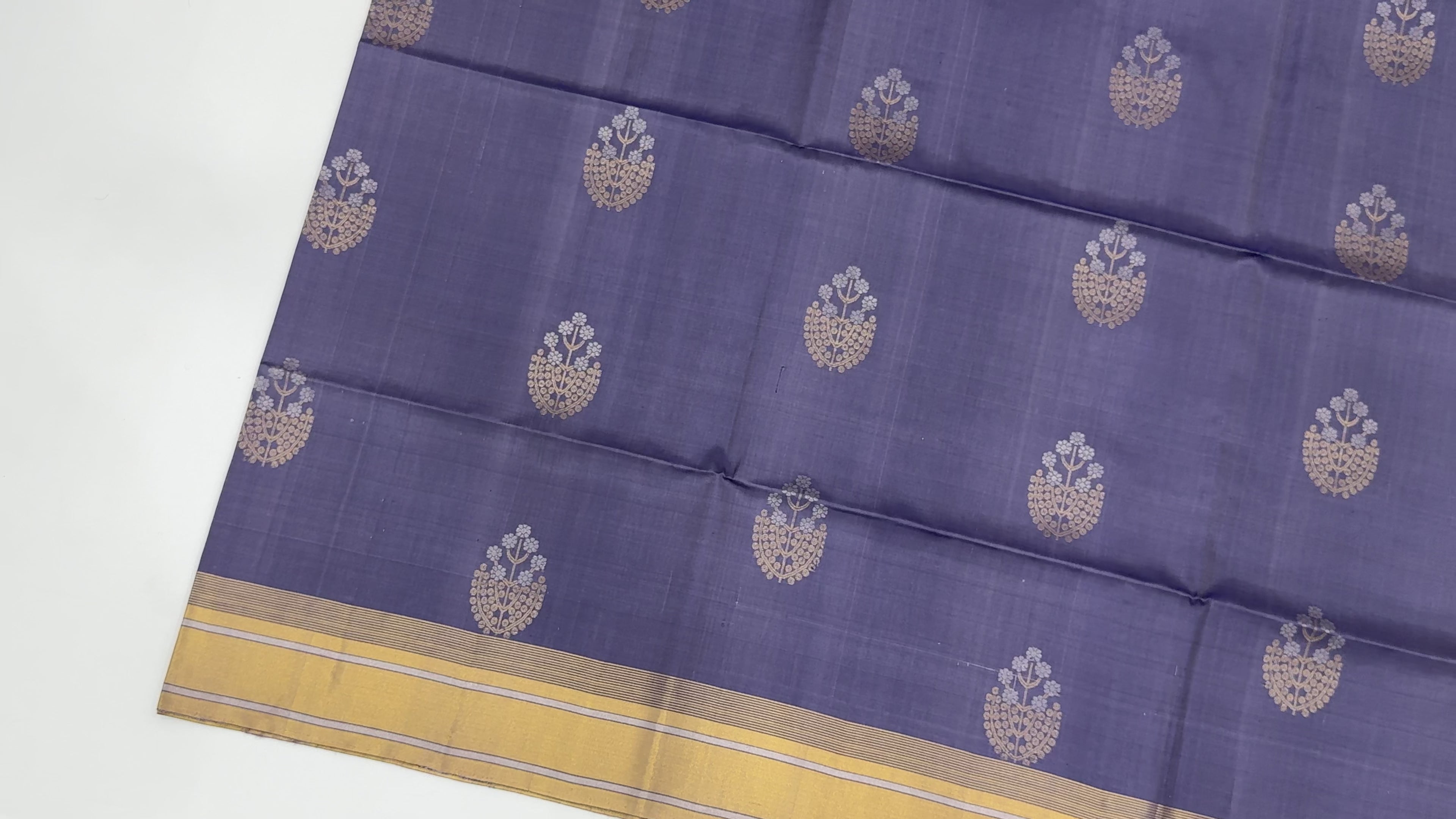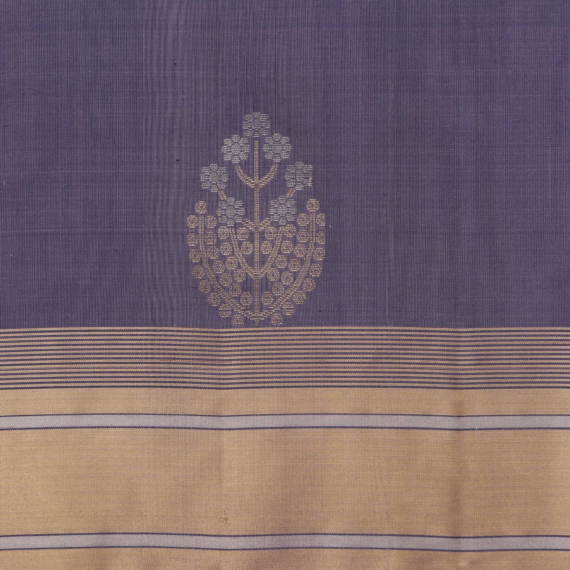 ساري بوتا زهري من الحرير الناعم بلون بنفسجي ذهبي مع حافة متباينة، بطول 5.5 متر مع قطعة بلوزة، من أصل هندي - D22682