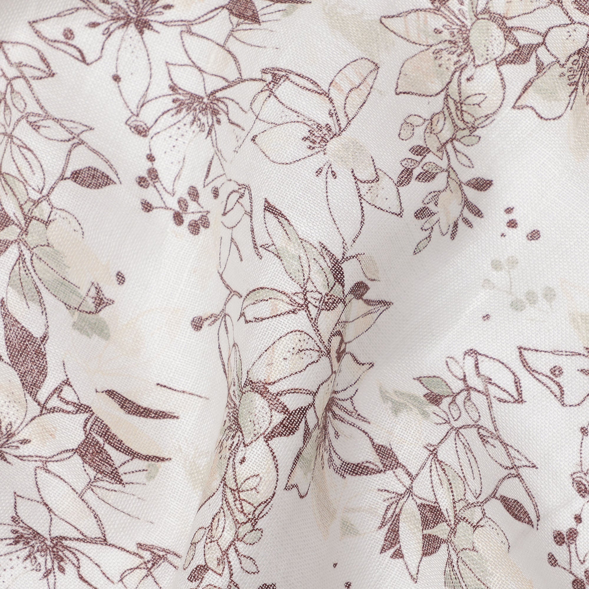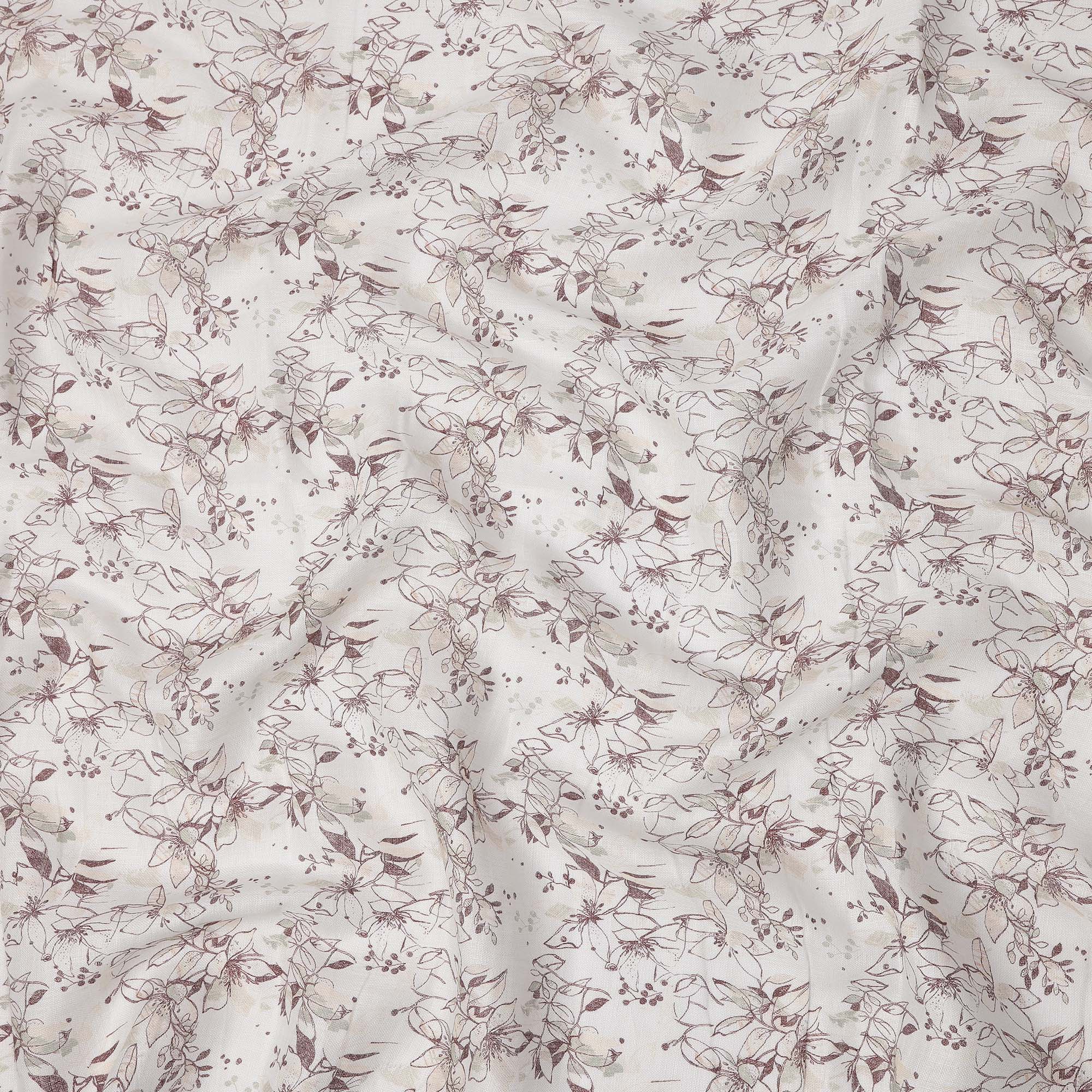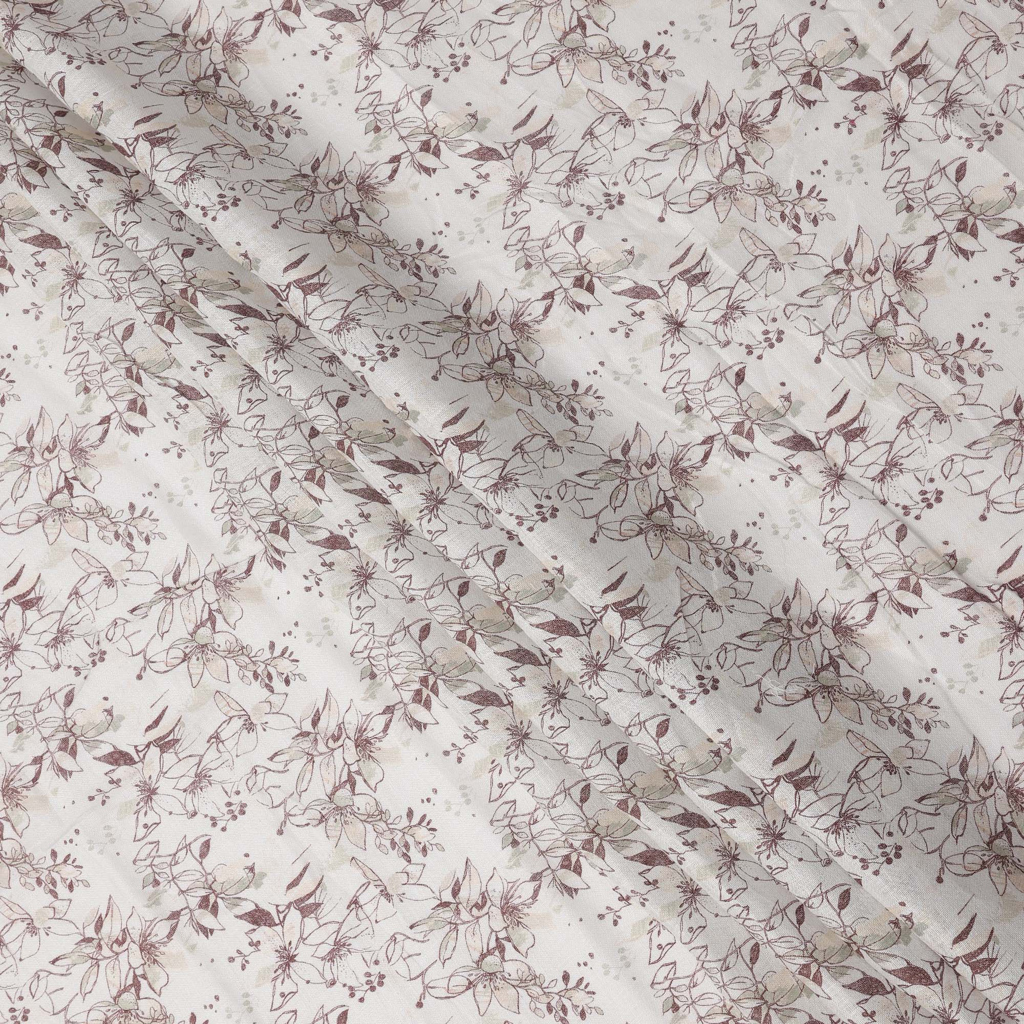 قماش كتان قطني مخلوط بطبعة أوراق بيضاء وبنية، عرض 110 سم، الهند - D25174