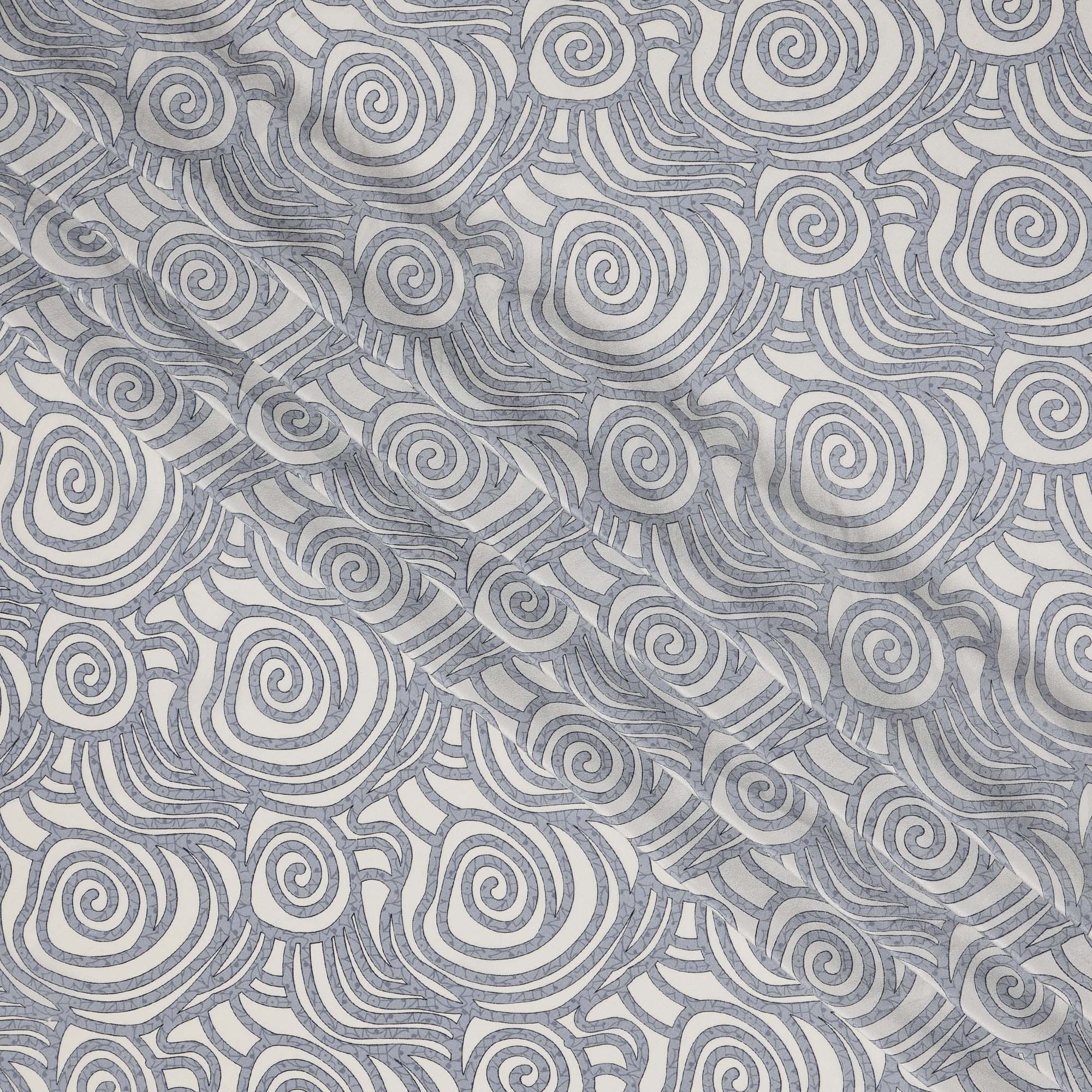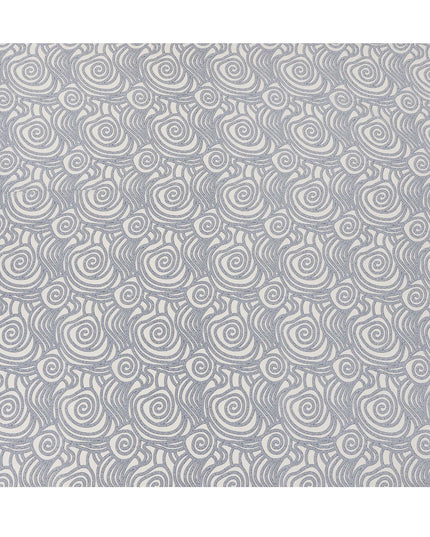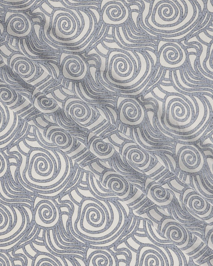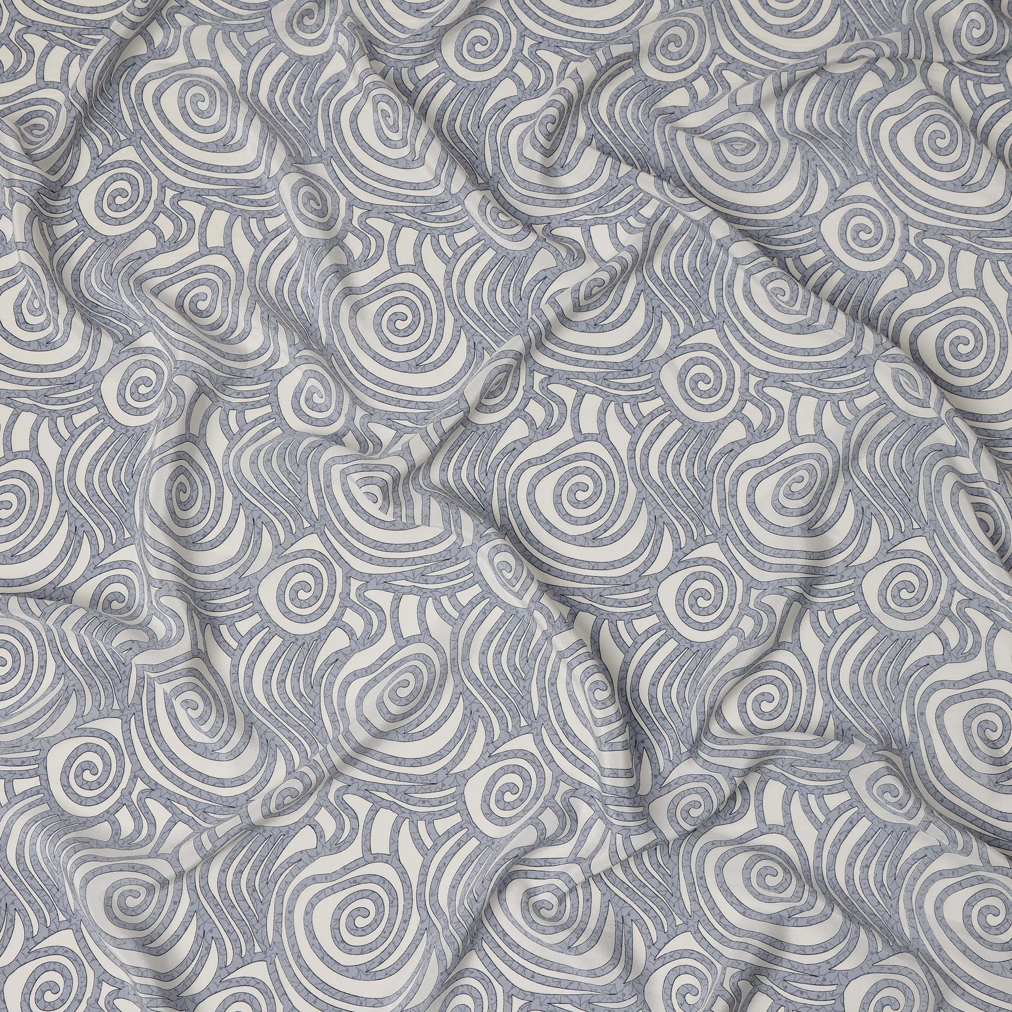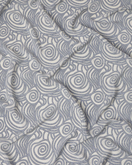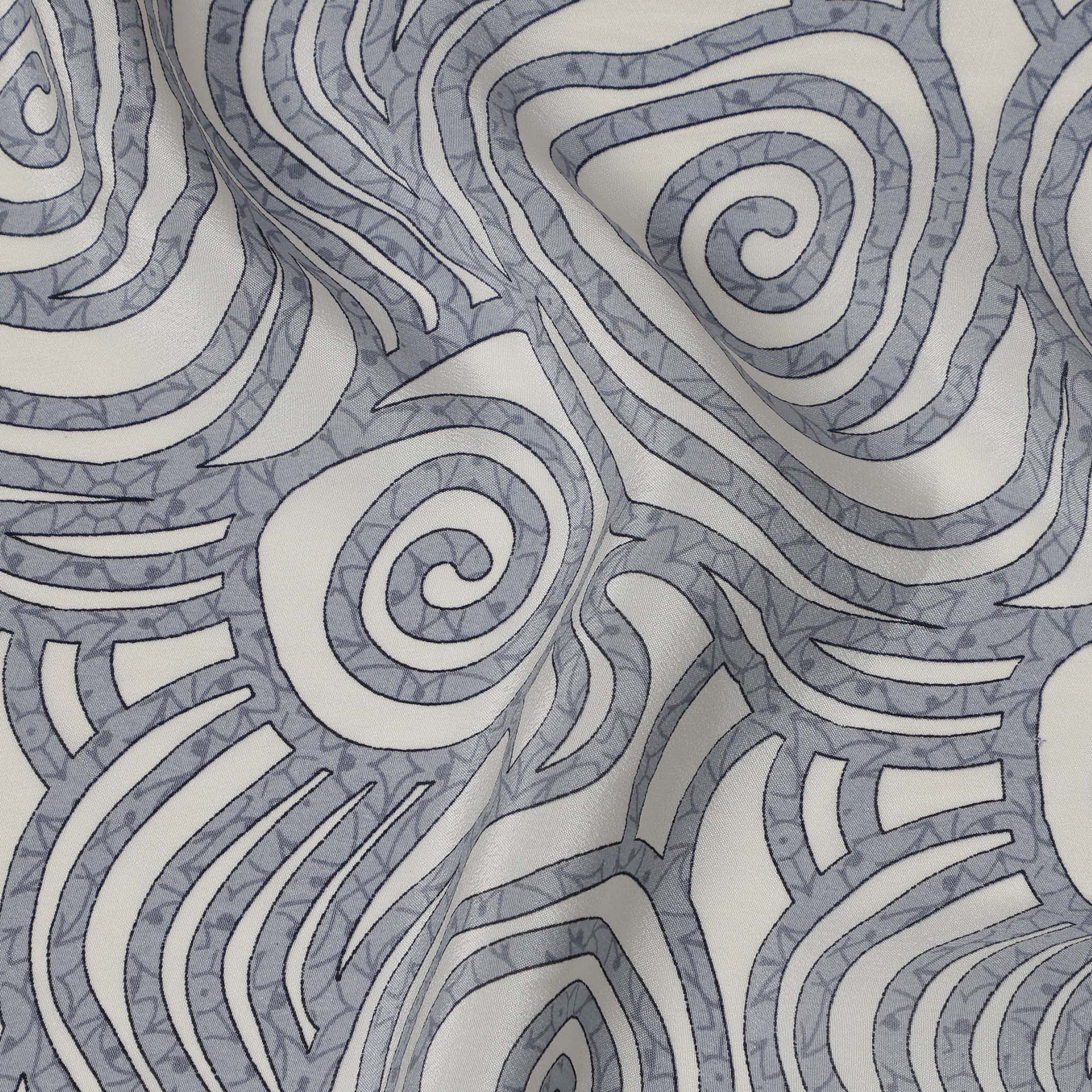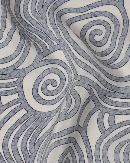 قماش كريب حريري خالص بطبعة متاهة حلزونية باللونين الأبيض والرمادي، عرض 110 سم، صنع في الهند - D23176