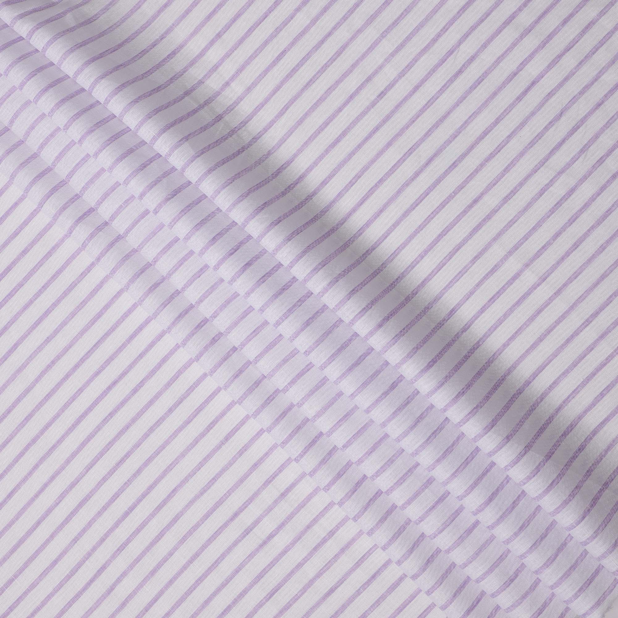 قماش كتان نقي فاخر مطبوع مخطط باللونين الأبيض والأرجواني، 150 سم، الهند - D25160