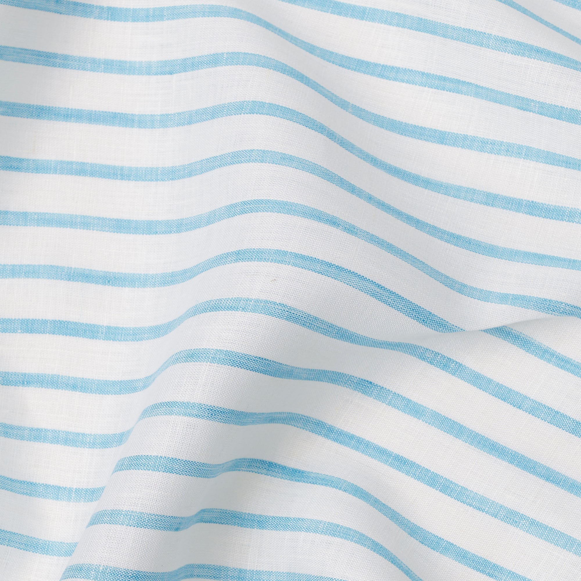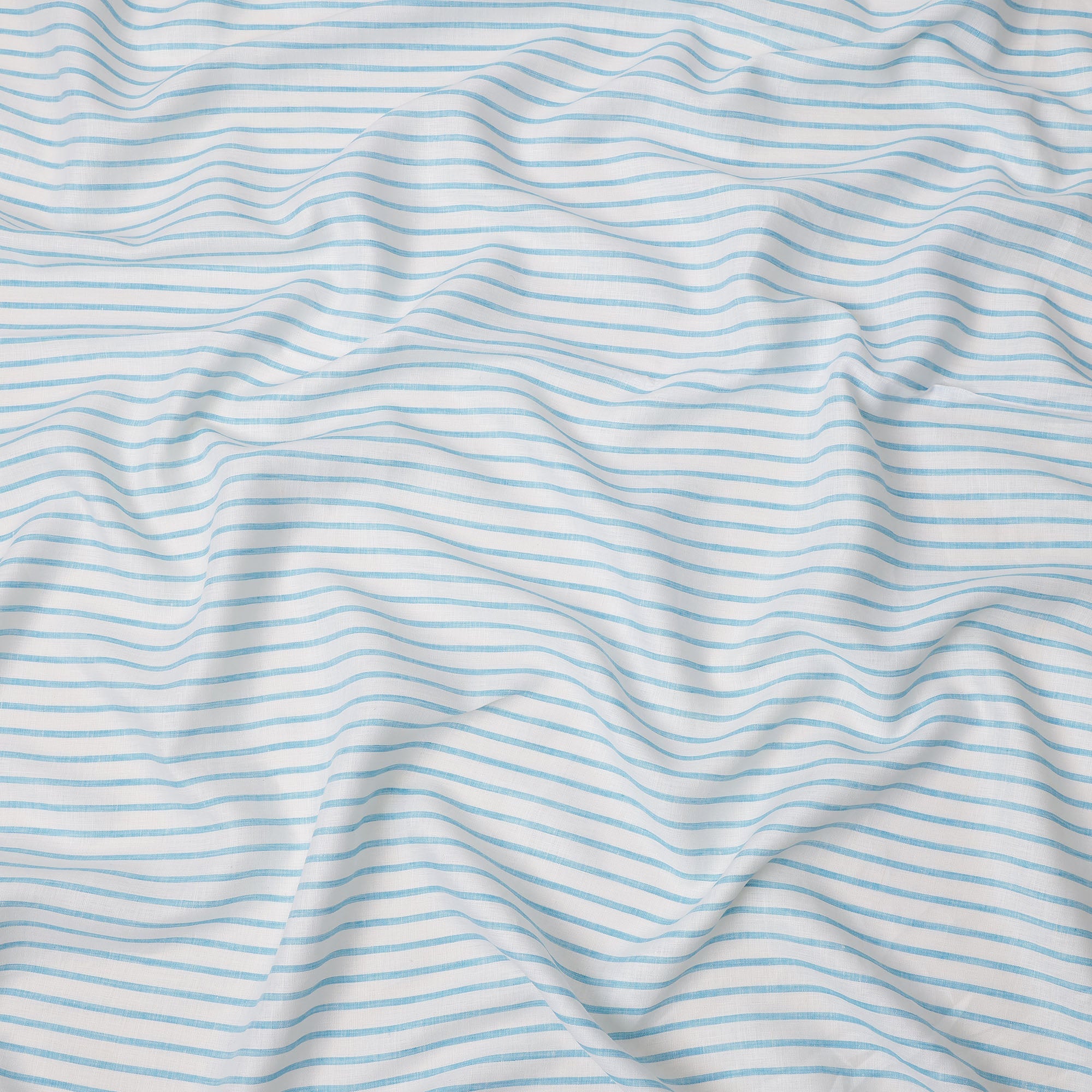 قماش كتان نقي فاخر مطبوع مخطط باللونين الأبيض والأزرق السماوي، 150 سم، الهند - D25161