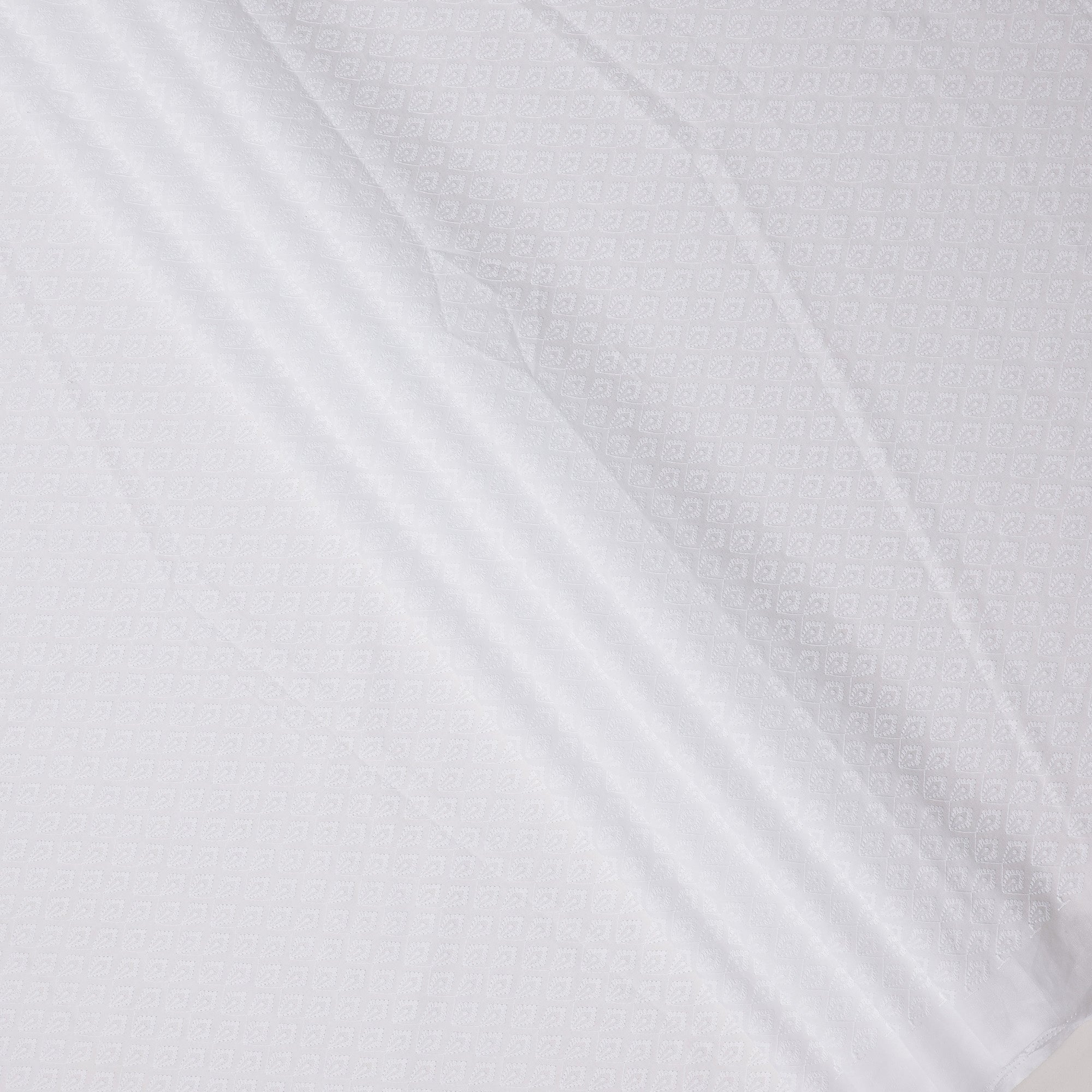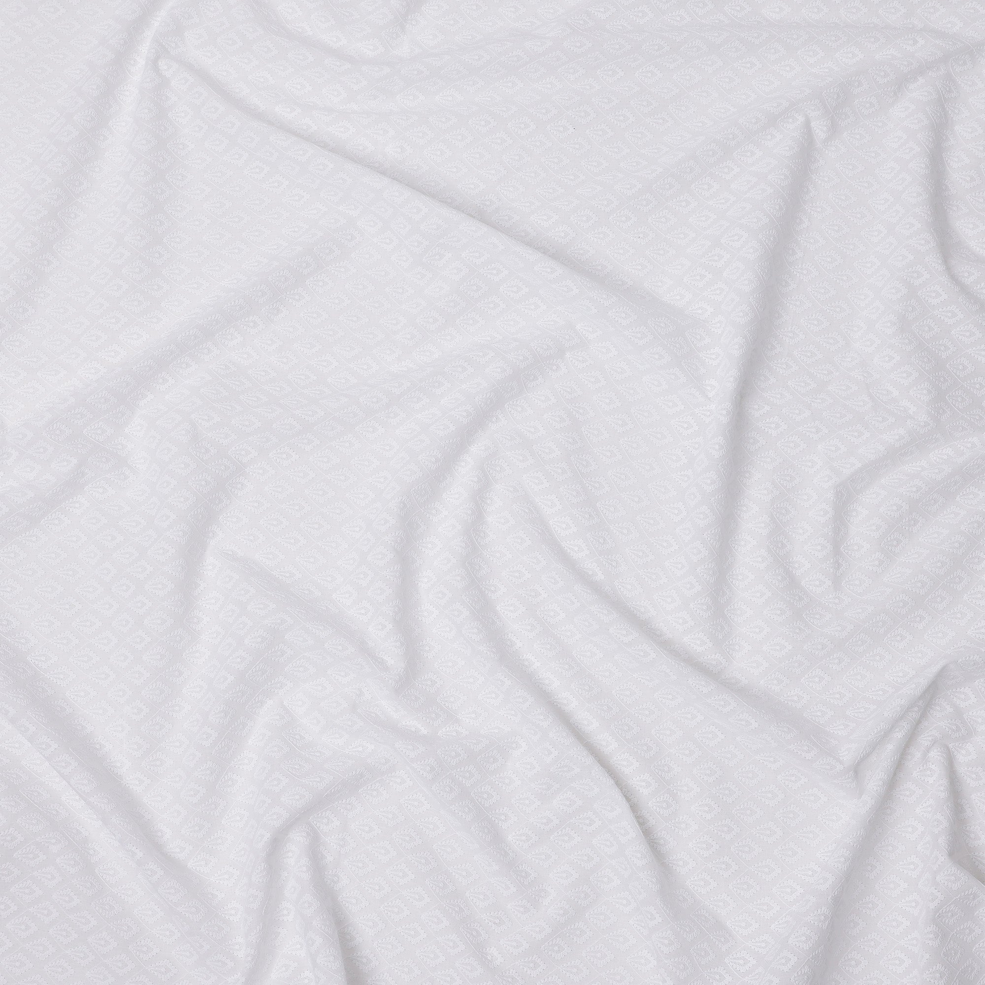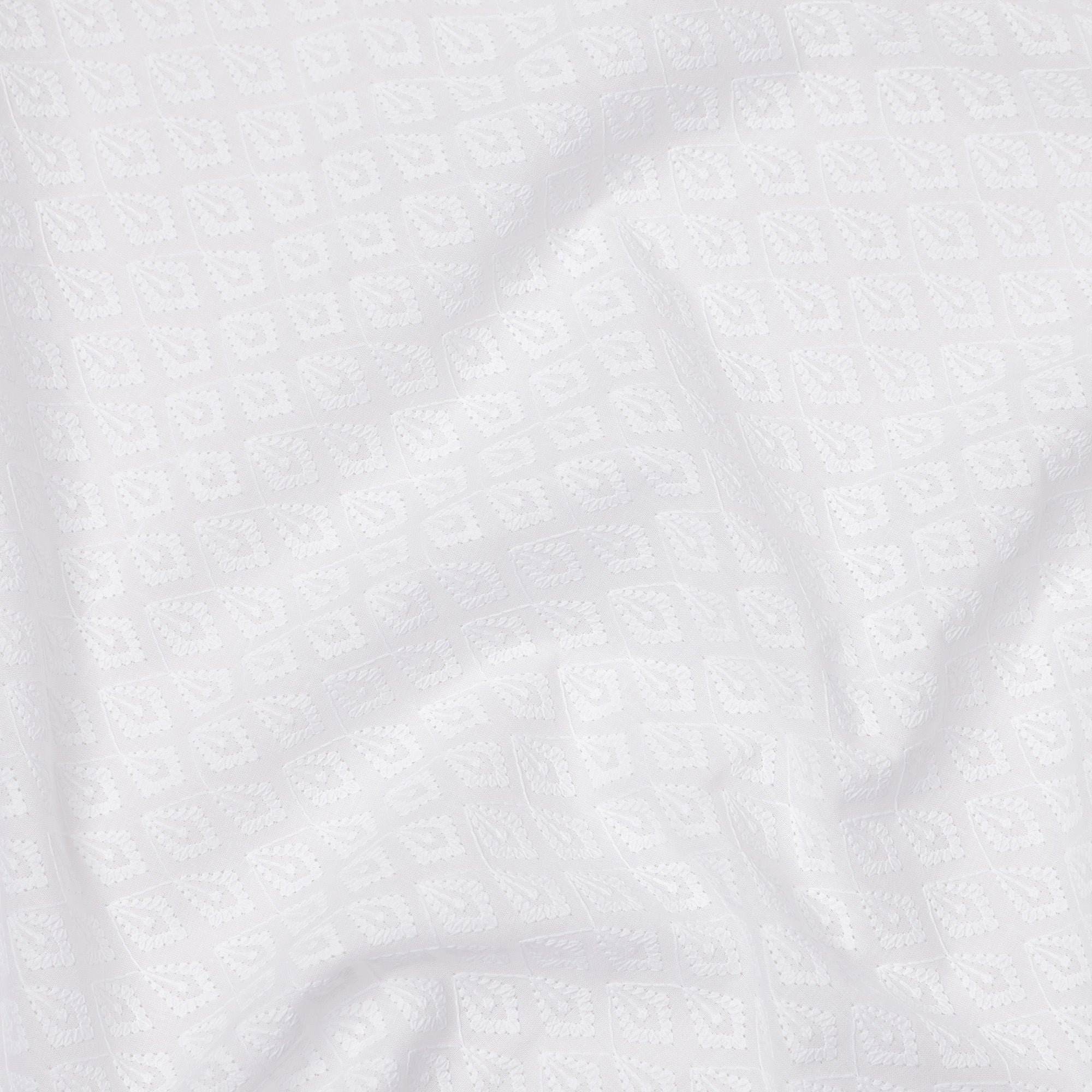 قماش فوال قطني مطرز بنمط أوراق الشجر، قاعدة بيضاء، تصميم هندسي رقيق، عرض 110 سم، صنع في الهند - D23798