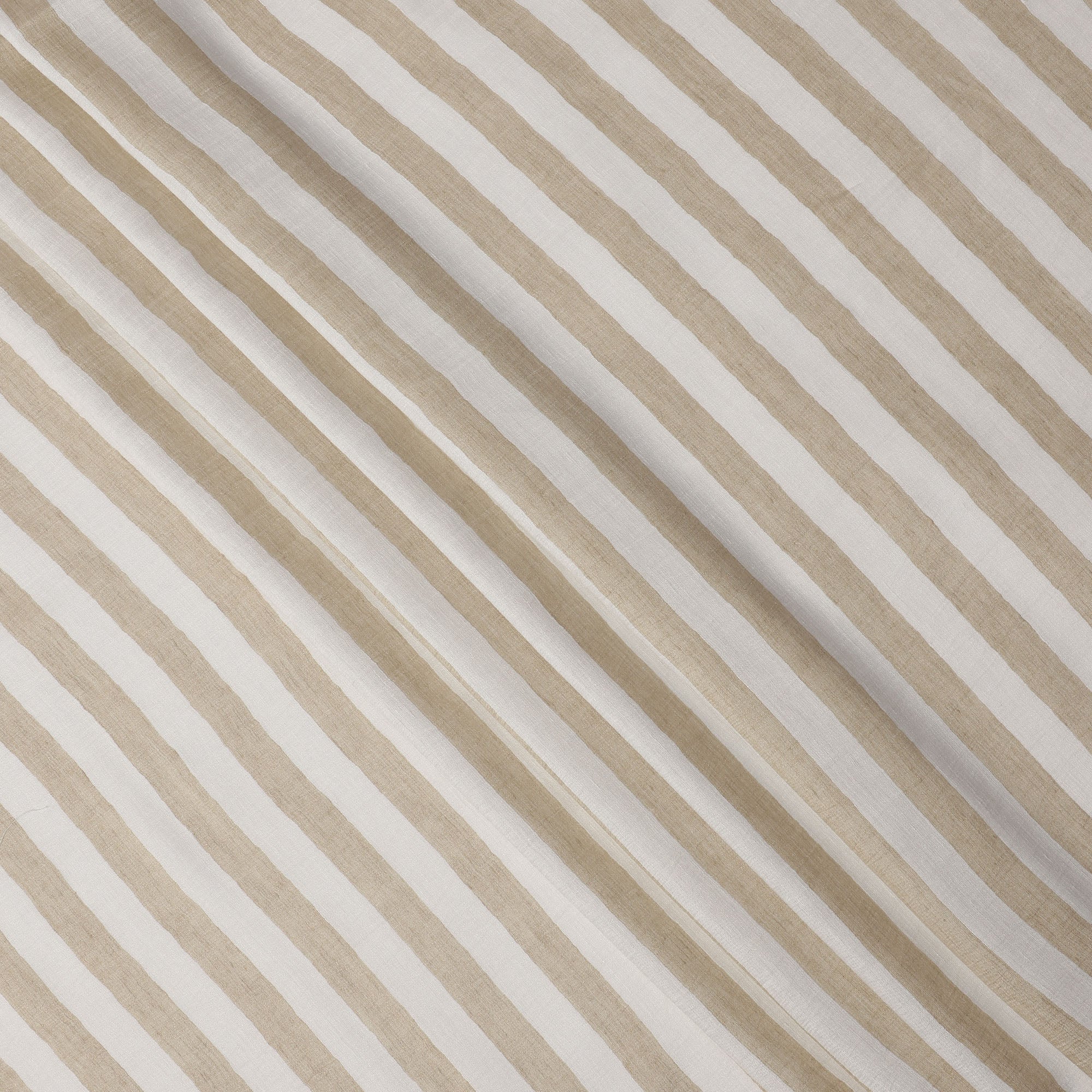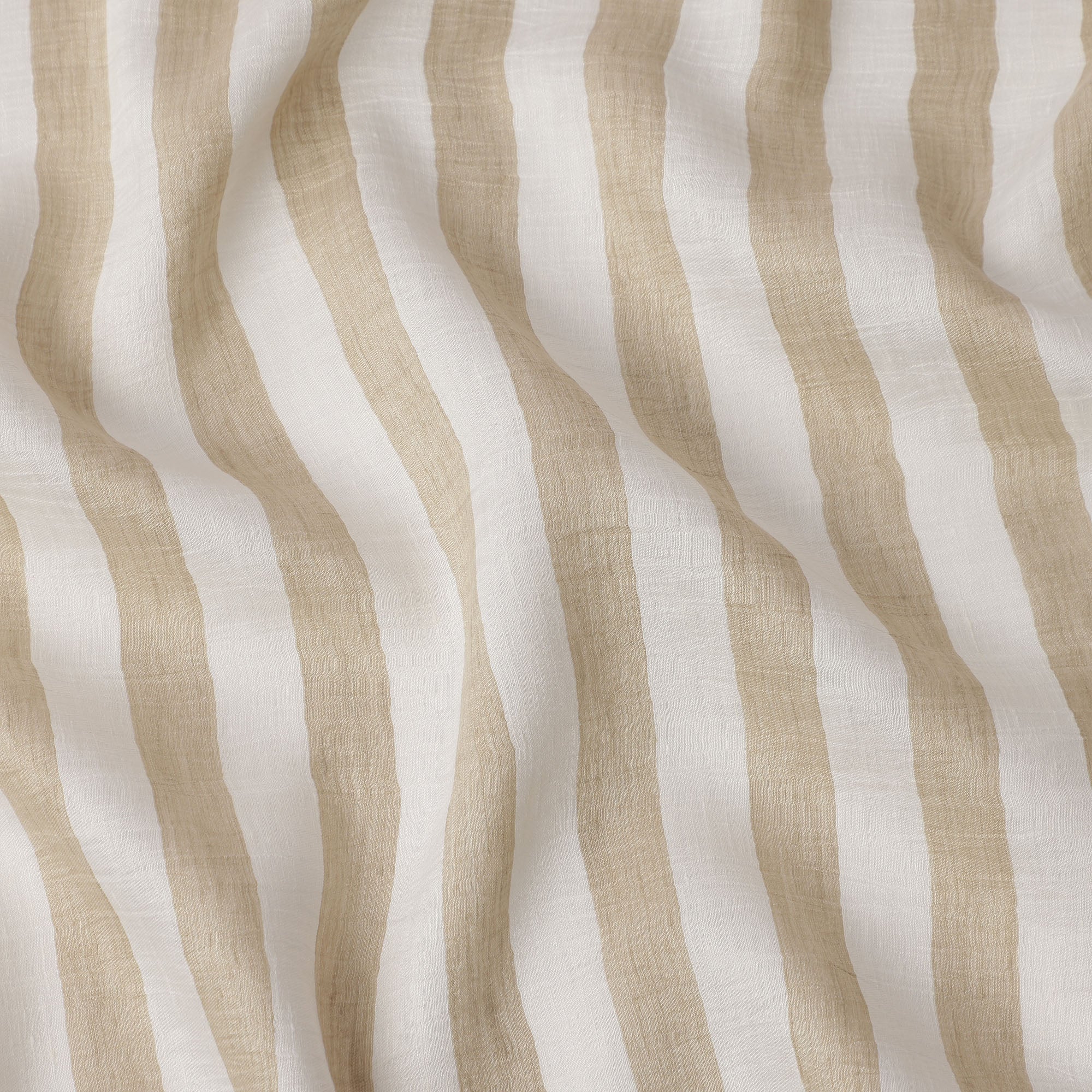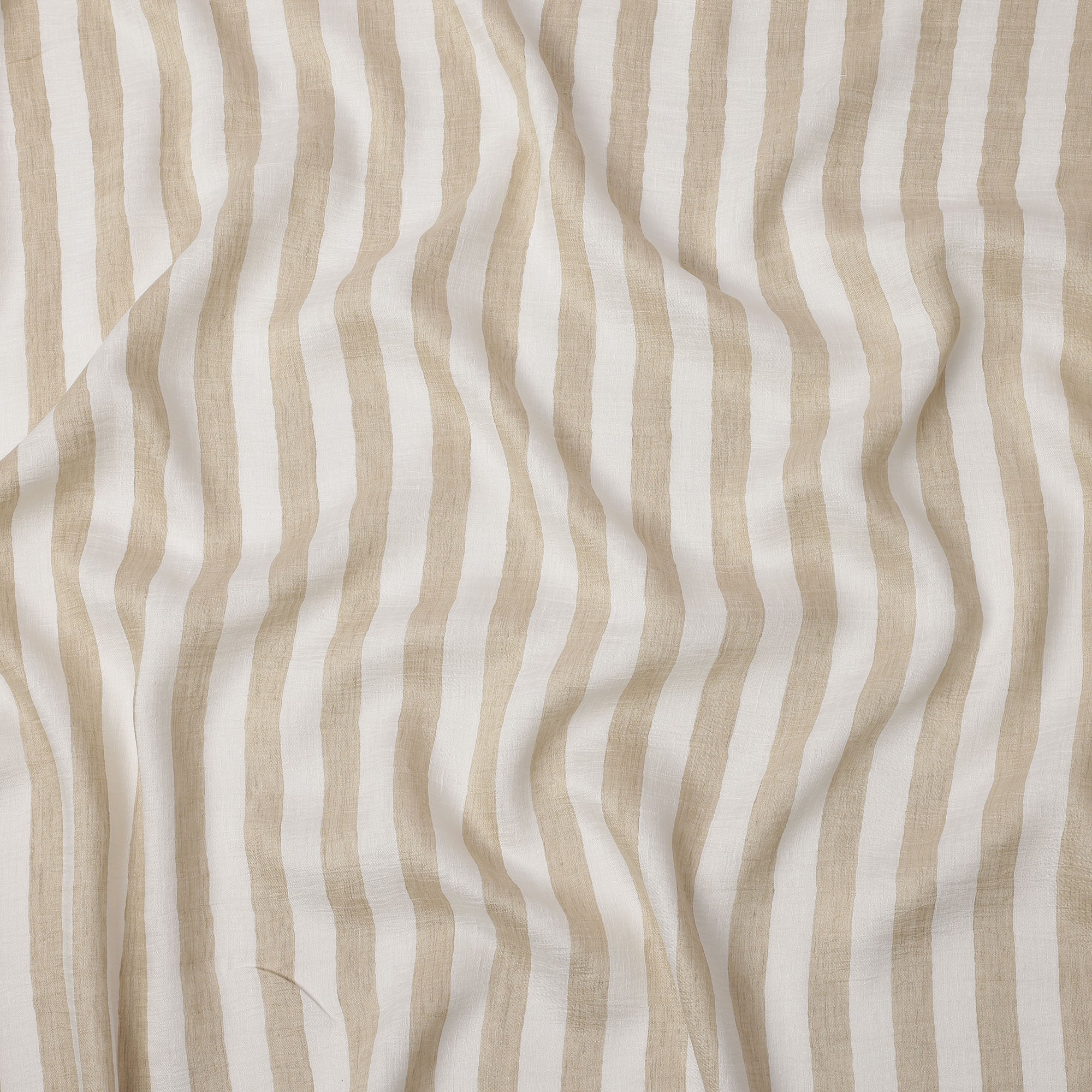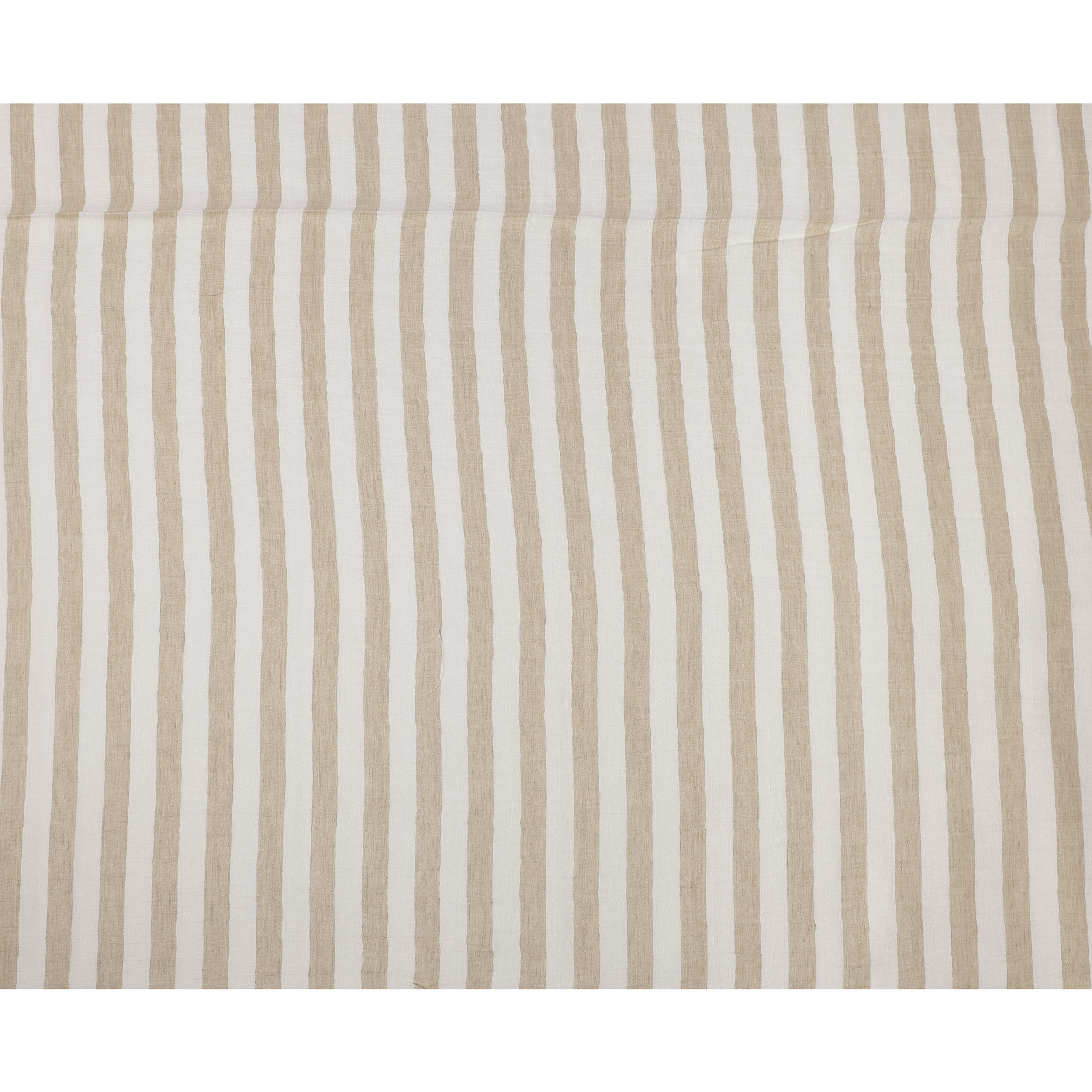 قماش كتان إيطالي فاخر بتصميم مخطط باللون الأبيض والبيج، 150 سم، إيطاليا - D25411