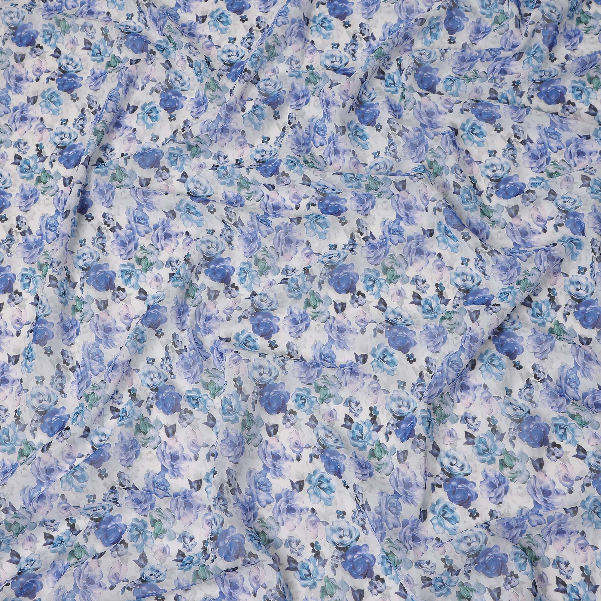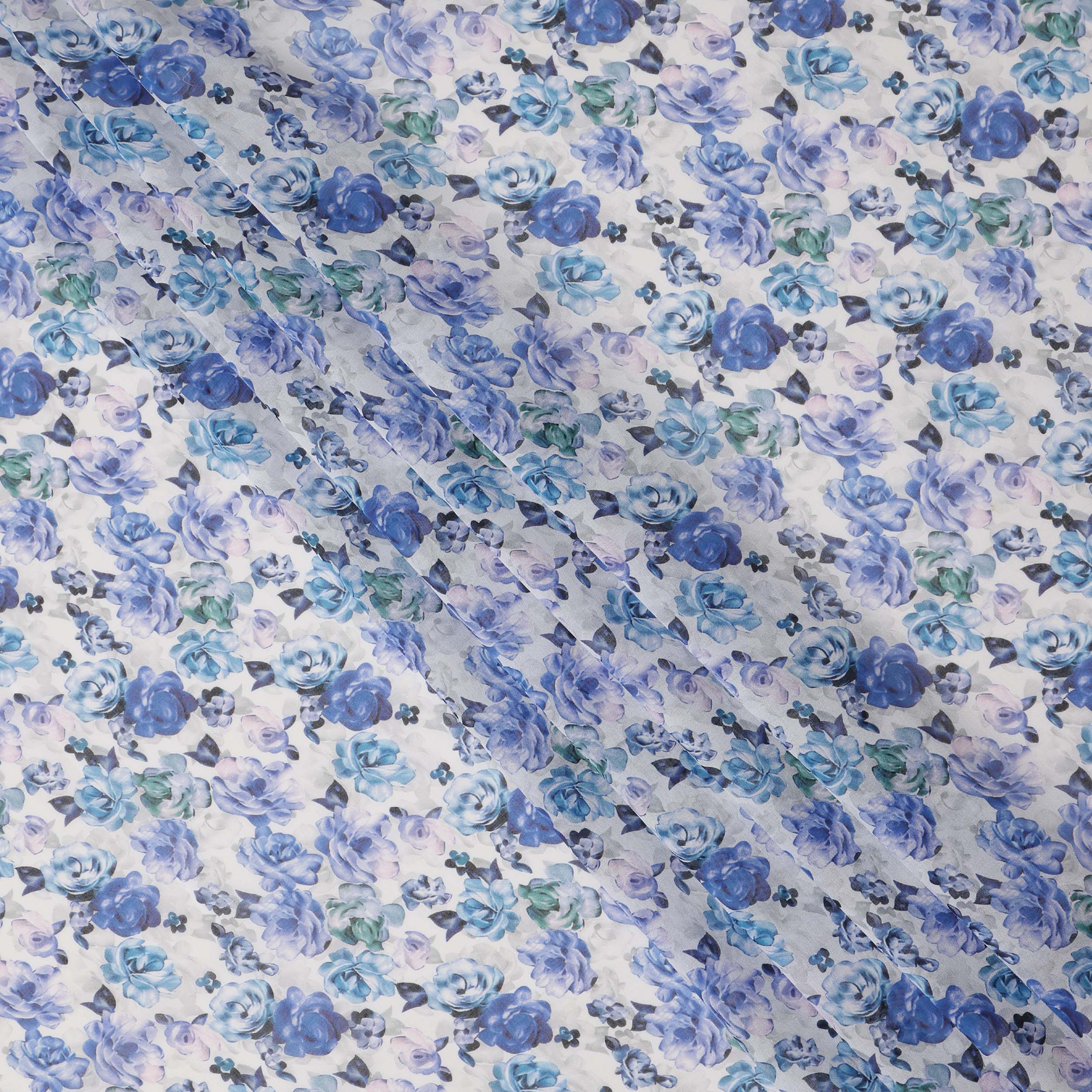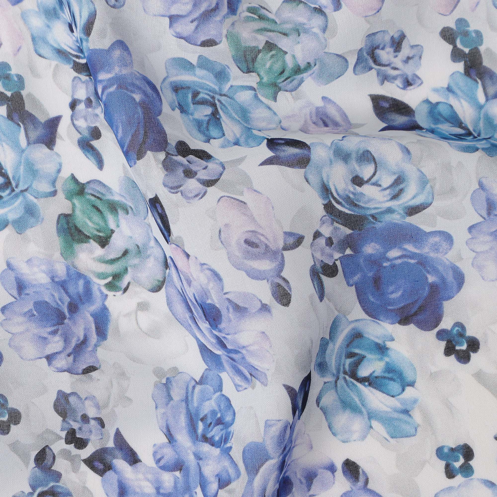 • أُوكَازيُون -10% White Blue Floral Traditional Sudanese Thobe Pure Cotton Voile 4.5 Mtrs Width 140 Cms India-D27803