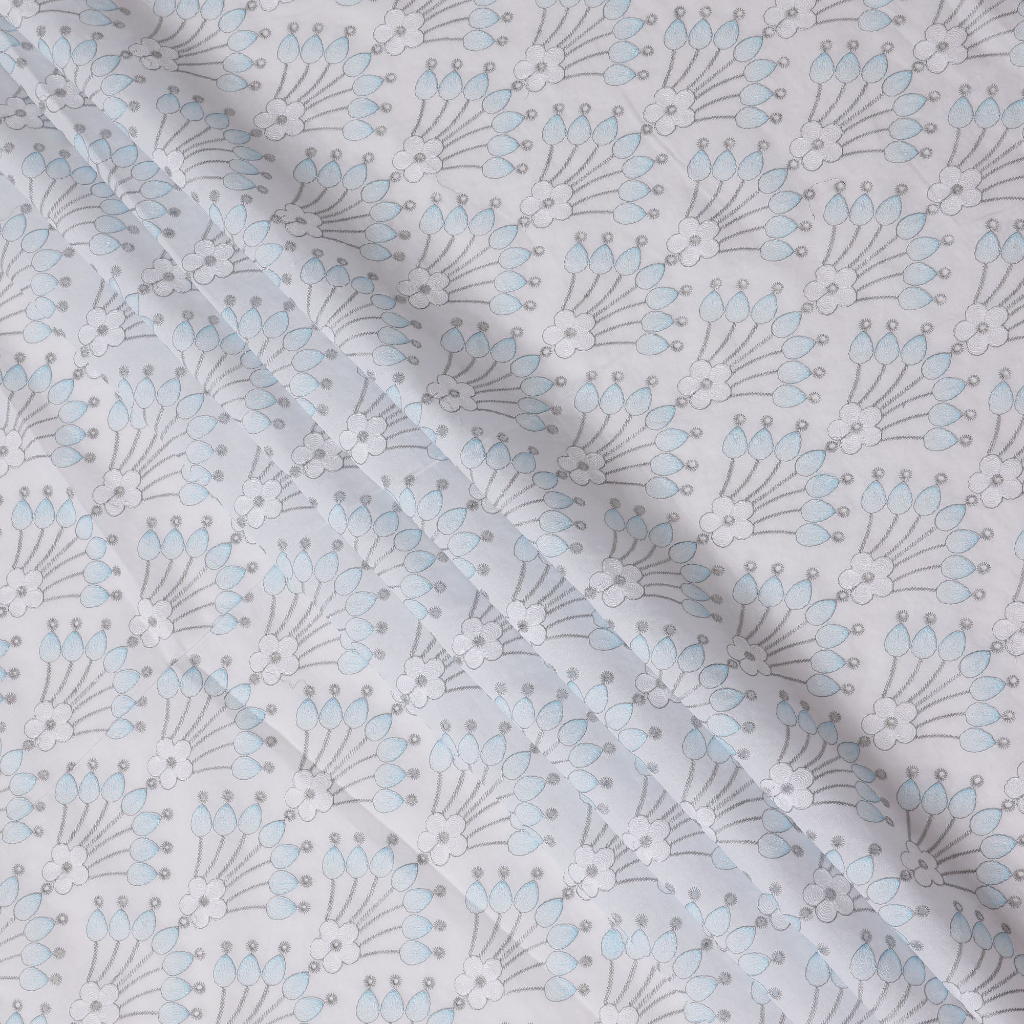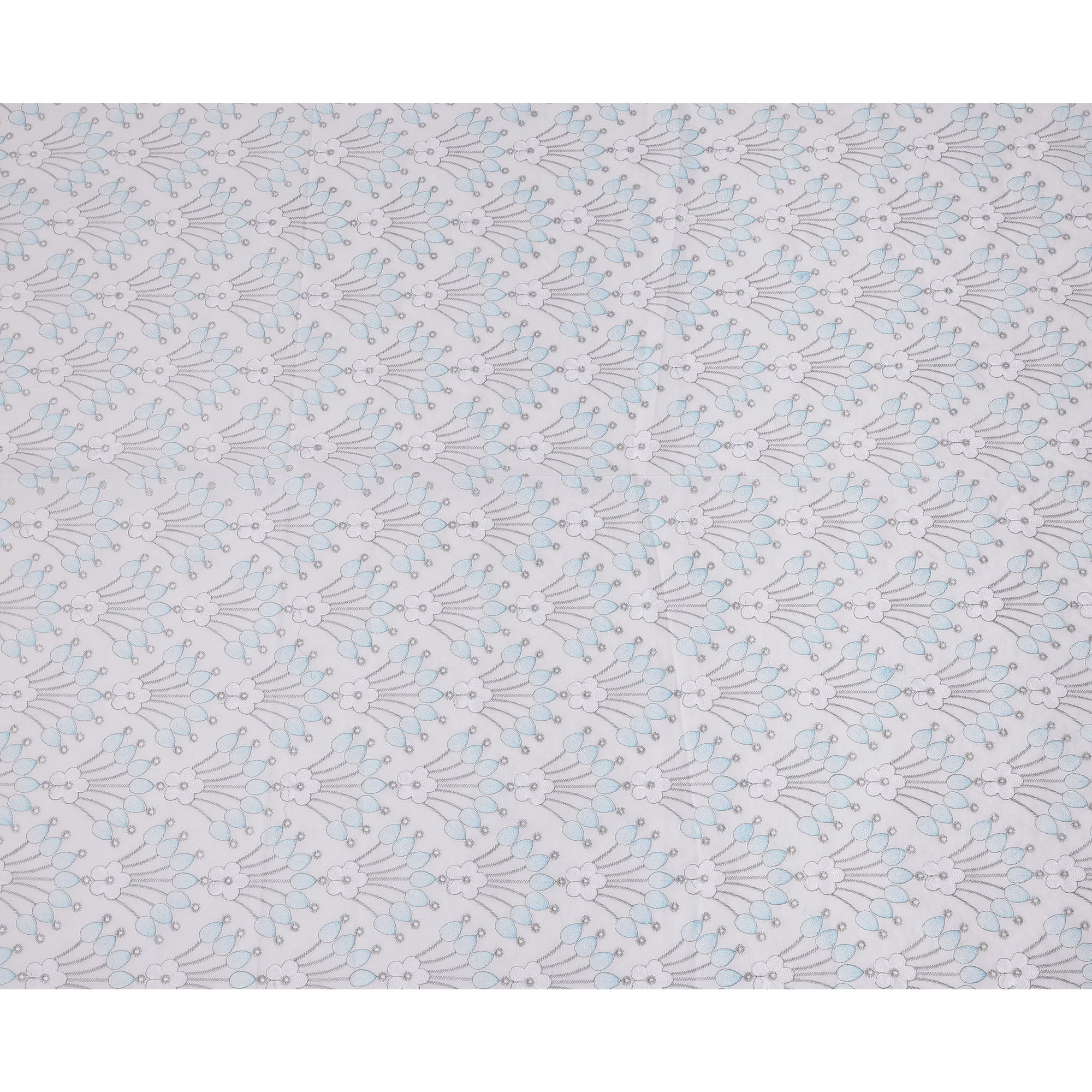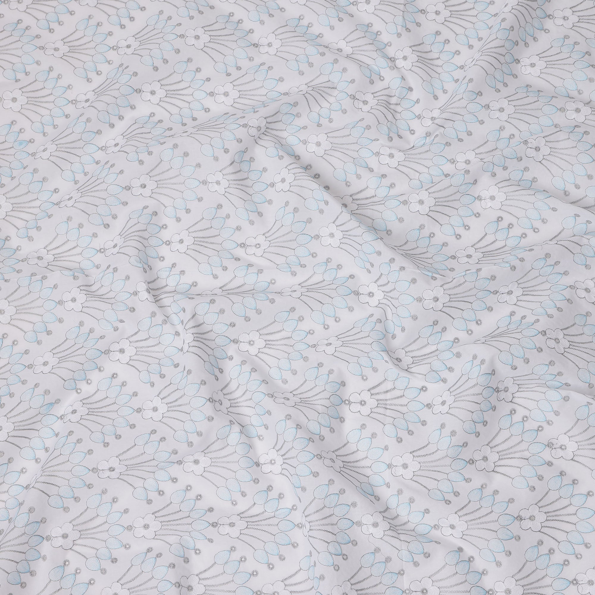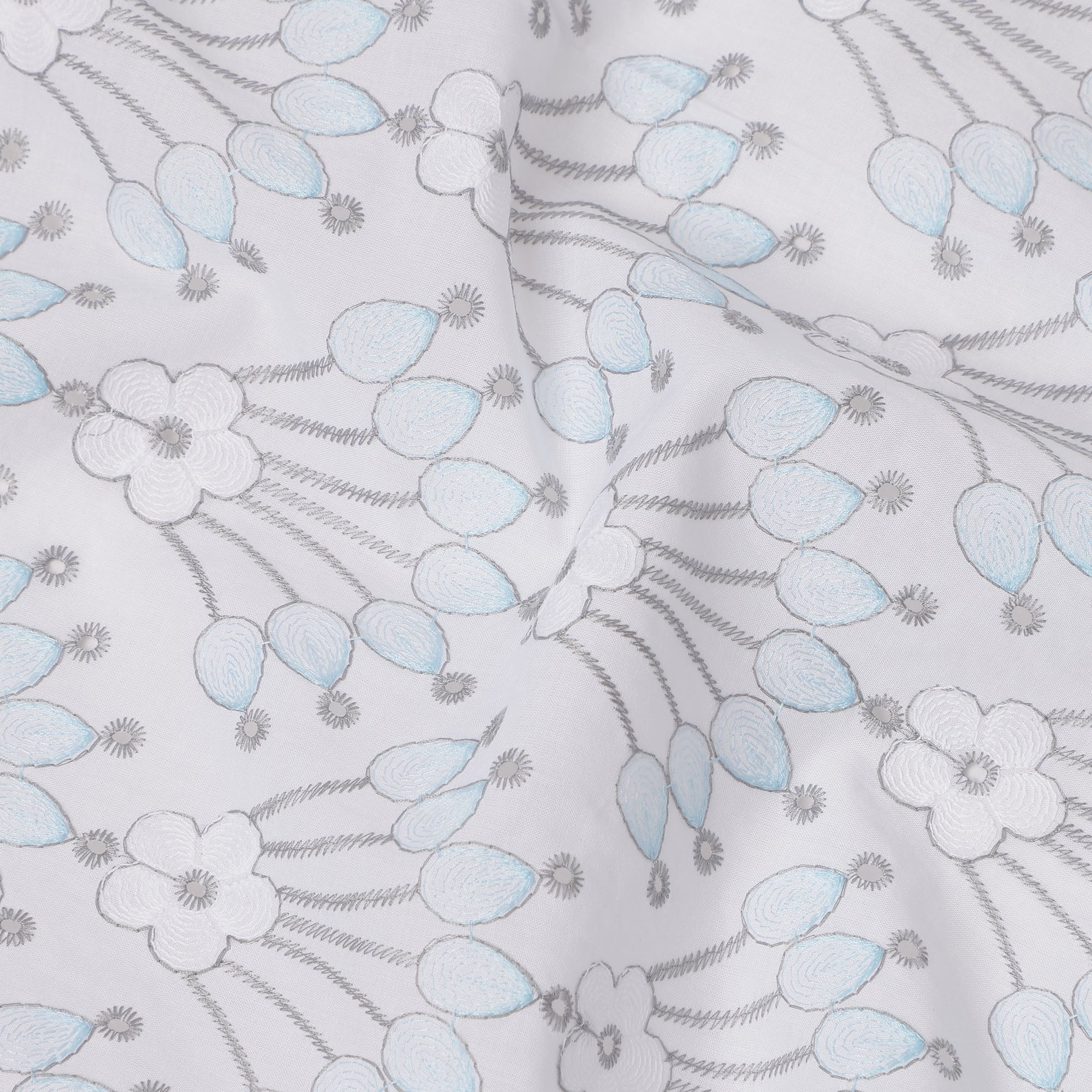 قماش تطريز من القطن الأبيض بتصميم زهور زرقاء ورمادية، عرض 110 سم، الهند - D25301