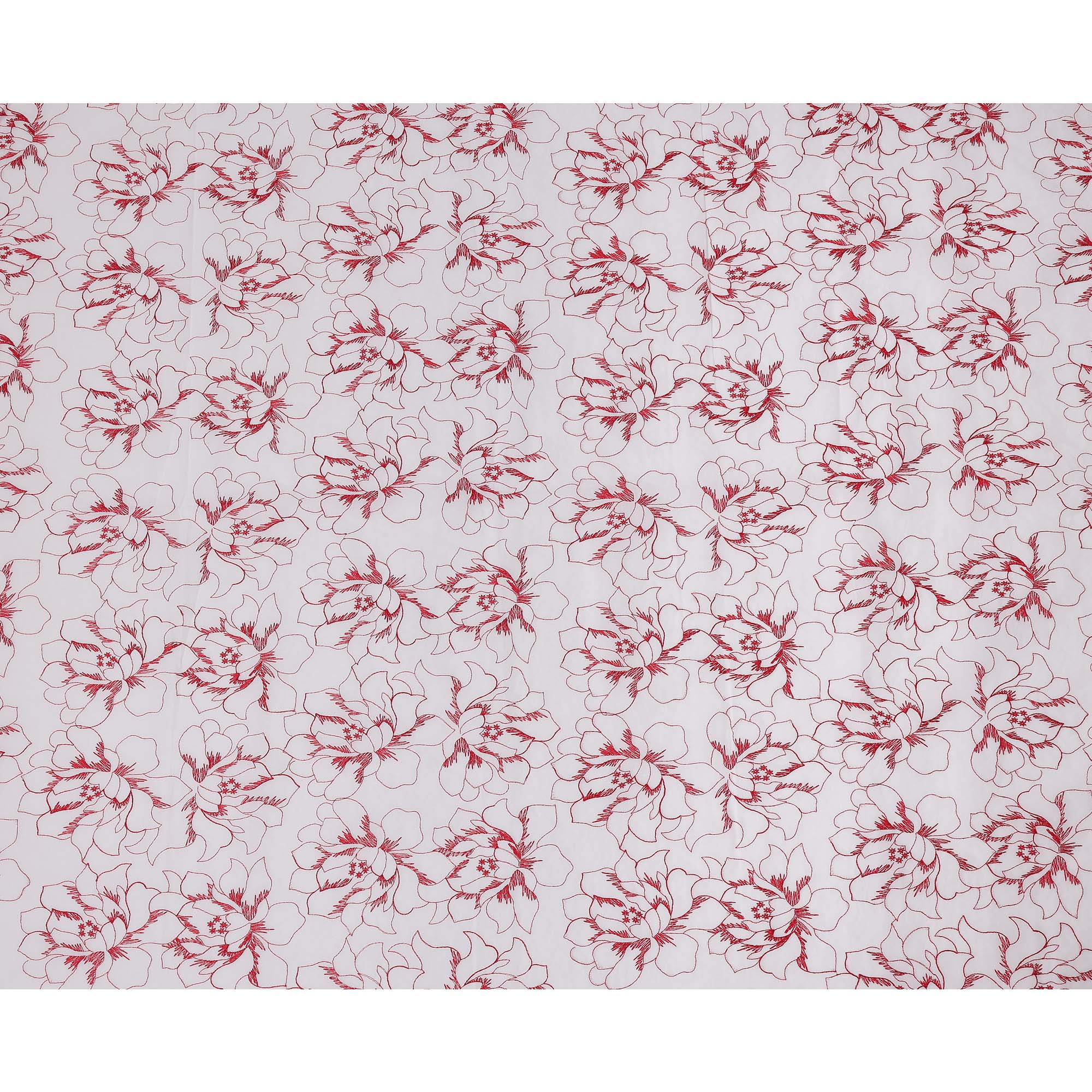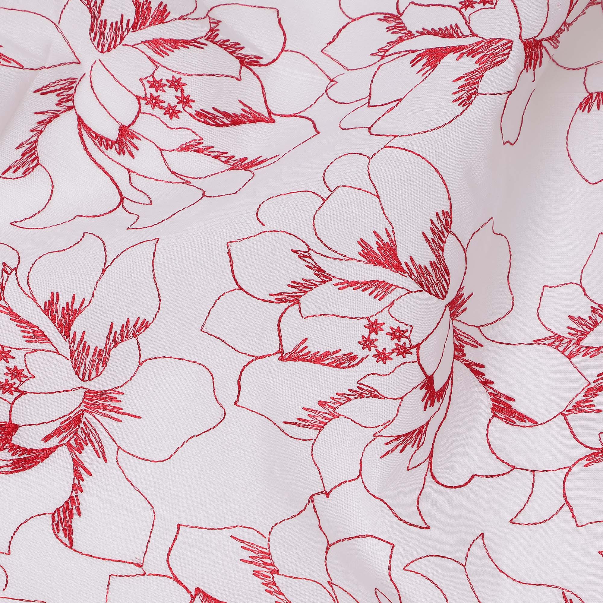 قماش تطريز من القطن الأبيض بتصميم زهور حمراء، عرض 110 سم، الهند - D25304