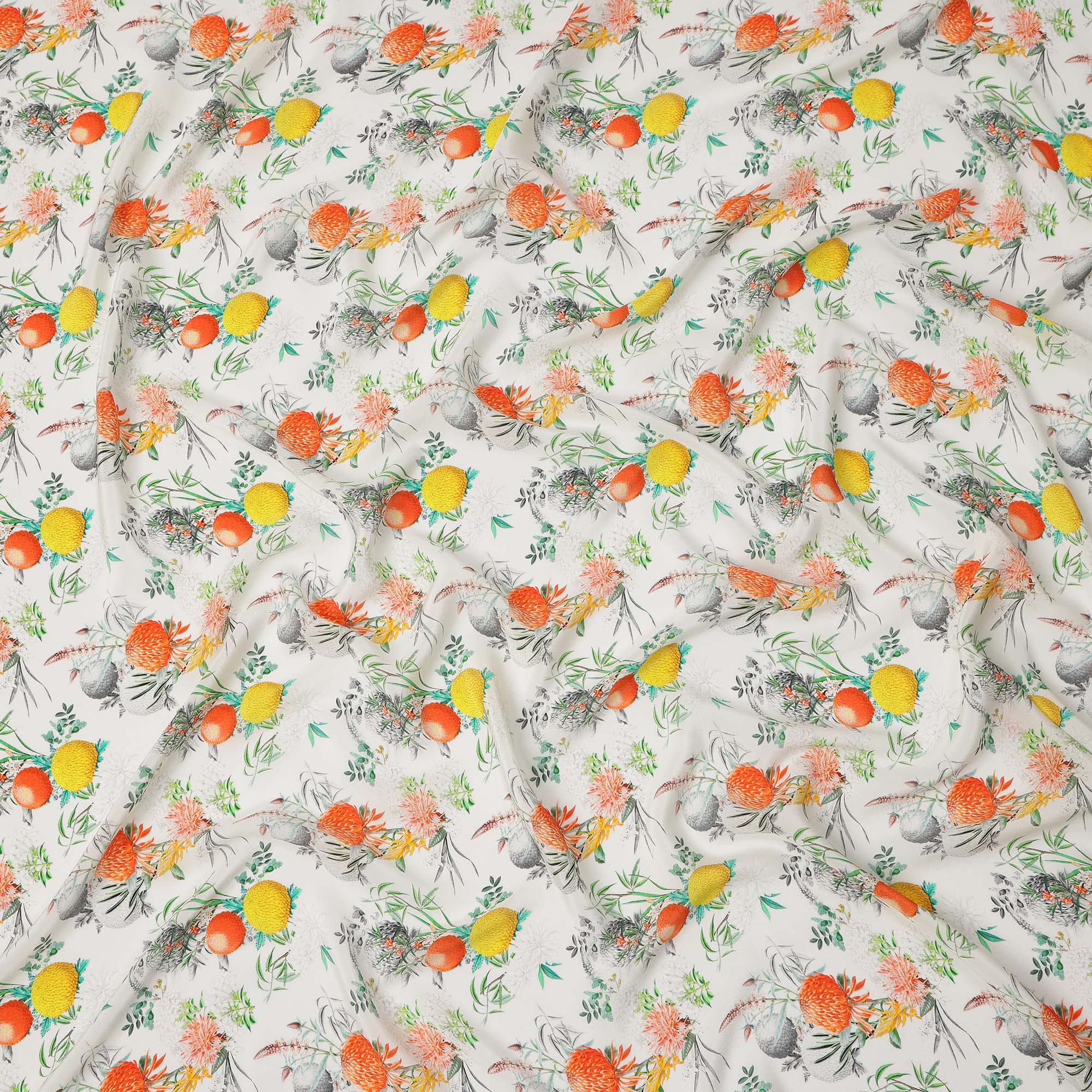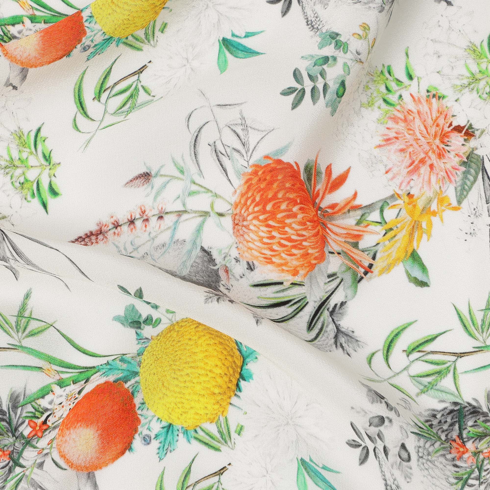 Premium White Multicolor Floral Botanical Print Pure Silk Crepe Fabric made in India